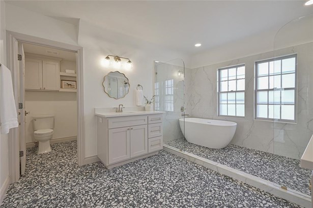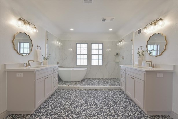 Discover this completely remodeled gem in the heart of the Cleveland Neighborhood in urban OKC This stunning two-story corner lot home exudes Old English Tudor charm with its magnificent stone exterior Step inside to a spacious living room featuring original details like a beautifully restored fireplace intricate wood moldings and refinished hardwood floors enhanced by the addition of an open staircase banister The open-concept layout seamlessly connects the living dining and kitchen areas creating an ideal space for entertaining The dining room shines with a stylish modern chandelier while the kitchen#x2014;a showstopper at the back of the house#x2014;boasts custom cabinetry a center island stainless steel appliances quartz countertops a vent hood designer tile backsplash and cozy bench seating overlooking the backyard The first floor also includes two bedrooms and a fully renovated bathroom Upstairs you#x2019;ll find two expansive primary suites The main suite offers a sitting area multiple closets and a luxurious en suite bathroom with dual vanities a large walk-in shower a modern floating tub and designer tile throughout The second suite retains its original black-and-white bathroom charm and features a spacious bedroom and walk-in closet An additional highlight upstairs is the new laundry room for added convenience The basement adds 309 square feet of finished living space#x2014;perfect for a cozy retreat#x2014;along with 565 square feet of unfinished storage Outside enjoy the newly added covered patio and a firepit area in the backyard perfect for outdoor gatherings The two-car garage is complemented by an oversized carport offering additional covered parking Don#x2019;t miss this incredible opportunity to own a beautifully updated home in the sought-after Cleveland Neighborhood Schedule your showing today