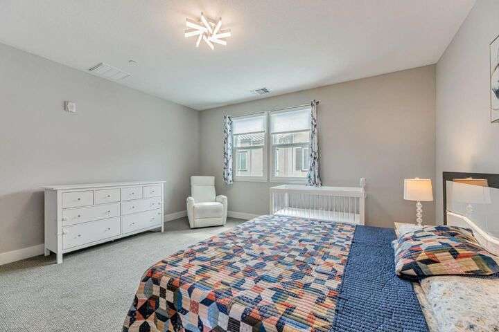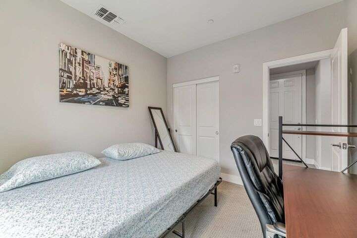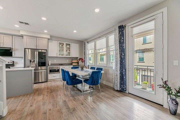 Location! Location! Location! Welcome to this end unit 3 bed, 3.5 bath beauty. Built in 2018. One bedroom and bath downstairs with a backyard patio, two primary bedrooms upstairs each with walk-in closets featuring custom shelves. It also has a separate den/office room accessible by a French door. Excellent condition and move in ready. Kitchen has stainless-steel appliances, Built-in drawer microwave and wine cooler, central island, quartz countertops. Dual-zone central forced-air HVAC (AC). Water softener and water purification system installed in 2019 with 10-year warranty. Hunter Douglas blinds. Finished 2-car garage with a durable poly-coated floor. Energy-efficient amenities include double/triple-pane windows, Energy Star HVAC, thermostat control. HOA is only $285 per month. Its proximity to transit, universities, and major tech employers make it a highly desirable location with strong walkability and transit access.