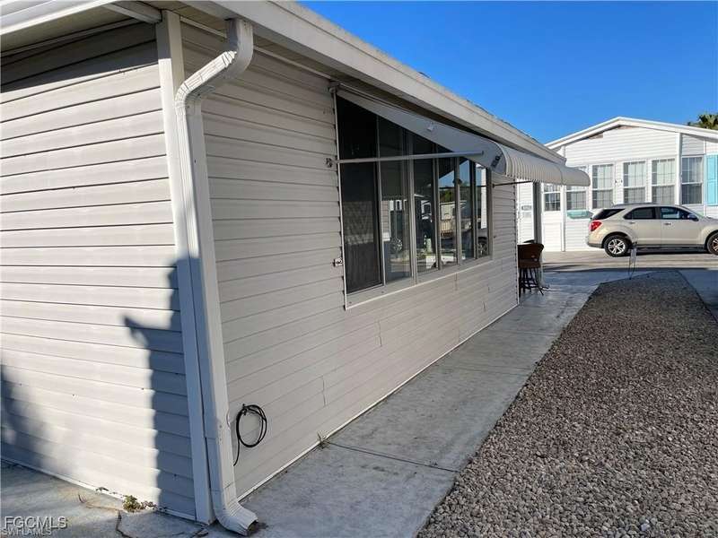 Newly renovated home in a very active 55+ gated community with pool, bocce, and shuffleboard PLUS Gulf access with community boat storage and ramp. Centrally located in South Fort Myers close to shopping, restaurants and bars. Short walk to the grocery store! Best of all enjoy LOW HOA FEES. This home features new white shaker cabinets with soft close, granite counters, all new full size appliances, luxury vinyl plank flooring, tiled entry, family room, and owners bedroom. Cute and cozy spare bedroom. Bathroom features new vanity with quartz counter, tub/shower combo. Storage shed has washer and dryer hook-ups. Best of all, you OWN your land in America Outdoors. Just bring your toothbrush, this home comes furnished. Hurry, this home is priced low for a quick sale ! * Please note, at least one permanent resident must be 55 years or older.