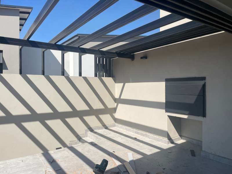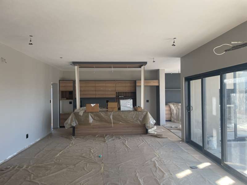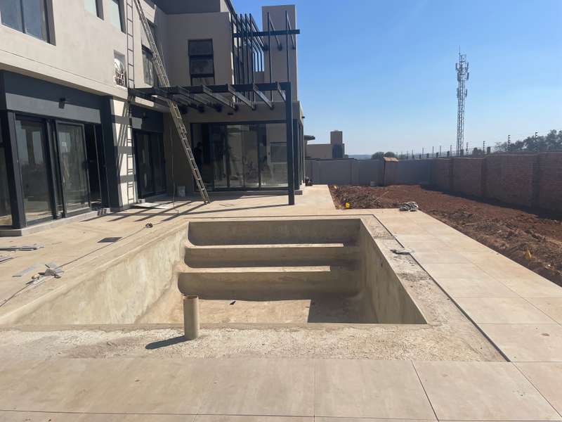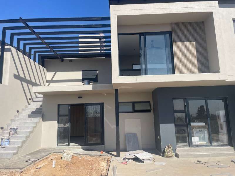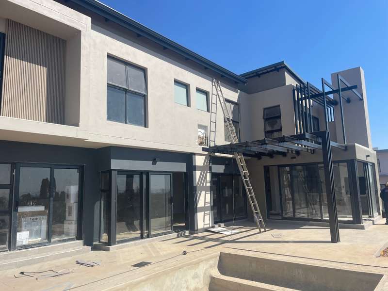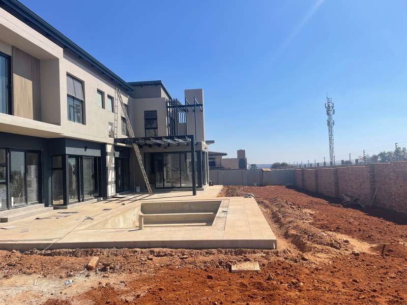 No Transfer Duty for this newly built home soon to be finished now in September Stunning modern 4-bedroom home, perfectly positioned in a quiet cul-de-sac, sleek, contemporary finishes and a seamless open-plan layout, this home offers the ideal blend of comfort, style, and functionality for modern family living. Double volume entrance, open plan living area, dining room and kitchen (with a scullery) flows to the entertainment Patio. The entertainment area and pergola flow to swimming pool There is a helpers/staff bedroom with a separate bathroom, shower, toilet and vanity. A study Guest bedroom with a separate guest bathroom (shower, vanity and toilet) More Features: Triple garage Intercom system with power point The 2 bedrooms in the first floor have en-suites The Main bedroom is spacious and has its walk in closet, en-suite bathroom, double vanity and a balcony The upstairs pajama lounge opens to the covered entertainment area with enclosed patio and an entrance from the outside. Buy directly from the Developer and avoid Transfer Costs.