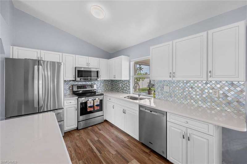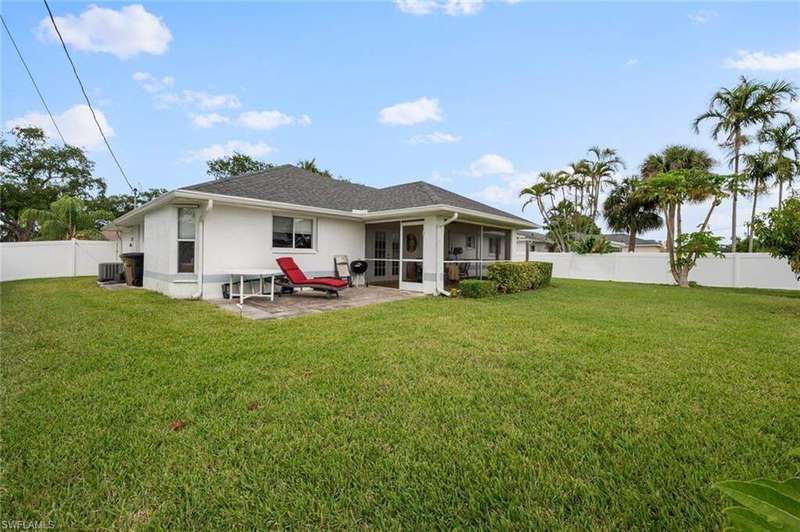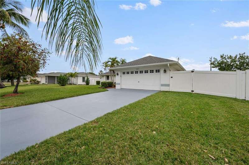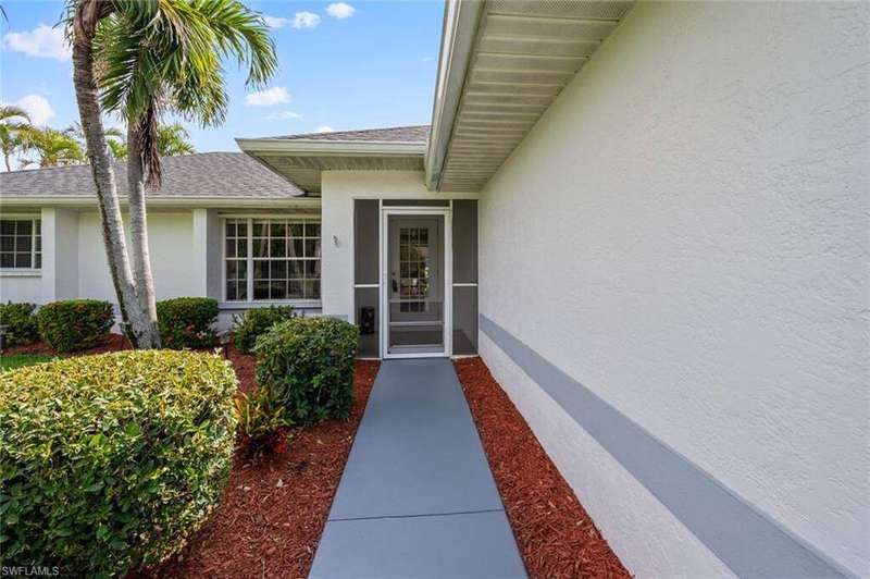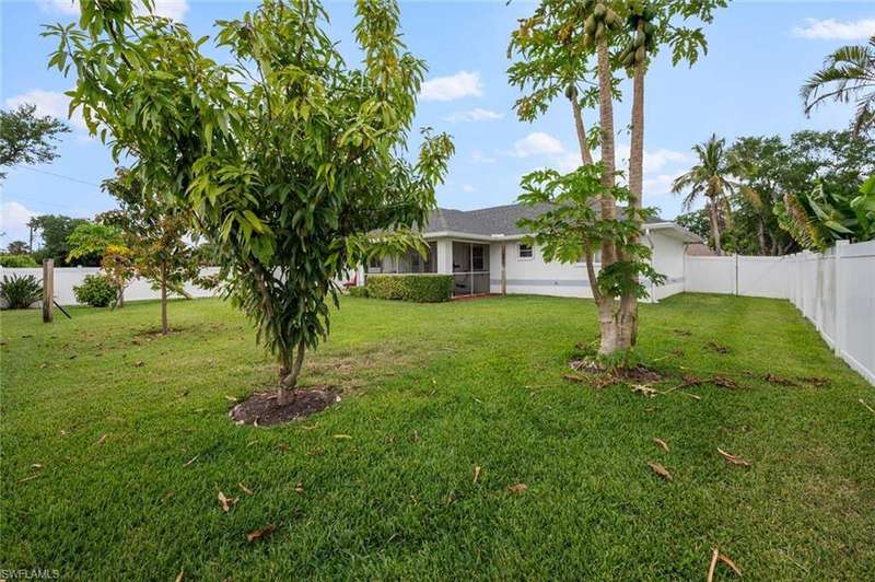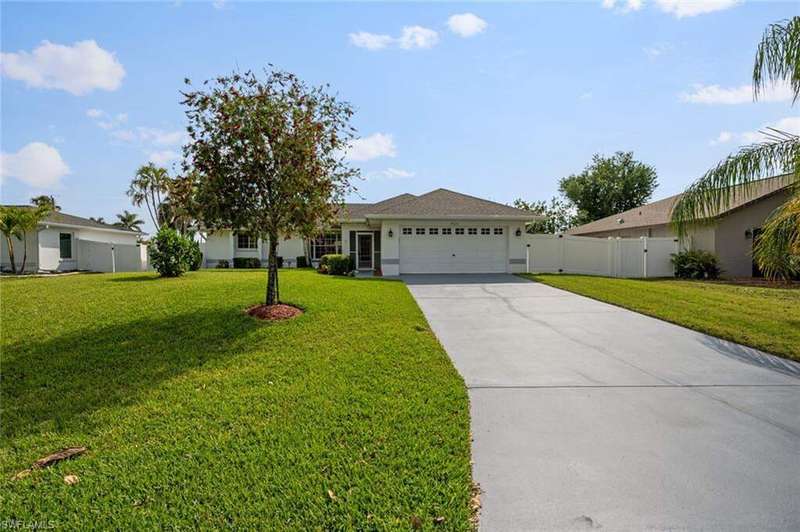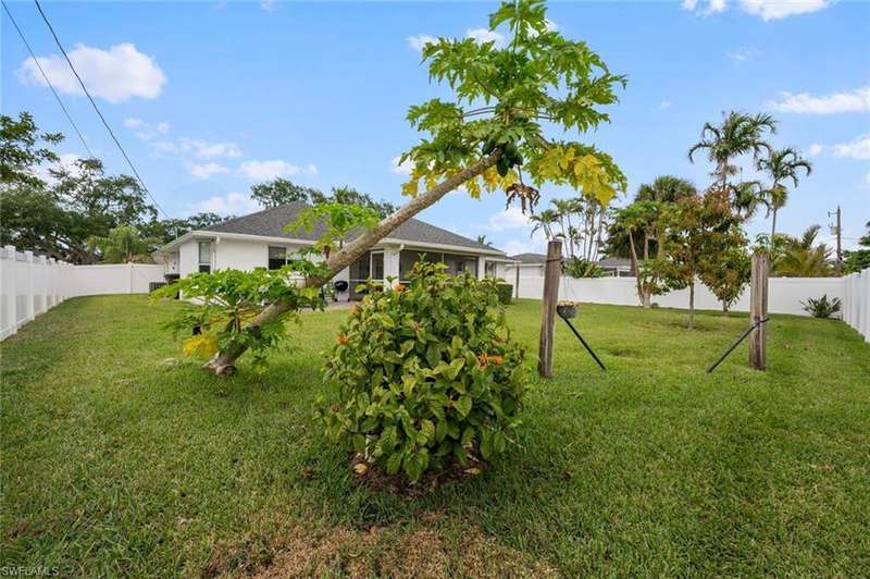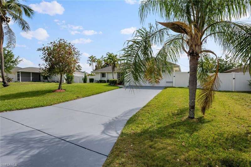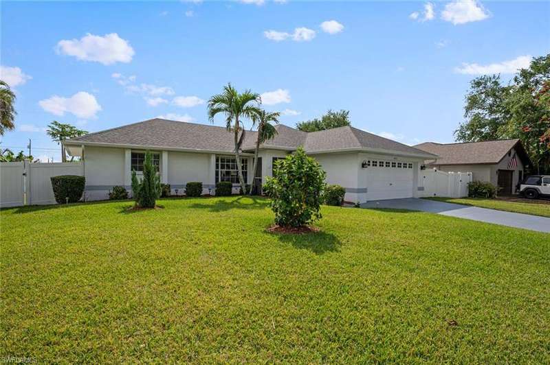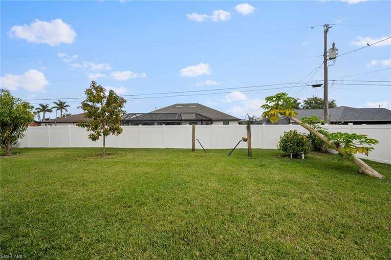 This beautiful 3-bedroom, 2-bathroom home is located in the desirable SW Cape Coral area. Step inside to find tile throughout, complementing the updated kitchen with brand-new stainless steel appliances. The spacious master bedroom features an ensuite with a walk-in shower and a large walk-in closet. The guest rooms are separate from the master suite offering privacy for all. Enjoy Florida's year-round weather from the screened lanai, overlooking a private fenced backyard with mature papaya and mango trees and ample space for a pool. Recent upgrades include roof replacement in 2020 and air conditioner replaced in 2023. All plumbing has been replaced and the home is newly painted. A new electrical box, surge protector, and a brand-new garage door round out the amazing repairs not this beautiful home. Best of all, the City of Cape Coral assessments have been paid in full, making this home move-in ready!