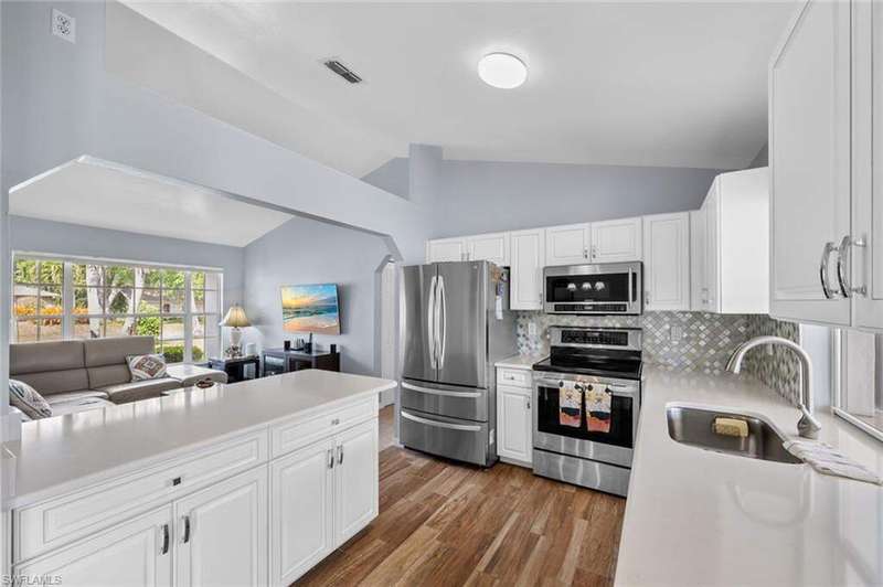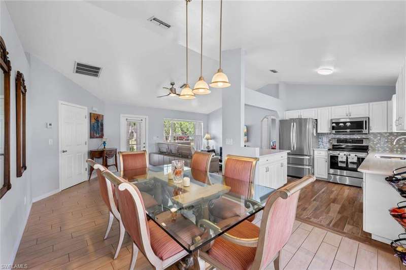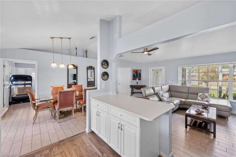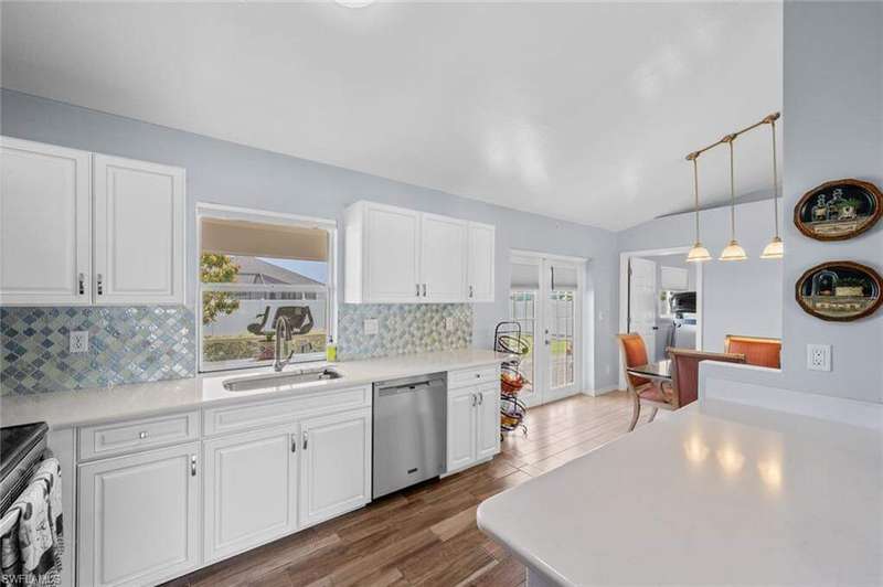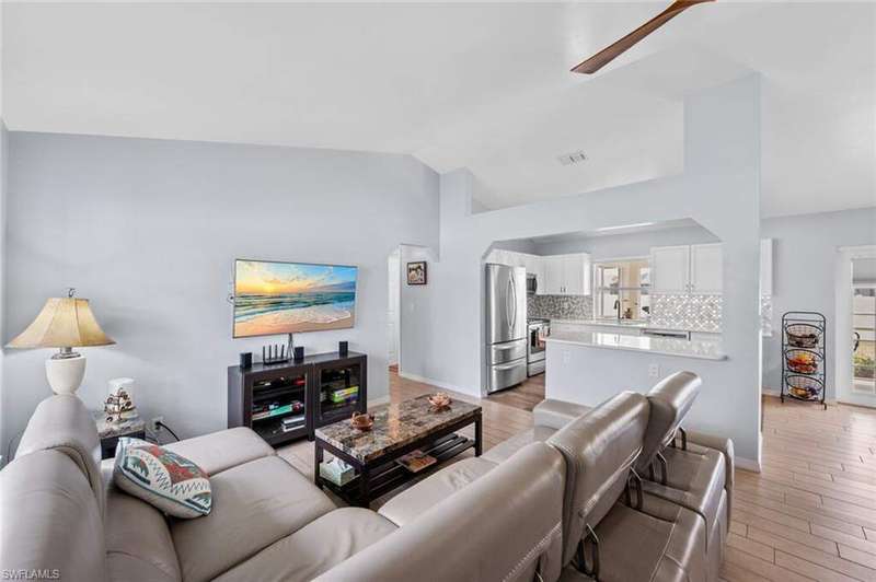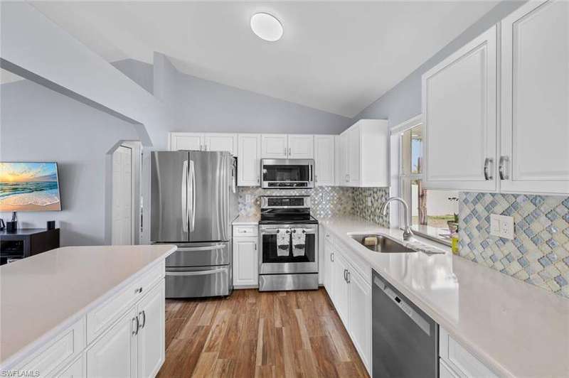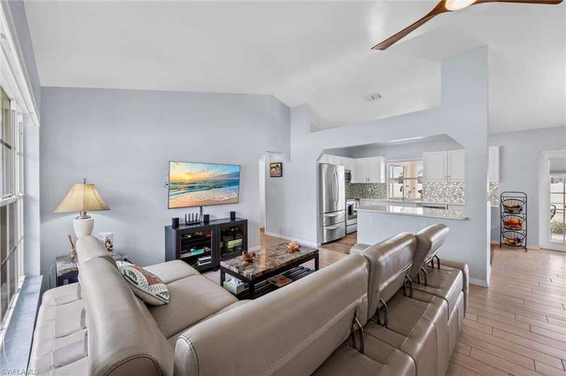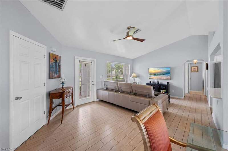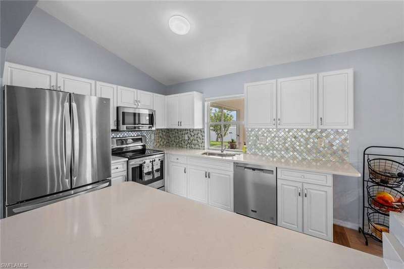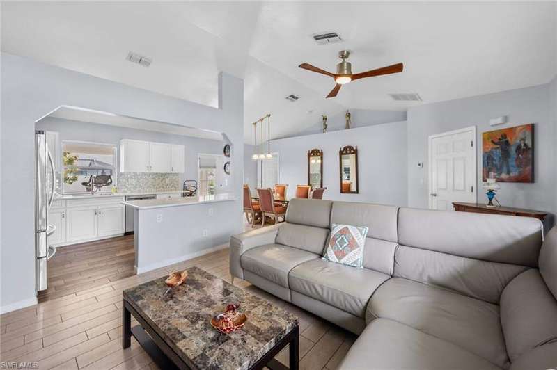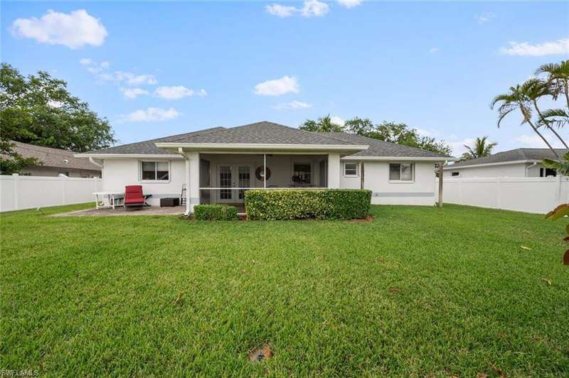 This beautiful 3-bedroom, 2-bathroom home is located in the desirable SW Cape Coral area. Step inside to find tile throughout, complementing the updated kitchen with brand-new stainless steel appliances. The spacious master bedroom features an ensuite with a walk-in shower and a large walk-in closet. The guest rooms are separate from the master suite offering privacy for all. Enjoy Florida's year-round weather from the screened lanai, overlooking a private fenced backyard with mature papaya and mango trees and ample space for a pool. Recent upgrades include roof replacement in 2020 and air conditioner replaced in 2023. All plumbing has been replaced and the home is newly painted. A new electrical box, surge protector, and a brand-new garage door round out the amazing repairs not this beautiful home. Best of all, the City of Cape Coral assessments have been paid in full, making this home move-in ready!