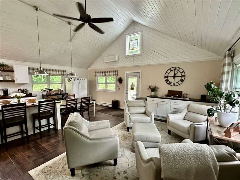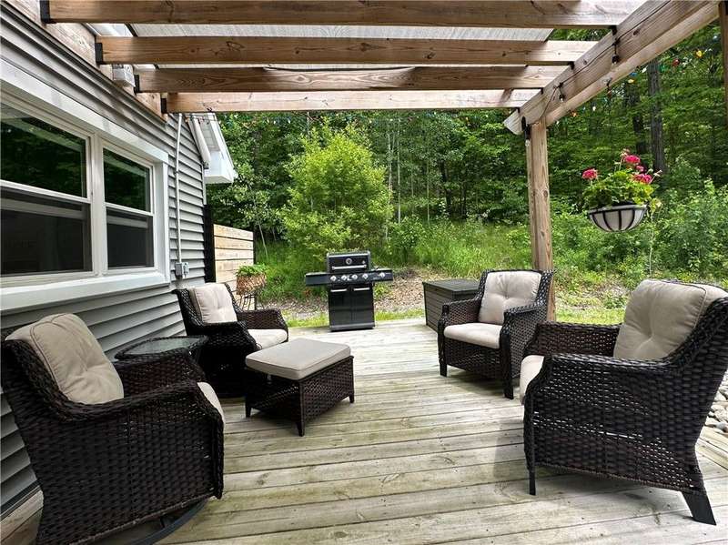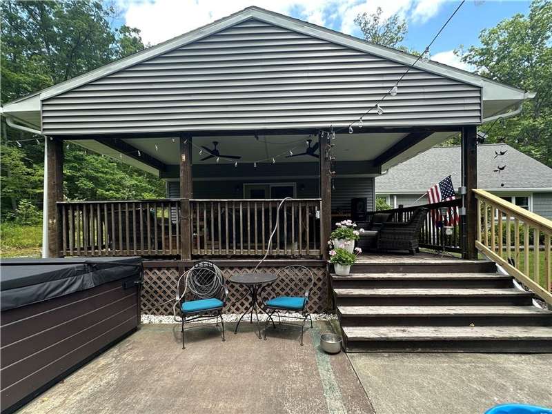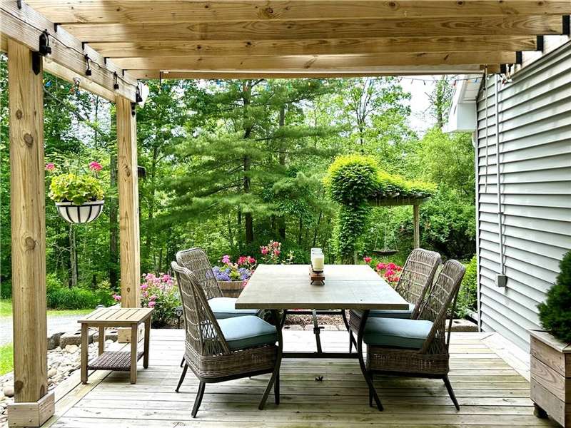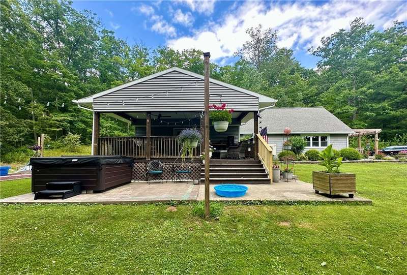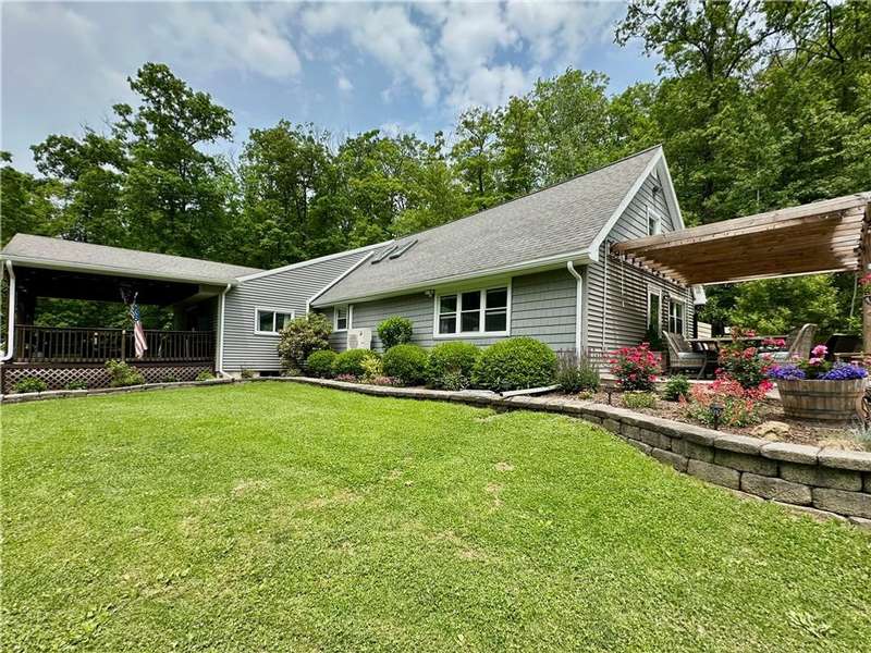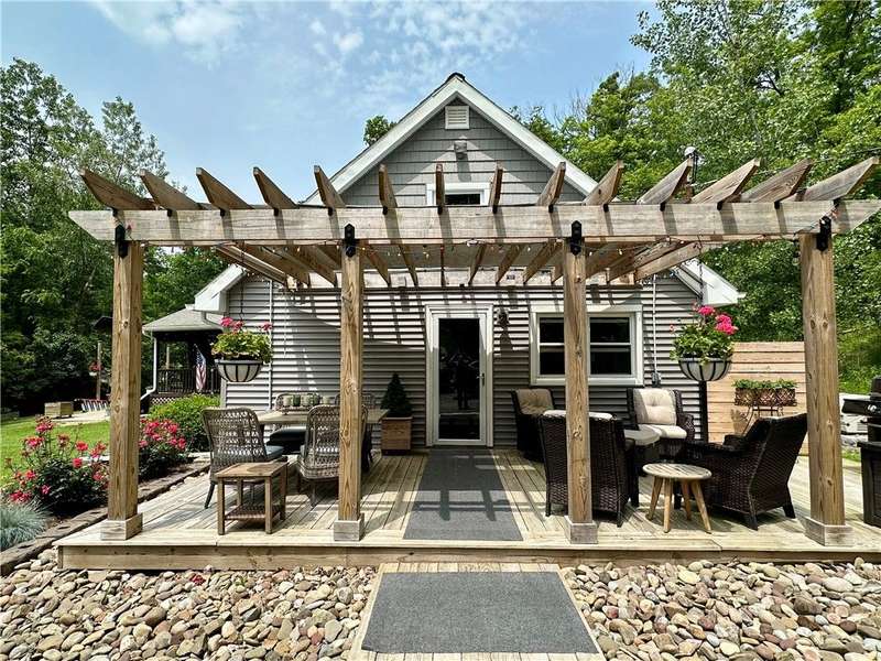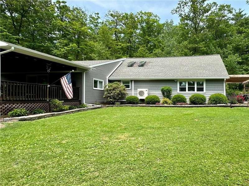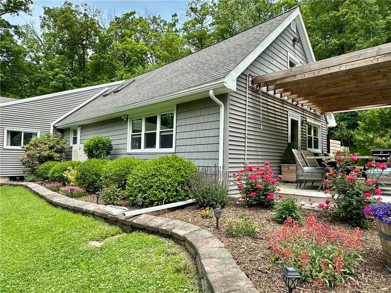 Welcome to your own private oasis nestled on 5.6 acres! Located in the southern end of the fabulous Finger Lakes Region, this 3 bedroom 1 1/2 bath home has been beautifully updated, tastefully decorated, meticulously landscaped and lovingly maintained by the same owner for many years. From the time you enter the private drive up the hill to the front door, you'll fall in love. You'll feel like you're on vacation at a retreat. The open porch with custom pergola welcomes you with plenty of room for dining and relaxing. Step inside into the gorgeous open kitchen with island, dining and living room. The first floor offers 2 bedrooms with updated full bath and laundry. The newly added great room/family room which opens out to the new expansive covered deck offers a great space for entertaining or just relaxing. The upper level offers the newly updated 3rd bedroom with sky lights and 1/2 bath. The lower level has plenty of space with workshop area and storage. Newer roof and siding, 200 amp electric, zoned heating and air conditioning with whole house generator. New spa hot tub off the deck and patio with small pool. Whether you're inside or outside, you'll enjoy the peaceful tranquil setting. This home is perfect for year round living or as a vacation get away retreat!
