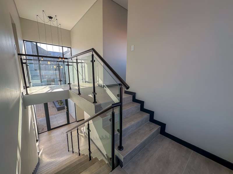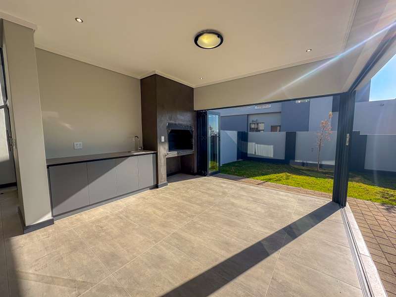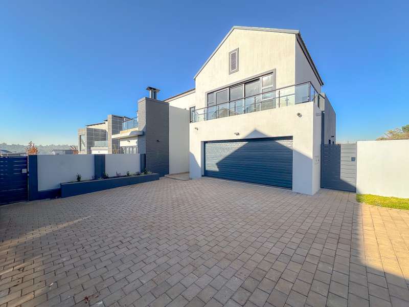 ON SHOW: Viewings by appointment Step into a lifestyle of modern elegance and exceptional value in the sought-after Fountain Brook Estate. This newly built home is part of a premium development sold directly from the developer, offering significant savings on transfer duties. From its thoughtful layout to its contemporary finishes, this home has been designed to deliver both style and comfort for the discerning buyer. Ground Floor Features: - Welcoming foyer entrance - Spacious driveway with ample parking for residents and guests - Double automated garage - Open-plan dining area with built-in braai and stacking doors opening to the landscaped garden - Designer kitchen with central island, ideal for entertaining - Separate scullery for added convenience - Comfortable lounge flowing seamlessly to the outdoor garden through stacking doors - Guest toilet - Private staff accommodation with en-suite bathroom First Floor Features: - Two generously sized family bedrooms - Full family bathroom - Luxurious main bedroom with en-suite bathroom - Two private balconies, perfect for morning coffee or sunset views Nestled within beautifully landscaped surroundings, Fountain Brook Estate offers peace, privacy, and modern convenience. With its prime location and elegant design, this home is the perfect blend of suburban tranquility and urban sophistication. Don’t miss out on this exclusive opportunity to own a brand-new home in one of the area's most exciting developments. Pet-friendly: Up to two pets allowed dogs or cats (dogs must be no bigger than 30cm in height at maturity).