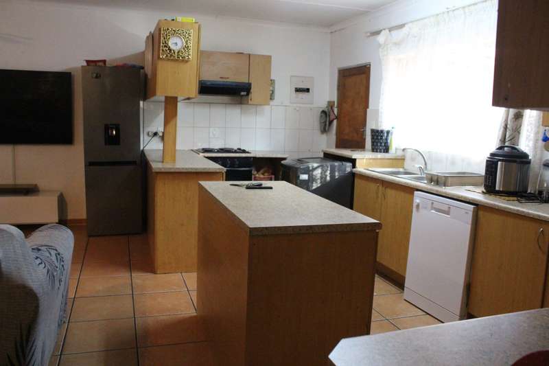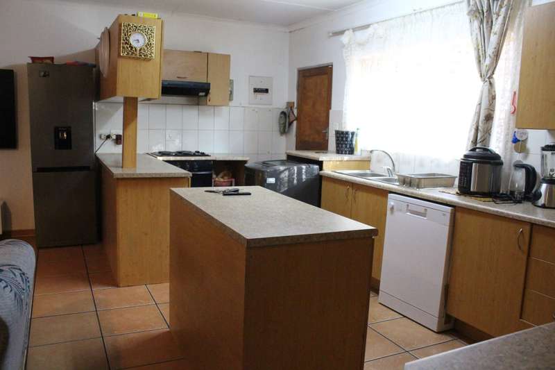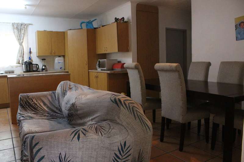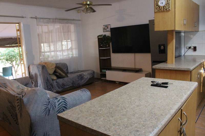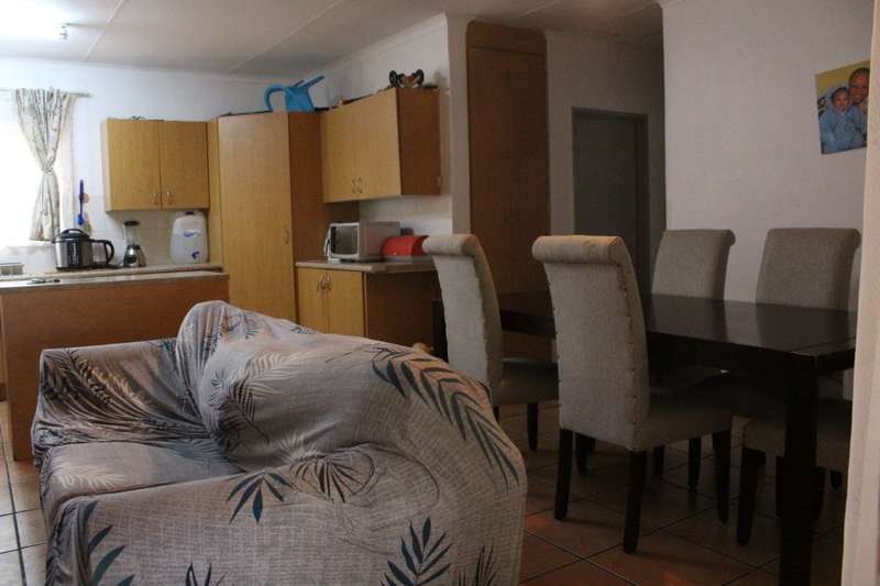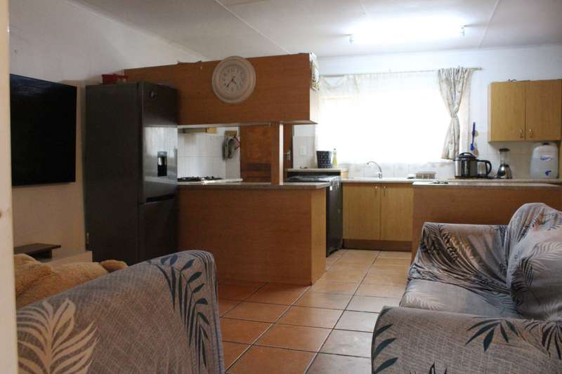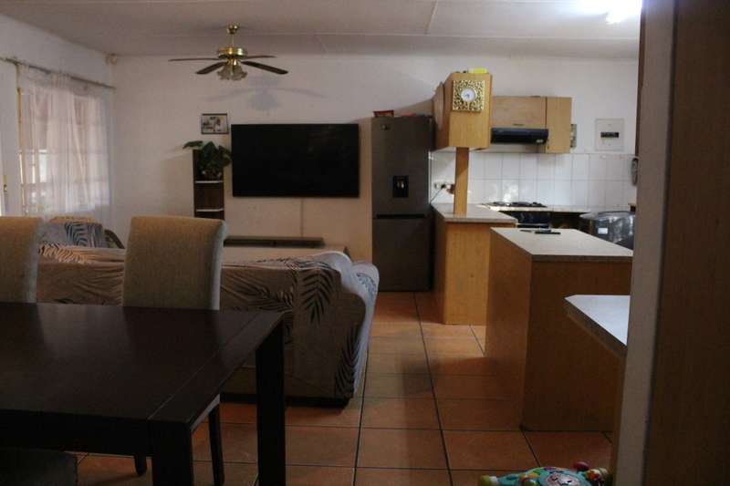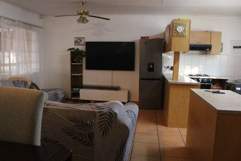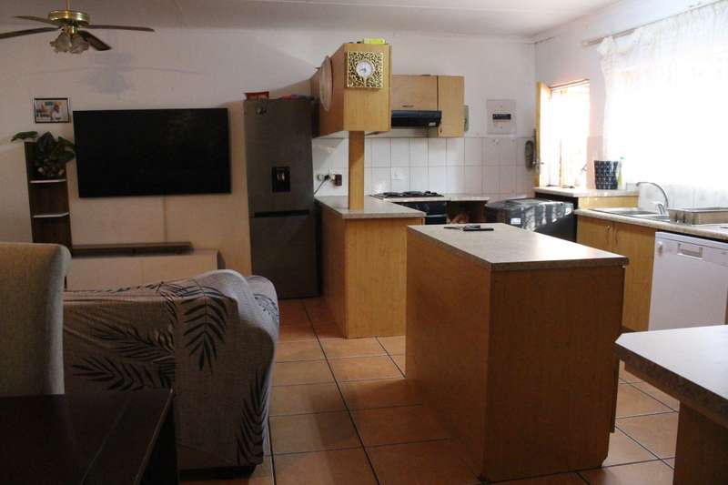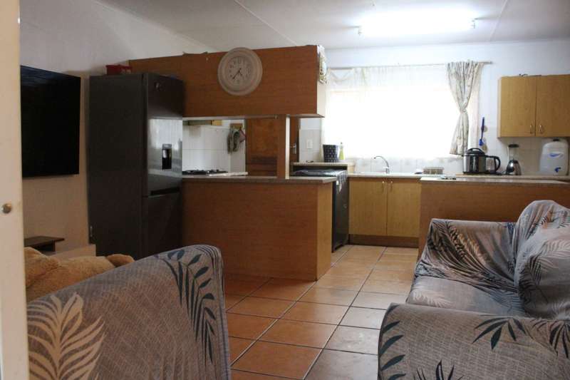 This 2-bedroom, 2-bathroom house features a master bedroom with an ensuite bathroom. The open kitchen includes an island and flows into the lounge. Step outside from the lounge to find a patio with a braai area, perfect for entertaining, along with a spacious yard. The property also includes a garage and is situated in a well-secured complex.