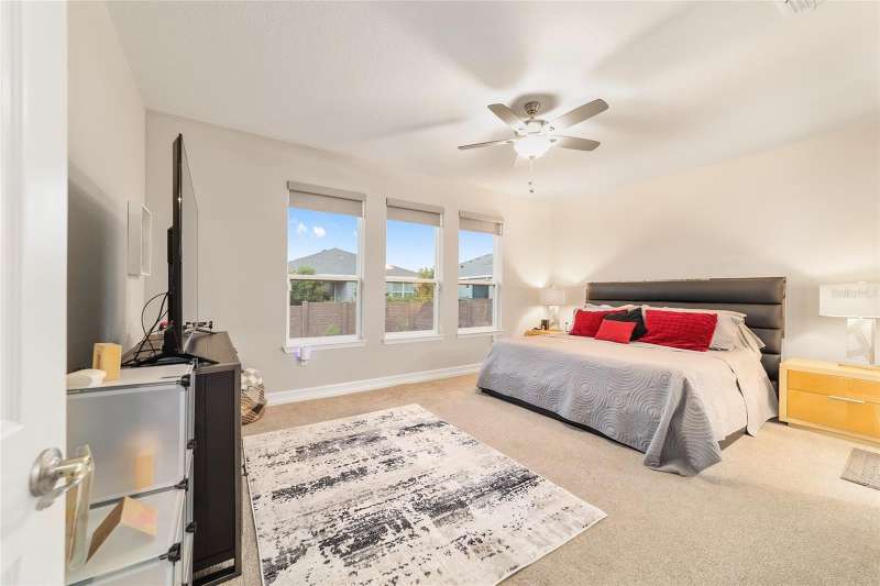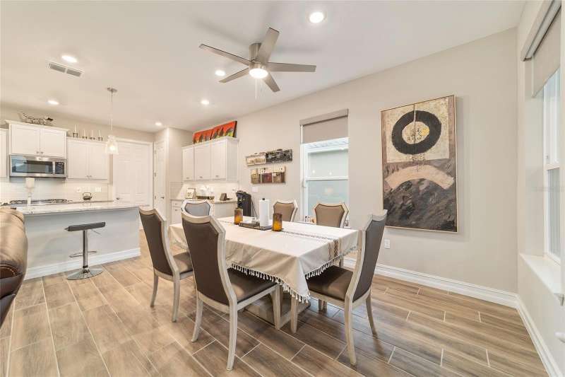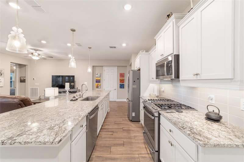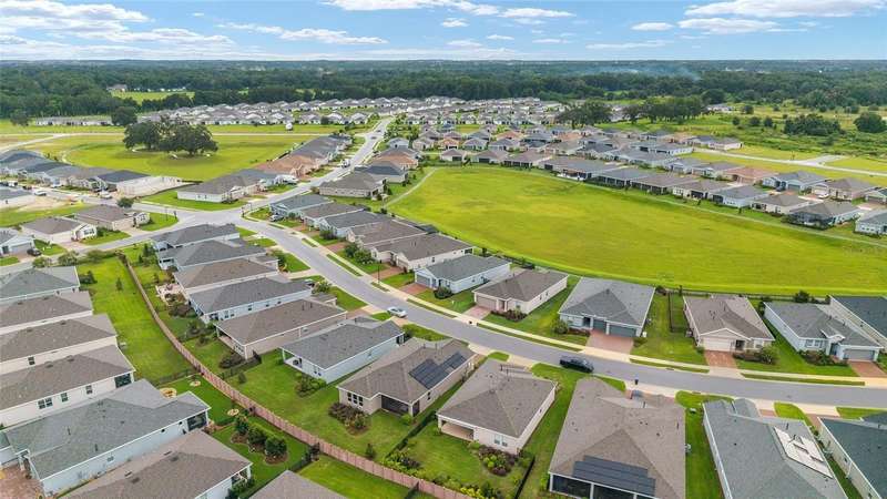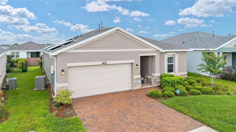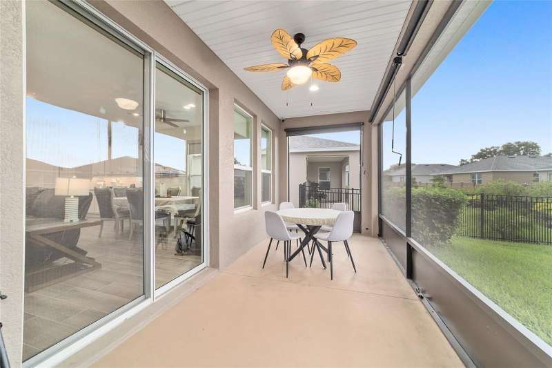 Experience resort-style living at its finest! This pristine 2023 Expanded Connect home is nestled on an active block, with planned activities. Ocala Preserve is known as a golfing community. Besides having golf included, enjoy an unparalleled lifestyle with plentiful and exceptional amenities designed for comfort, connection and an active lifestyle. As a former model home, this home boasts modern selections and beautiful upgrades to an already well-appointed home. Luxury living is the best way to describe this 3-bedroom, 2.5-bathroom, plus den home. The open floor plan creates an inviting living space for both entertainment and everyday relaxation. The gourmet kitchen anchors the home with a show stopping stone island, designer subway-tile backsplash, modern cabinetry, under-cabinet lighting, stainless-steel appliances, along with gas stovetop. The primary suite features an en suite equipped with a walk-in shower, a gorgeous dual-sink, extra-long vanity, and a spacious walk-in closet (unable to show in pictures). This floor plan offers a private, versatile flex room, den or office which is currently used as a hobby space. The split floorplan positions the 2 guest rooms, full bathroom and an additional half bathroom in the front of the home, providing privacy for overnight guests. Enter the home, from the speckled epoxy floored 2-car garage, into an oversized laundry room and drop zone, equipped with a utility sink. The sliding glass doors lead to the screened lanai, perfect for relaxing and enjoying the outdoors. For added privacy and shade, the lanai has roll down shades and the backyard has a privacy/buffer wall. The backyard could be fully fenced quite simply. Note, the lawn maintenance is included in the HOA fees, along with the internet and curbside trash removal. To further add to the warmth and sophistication of this designer home, the following are present: abundance of recessed lighting, elegant, cordless blinds on all windows, sliding door remote controlled shade, wood inspired grey tile floors, gutters and solar panels to keep your energy bills low. Close to shops, restaurants and medical facilities. Minutes to the World Equestrian Center (WEC), the interstate and lively Downtown Ocala. Take a moment to preview the pictures, then call to schedule your in-person showing. Obtain the finest Florida Lifestyle in this stylish Sanctuary!