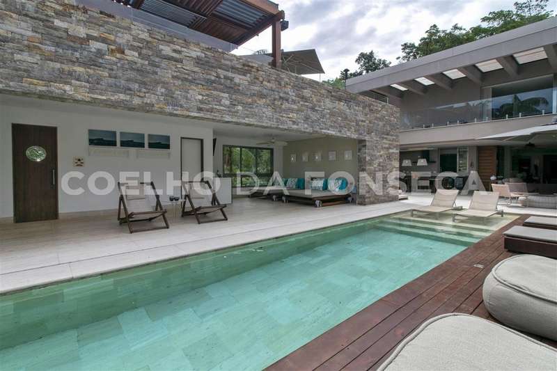 Casa em Condomínio no bairro Praia de Pernambuco com 1569m² área construída, 6 dormitório(s), 6 suíte(s), 8 vaga(s), 8 banheiro(s), piscina, gerador, escritório, sauna, ar condicionado, dep. de empregados, varanda, pé direito duplo.