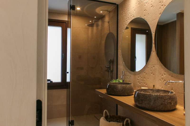 Designed on a single level, the villas feature three spacious bedrooms, each with built-in wardrobes, while the master suite includes a walk-in closet and en-suite bathroom. The bathrooms are fully equipped with modern fixtures, including a vanity unit, mirror, shower screens, and underfloor heating. The open-plan kitchen with a breakfast bar seamlessly integrates with the bright and airy living area, designed for both functionality and style. Also, a separate laundry area adds to the convenience.