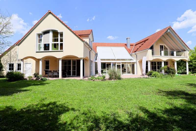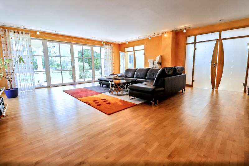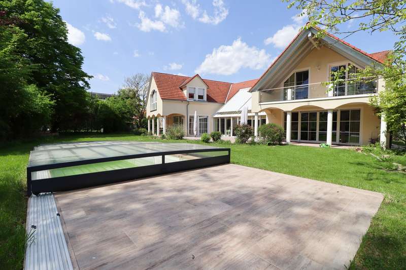 This exclusive villa, built in 1999, combines stylish spaciousness with high-quality furnishings and offers an outstanding living ambience for people with high standards. On an impressive living space of approx. 450 m², embedded in a well-kept plot of approx. 1,350 m², a living space opens up that offers versatile design options for families as well as couples or discerning owner-occupiers. The light-flooded floor plan impresses with spacious living areas that convey a feeling of width and elegance thanks to their openness and clarity. The well thought-out room layout creates places of retreat as well as communicative living spaces - ideal for stylish, relaxed living. The conservatory extends the living space in a harmonious way and creates a bright, weather-independent connection to nature - a special place of peace and relaxation. The lovingly landscaped dream garden is a real highlight of the property. It delights with a well-tended lawn, selected decorative elements and a spacious terrace with direct access to the house. The permanently installed swimming pool, supplied by its own technical center, offers maximum bathing fun in a private atmosphere. The paved driveway leads to a spacious garage, including a practical tool room, which can be accessed both via the garage and via a separate outside entrance - ideal for garden tools or bicycles. Inside, the villa impresses with high-quality details such as double-glazed windows, which ensure efficient thermal insulation and pleasant soundproofing. The sanitary facilities are modern and naturally include a separate guest WC. Particularly attractive is the fact that there is currently no heating system installed - this gives buyers the opportunity to integrate an individually tailored, future-oriented heating system according to their own ideas. The area with a full basement not only offers plenty of storage space, but can also be used as a gym, hobby room or personal wellness oasis. The spatial conditions create the perfect basis for an exclusive sauna, a relaxation area or even a home gym. The quiet yet centrally located residential area rounds off this exceptional offer. Embedded in a mature, well-kept residential environment with excellent infrastructure, you benefit from the immediate proximity to a modern shopping center and excellent transport links. Here, living close to nature is combined with urban comfort - ideal for anyone who appreciates life in the countryside without wanting to do without urban amenities. This villa is more than just a home - it is a place to live, to feel good and to arrive. Anyone who wants to combine spacious living with high-quality furnishings, flexible usage options and a quiet but central location will find the perfect domicile here. A personal impression on site will impressively confirm the special charisma and potential of this property.
