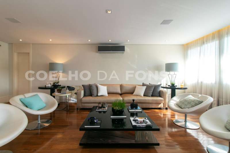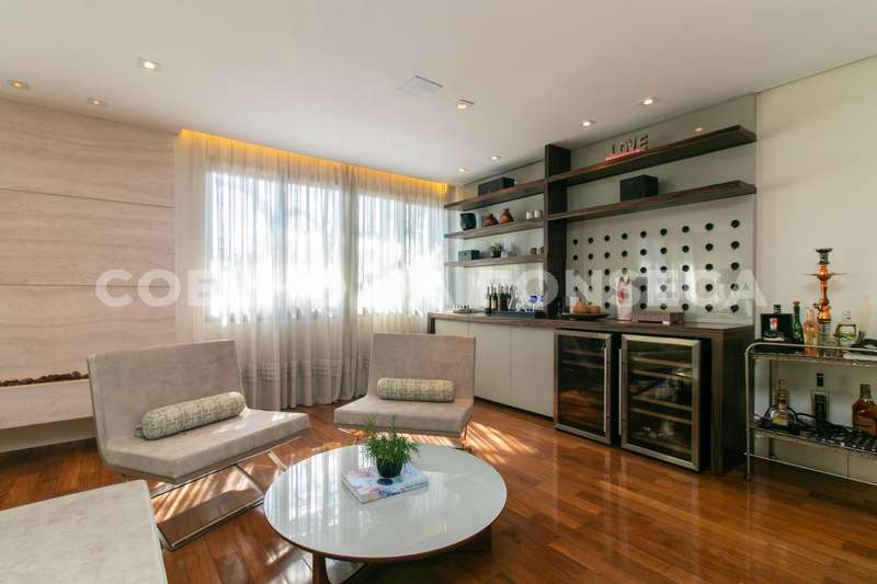 Ar-condicionado em todos os ambientes, móveis planejados de primeira, lareira à gás, adega e energia solar.
