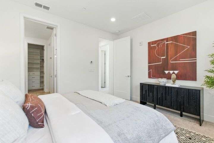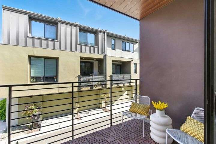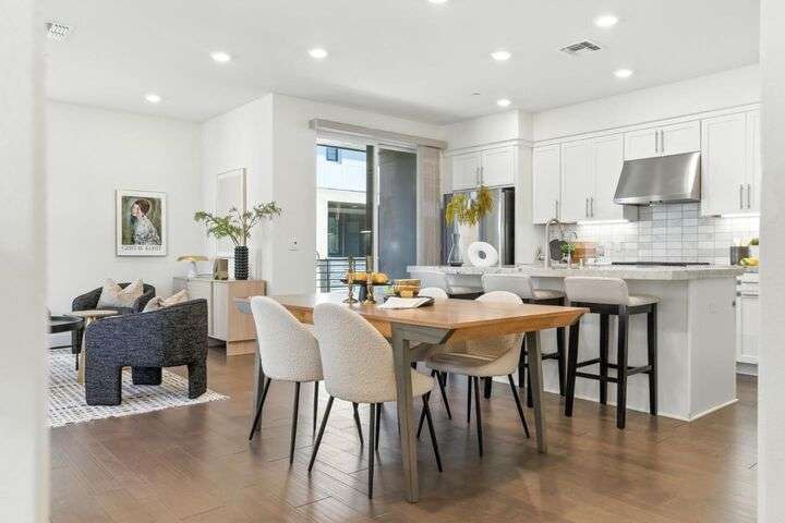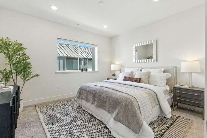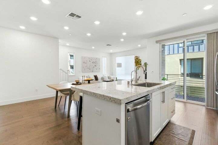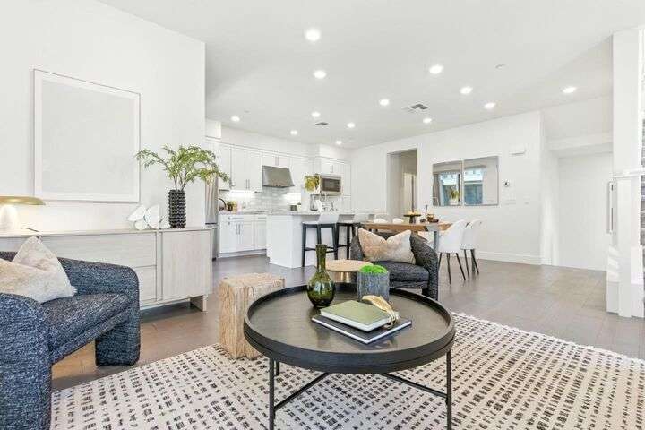 Stunning end-unit townhome in Fremonts sought-after Innovation community! This 2-bed, 2.5-bath home offers a bright open floor plan with high ceilings, recessed lighting, and abundant natural light. Modern kitchen features stone counters, tile backsplash, gas stove, stainless steel appliances, and an oversized island with bar seating. The spacious primary suite includes a walk-in closet and luxurious bathroom. Enjoy central A/C, multi-zone cooling, dual-pane windows with high-end Hunter Douglas window coverings, smart home features, Ring doorbell, in-unit laundry with storage, water softening and reverse osmosis systems, attached 2-car garage with bonus space. Community amenities include pool, gym, BBQ area, clubhouse, and community solar. Prime location - walking distance to Warm Springs BART, Bringhurst Elementary, and easy access to 680/880.