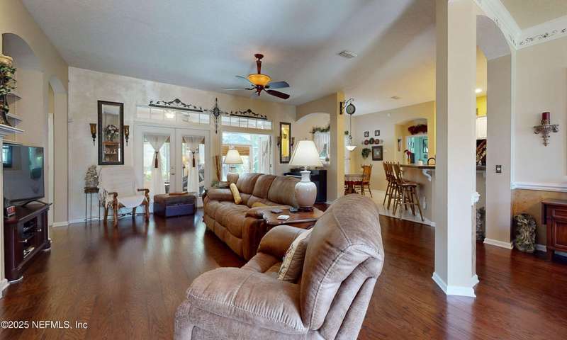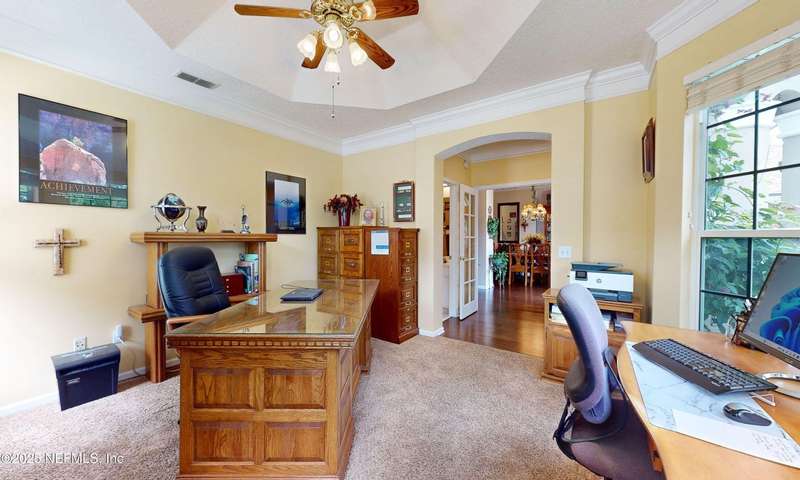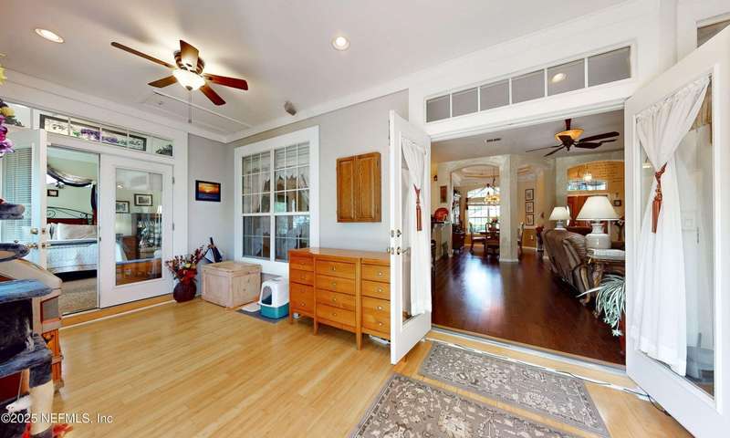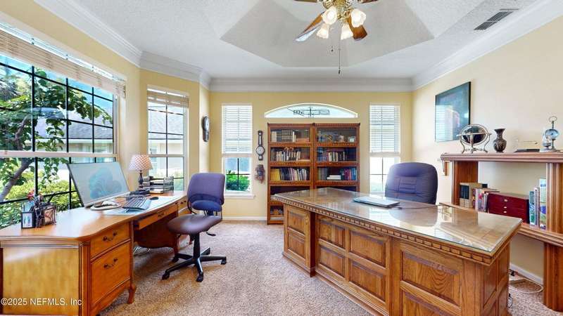 Welcome to This Absolutely Stunning 5-Bedroom, 4-Bathroom Home! Step into a perfect blend of elegance, comfort, and flexibility in this beautifully designed home. With 4 bedrooms on the main floor and a spacious upstairs bonus suite-featuring its own full bath, walk-in closet, and additional attic storage-there's room for everyone and everything. As you approach the front entrance along a charming garden path, you'll feel as if you're wandering through an English garden oasis. Inside, you're welcomed by a flexible office space with French doors and a nearby full bath-ideal for use as a home office, guest room, den, or playroom. To your right, a formal dining room flows seamlessly into the expansive family room, creating a warm and inviting space for hosting gatherings. The open-concept kitchen connects beautifully with the family room and breakfast nook, making it the heart of daily living. Off the family room, you'll find a converted screened porch that's now bonus space- On one side of the home, you'll find two secondary bedrooms sharing a full bath. Upstairs, discover a huge bonus room or fifth bedroom with a private full bath and closet perfect for guests, teens, or a home theater.The owner's suite is privately tucked away and includes a luxurious bathroom with a garden tub, separate shower, and generous closet space.Additional features include:Side-entry garage with extended driveway parkingEnclosed garage workshop with A/C and water heaterAll garage storage cabinets conveyHome backs up to a beautiful man-made lakeThis home offers a unique blend of comfort, space, and flexibility perfect for modern family living or multi-generational needs. Don't miss your chance to own this serene lakeside retreat!