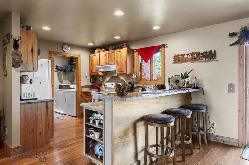 Welcome to this well-built and beautifully maintained 2-bedroom, 2-bathroom home on 1.07+/- acres in the desirable Troutdale subdivision just minutes north of Ennis. Offering 1,232 sq ft of comfortable living space, this property is designed with both practicality and Montana charm in mind. Inside, you'll find a spacious master suite with a large ensuite bathroom, a bright kitchen featuring custom hickory cabinets and pantry, and a convenient laundry/mudroom off the attached 1-car garage. The home is warmed with efficient all-electric heat. Step outside to enjoy mountain views from the covered front porch or tend to your garden beside the 10x12 shed. Additional features include an RV hook-up with water, sewer dump, and power, plus underground sprinklers and established trees for easy outdoor living. Located just minutes from the lively town of Ennis, you'll enjoy world-class fishing on the Madison River, nearby hiking and hunting in the surrounding public lands, and skiing at Big Sky or cross-country trails in the winter. Bozeman is about an hour's drive for shopping, dining, and air travel, while Yellowstone National Park is just 70 miles to the south. This property offers the perfect balance of small-town living and access to endless Montana recreation.