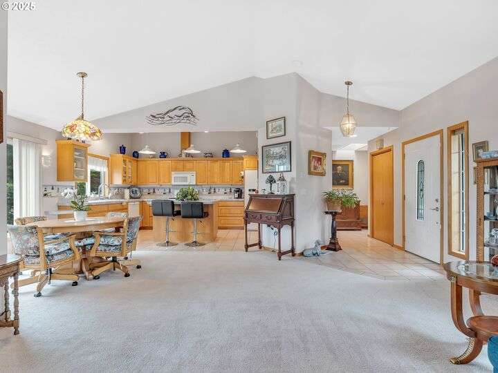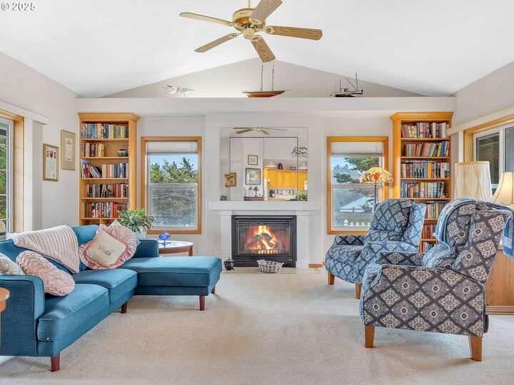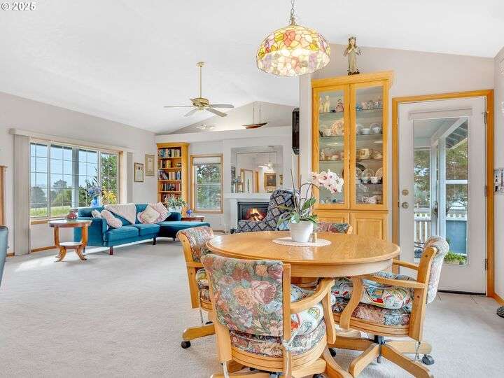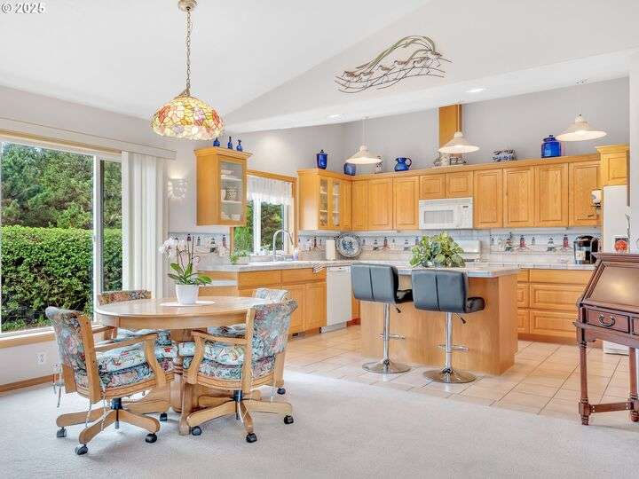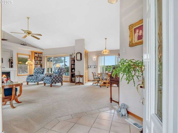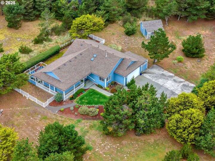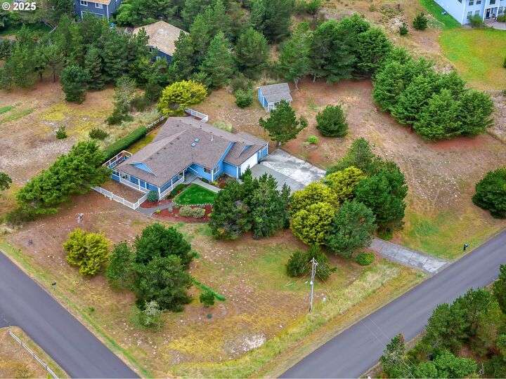Terrific single-level, home in the highly sought-after Surf Pines Community. This well-maintained, one-owner home sits on a spacious 1-acre corner lot on the desirable north end of the community, offering easy access to the beach and close proximity to the Astoria Golf & Country Club and Warrenton's shopping hub.Inside, you'll find vaulted ceilings, a cozy gas fireplace, gas appliances, and an inviting great room ambiance—perfect for gatherings or relaxing evenings indoors and outdoor private patio dining for relaxing with friends or a peaceful retreat.The property also includes a versatile work shed that can serve as a studio, workshop, garden house, or storage for recreational toys and another storage area attached to the home that was once a car port.