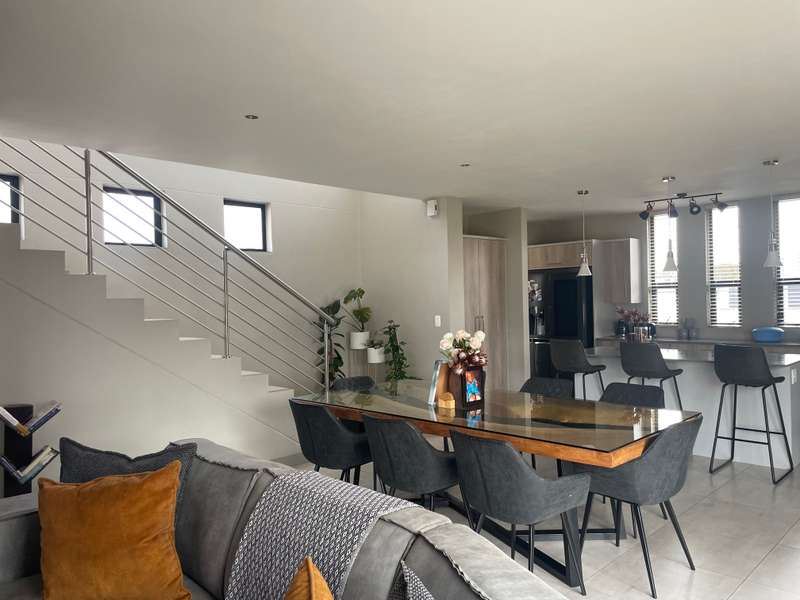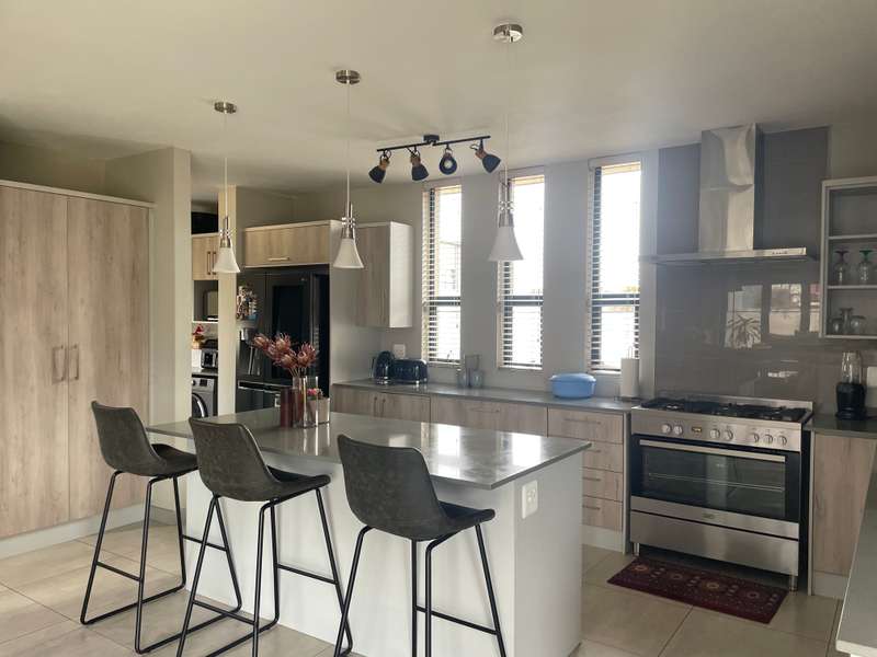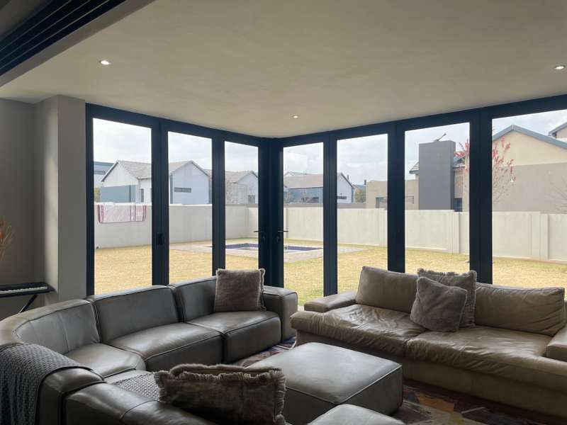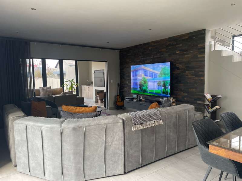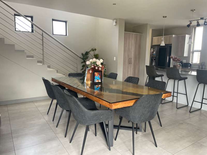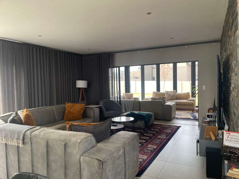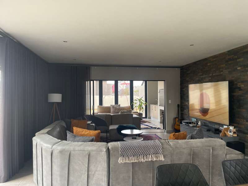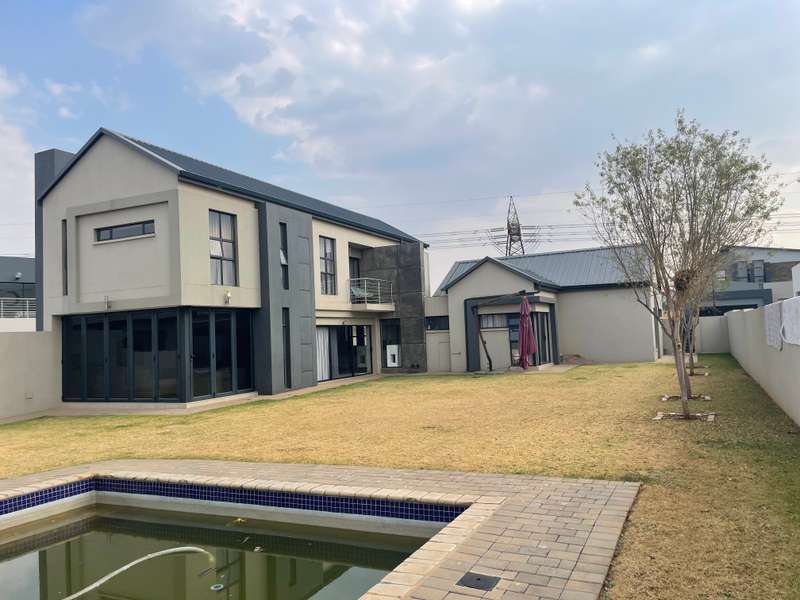 Modern double-story home that offers elegance, space, and functionality. A grand entrance welcomes you with a striking full-height window that looks out onto the expansive garden, creating a sense of openness and natural light throughout. The home features an open-plan kitchen with a separate scullery, flowing effortlessly into the dining area and TV lounge. A dedicated entertainment room with stacking doors and a built in braai provides the perfect space for hosting guests or relaxing in comfort. A guest bedroom with a bathroom is conveniently situated downstairs away from the living areas. Upstairs boasts three spacious bedrooms, each with its own en-suite bathroom, ensuring privacy and luxury for the entire family. The main bedroom offers a walk in closet and a balcony overlooking the expansive Garden. Every living space opens beautifully onto the outdoors, ensuring natural light, fresh air, and easy access to the garden and sparkling pool. • Designed to bring the outdoors in — whether you're enjoying a family braai, a summer pool party, or quiet time in the garden. • A home designed for real family living Additional features include: 4 Spacious Bedrooms (3 with en-suites, high-end, quality finishes) - Luxurious Master Suite with private patio, walk-through closet, and spa-like en-suite - Open-Plan Kitchen with separate scullery, seamlessly flowing to outdoor spaces - Private Lounge with fireplace and access to sparkling pool - TV Lounge - Dining Area for effortless living and entertaining - Triple Garage with secure parking and direct home access -Domestic room with its own bathroom and a separate storage room—perfect for gardening tools or extra household items. Midstream Estate is strategically located between Pretoria and Johannesburg, with easy access to N1 Highway and R21 with just 16 minutes to Mall of Africa. This prime positioning allows residents easy access to key amenities, including shopping centres, schools, and medical facilities, while still providing a tranquil retreat from the hustle and bustle of city life. The estate boasts beautifully landscaped parks, sports facilities, and a golf course. The community is also committed to sustainability, incorporating green spaces and eco-friendly practices. Midstream Estate's secure, luxurious environment and prime location provide an exceptional living experience. It’s an ideal choice for those seeking a blend of comfort, community, and modern convenience.
