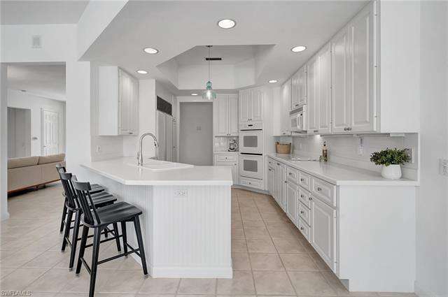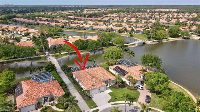 The Manor floor plan is the crown jewel in Village Walk! Where style and function are beautifully combined in this 3,200 SF home tucked away in a quiet cul-de-sac location with water views and 3 Venetian bridges in the background. Perfect for entertaining and space for all your guests. Features include: 4 large bedrooms, den or sitting area off the master bedroom, 3 full bathrooms, matching tile throughout, heated pool, clay tile roof was replaced in 2018, 3 car garage, eat in kitchen, Florida room with pool and lake views, and so much more... Village Walk is ideally located in North Naples just 5 miles from Vanderbilt Beach, and only 4 miles to the shopping and dining gem - Mercato! Community amenities include har-tru tennis, pickleball, bocce ball, gym with lap pool, 2 resort pools, on-site restaurant, hair salon, travel agent, and on site property management. Full lawn care and cable and Internet are included in your dues. You will love this home and this community!