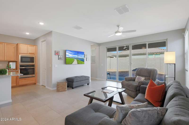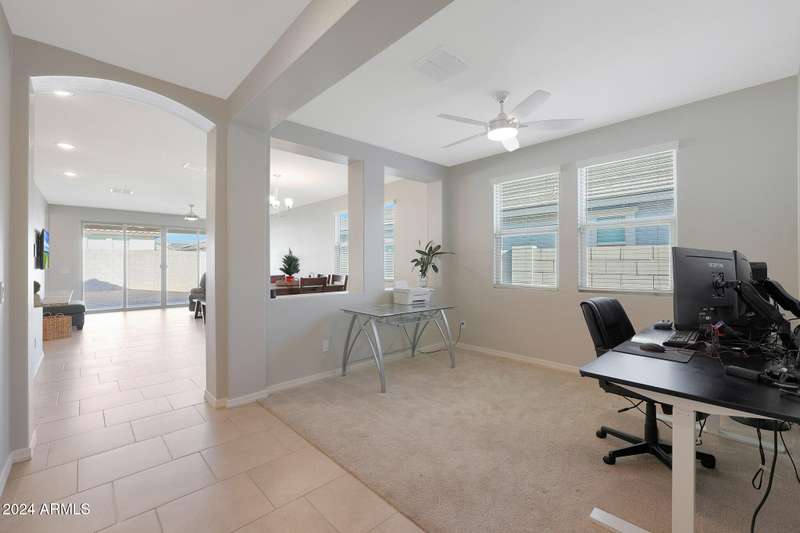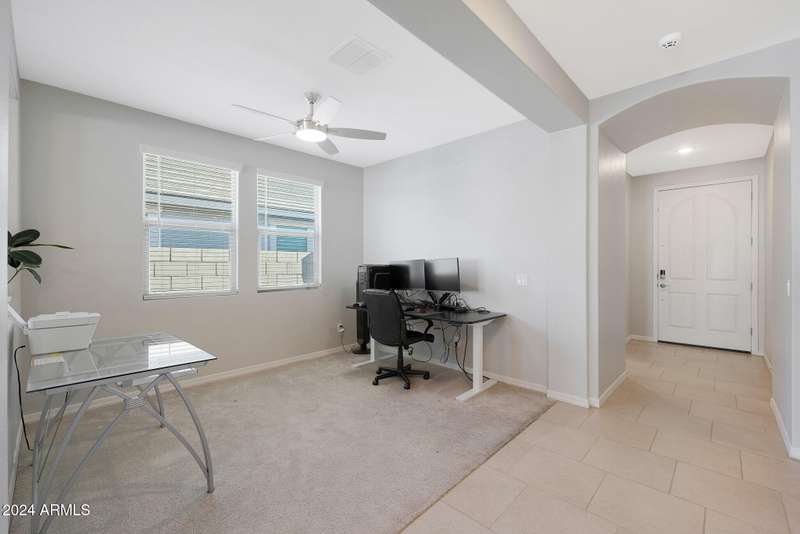 This gorgeous 3-bedroom, 3-bathroom,2-car garage Fulton Home is in beautiful Goodyear's most sought-after Estrella Commons community. Enjoy the lifestyle you've been dreaming of in this vibrant neighborhood, featuring scenic walking and biking paths, convenient proximity to shopping, easy access to the freeways, restaurants, gyms, schools, and all the amenities you could need. Relax and unwind on the charming front porch, taking in Arizona's breathtaking skies. Step inside and explore the expansive floor plan, which includes 3 bedrooms, 3 bathrooms, a welcoming family room perfect for entertaining and dining, and a versatile den/flex space—ideal for working, studying, or creating your personal retreat.
