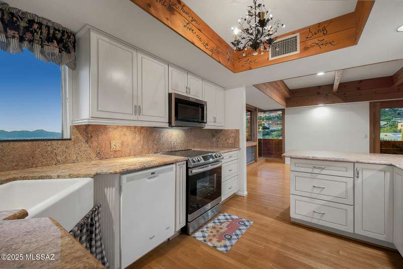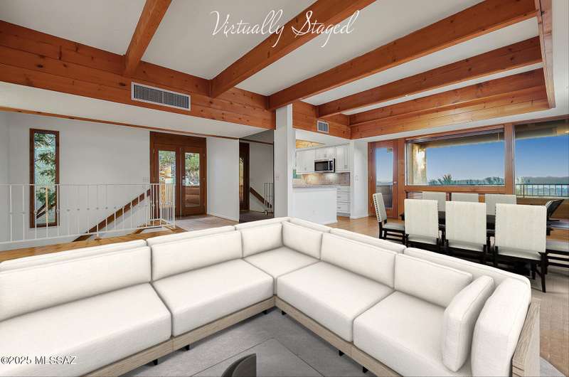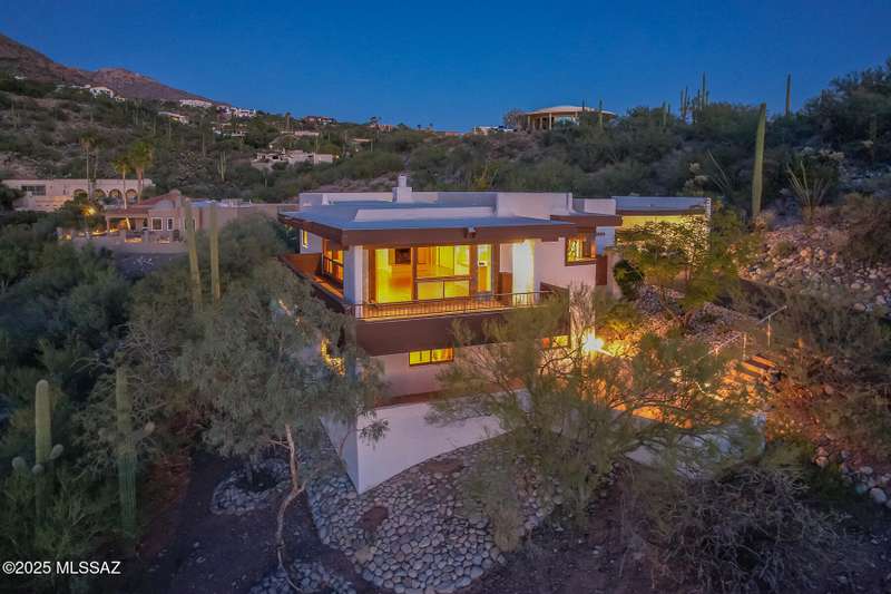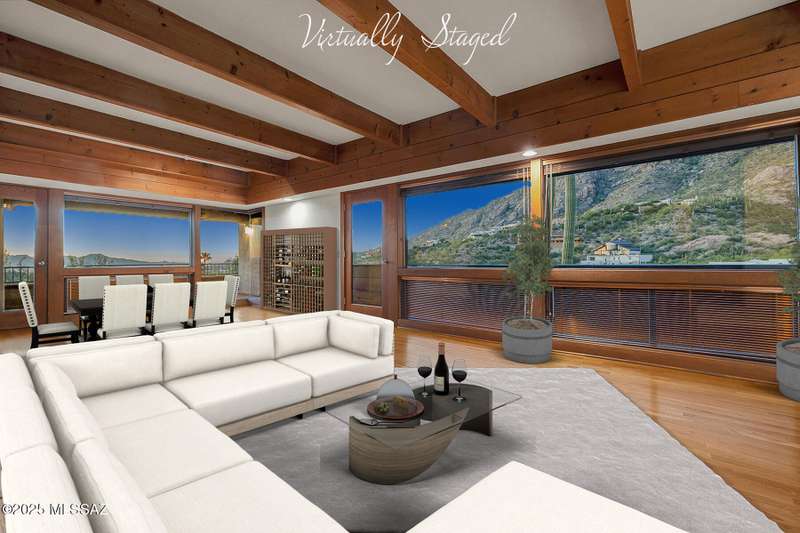 Experience privacy & BREATHTAKING VIEWS in this exceptional 4BR/4BA one owner home designed by renowned architect David Tyson. Nestled on a 1.15 acre hilltop lot in the prestigious Skyline CC, a guard gated golf course community. Expansive living room w/beamed ceilings, fireplace, wood floors & panoramic views. Remodeled kitchen w/stainless steel appliances, granite counters & custom cabinetry. Lower level perfect for guests with 2nd primary bedroom and a kitchenette, ideal for visitors. Freshly painted inside and out, updated electrical, driveway resealed and much more! Seamless indoor-outdoor living w/ extensive wrap-around covered balconies and patios perfect for entertaining while enjoying STUNNING views. See agent only remarks regarding offer. See floor plan in attached documents.