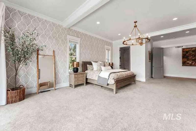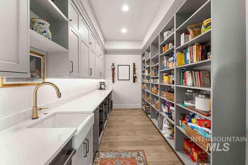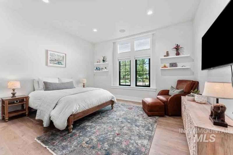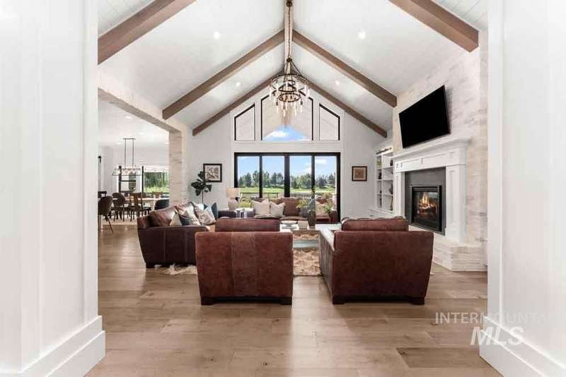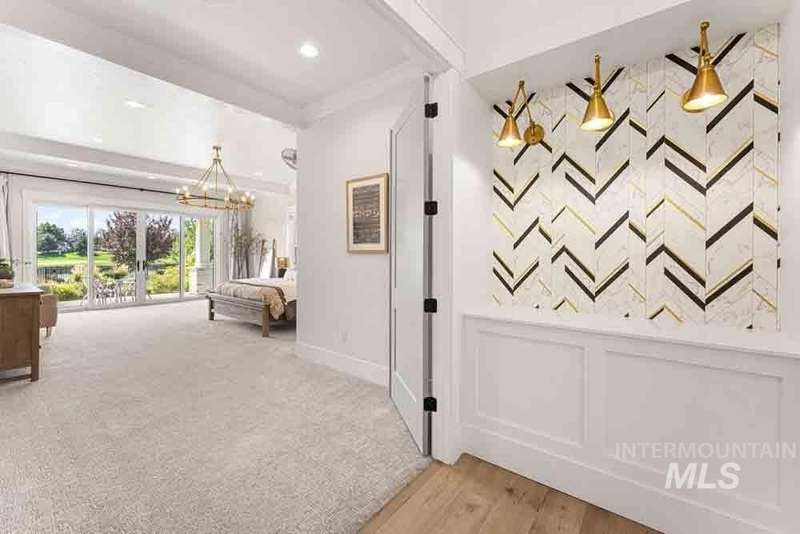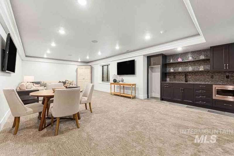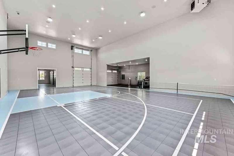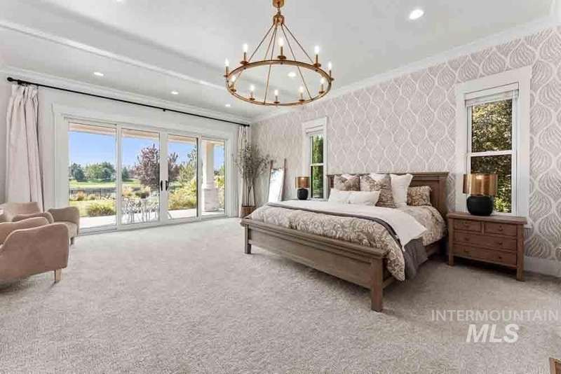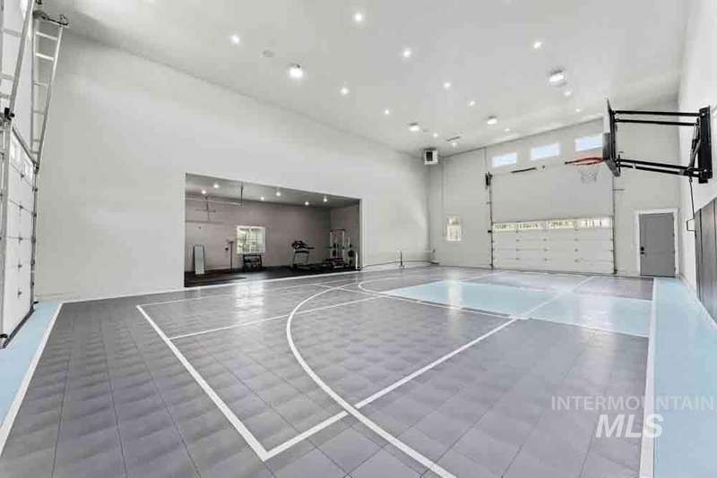 Welcome to this stunning waterfront estate in the prestigious Spurwing Country Club community. Enjoy panoramic views of the executive golf course, tranquil private pond and private beach, plus nearly 3,800 sqft of temperature-controlled garage space featuring an oversized sports court for basketball and pickleball. Inside, a grand foyer opens to an inviting great room with soaring cathedral ceilings and exposed beams. The gourmet kitchen is a chef’s dream with Wolf and Sub-Zero appliances, an oversized island, and expansive butler’s pantry. The main-level master bath offers a spa-like retreat with a soaking tub, walk-in shower, and custom closet with laundry hookups. Upstairs includes spacious bedrooms and the convenience of a second laundry room. The basement boasts a tiered theater, large flex room with wet bar, and generous storage. Outdoors, enjoy over 900 sqft of covered patio space with built-in grill and TV hookups, perfect for relaxing or entertaining year-round.