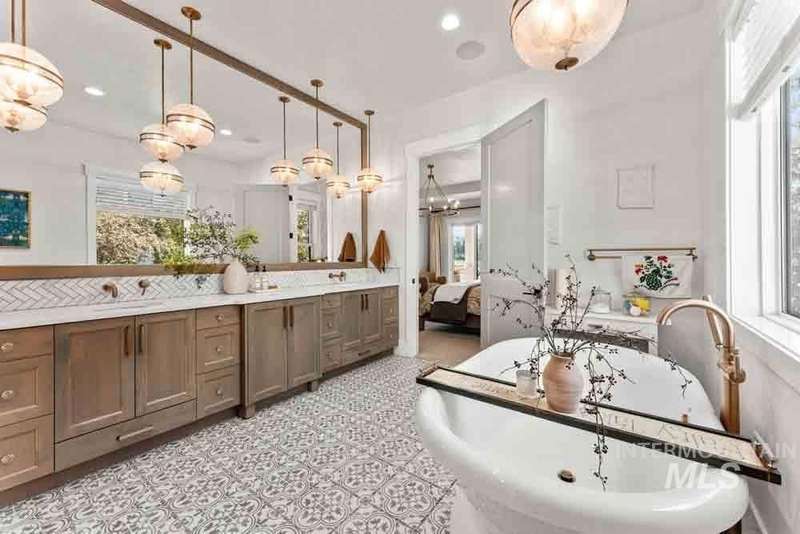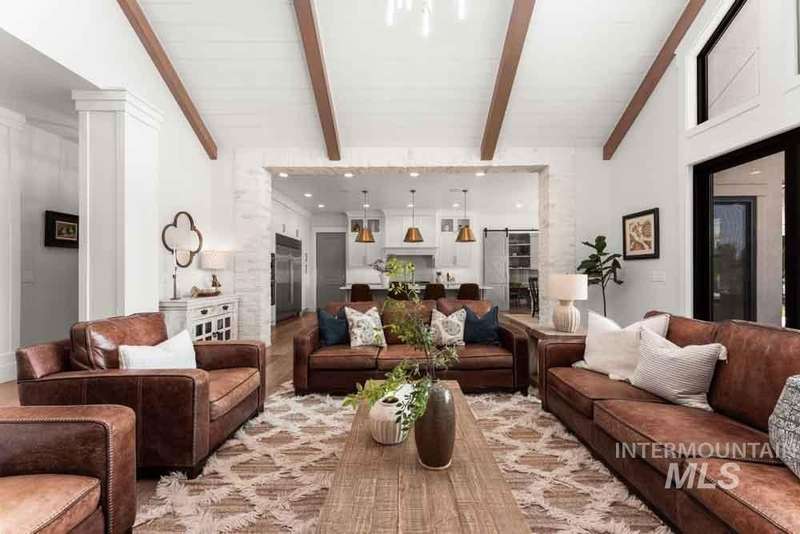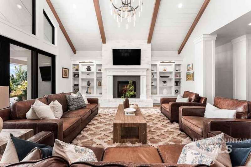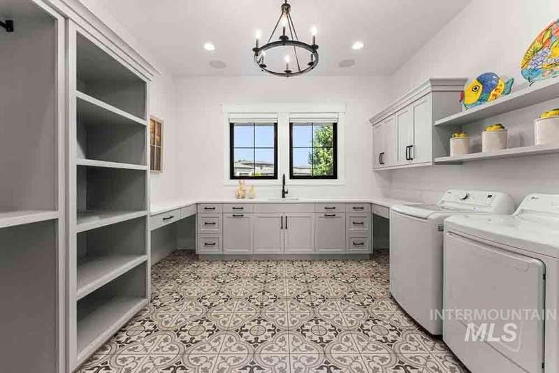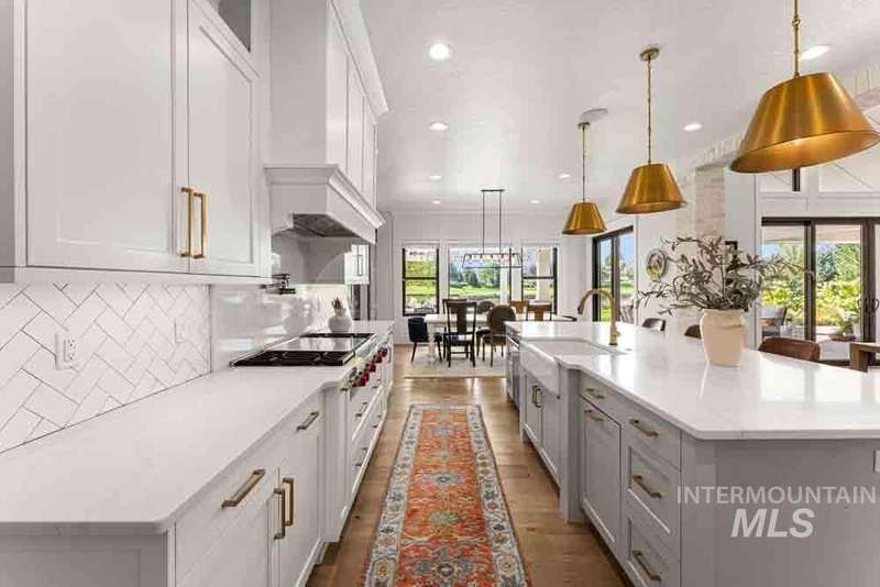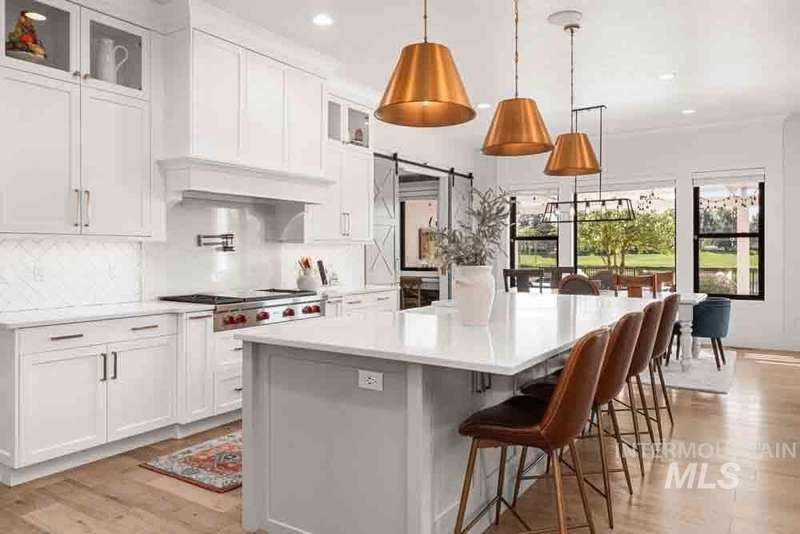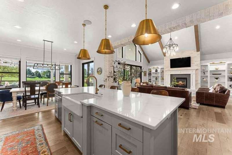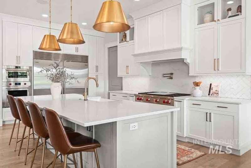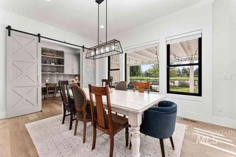 Welcome to this stunning waterfront estate in the prestigious Spurwing Country Club community. Enjoy panoramic views of the executive golf course, tranquil private pond and private beach, plus nearly 3,800 sqft of temperature-controlled garage space featuring an oversized sports court for basketball and pickleball. Inside, a grand foyer opens to an inviting great room with soaring cathedral ceilings and exposed beams. The gourmet kitchen is a chef’s dream with Wolf and Sub-Zero appliances, an oversized island, and expansive butler’s pantry. The main-level master bath offers a spa-like retreat with a soaking tub, walk-in shower, and custom closet with laundry hookups. Upstairs includes spacious bedrooms and the convenience of a second laundry room. The basement boasts a tiered theater, large flex room with wet bar, and generous storage. Outdoors, enjoy over 900 sqft of covered patio space with built-in grill and TV hookups, perfect for relaxing or entertaining year-round.