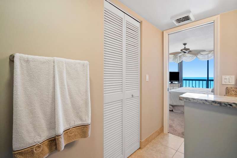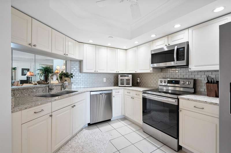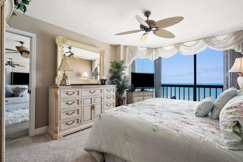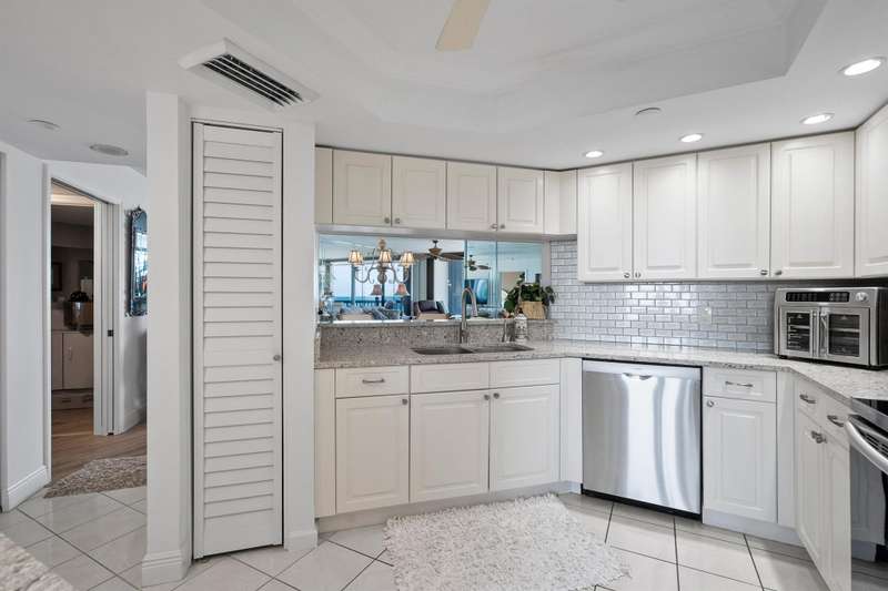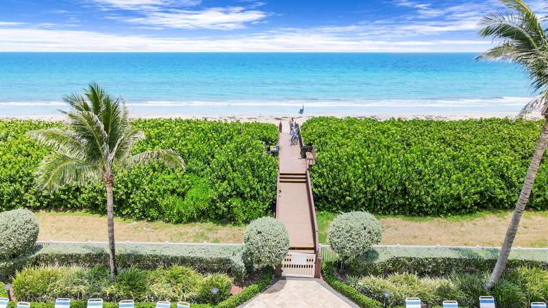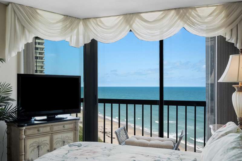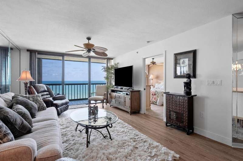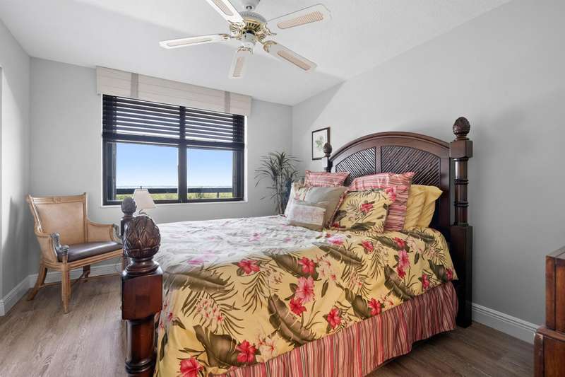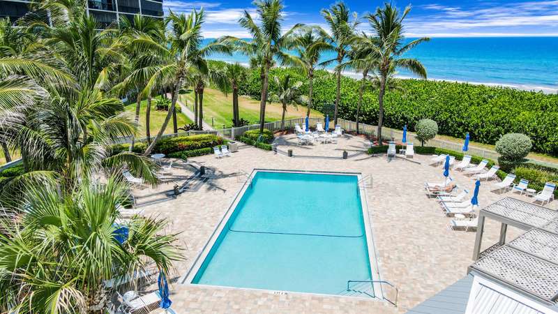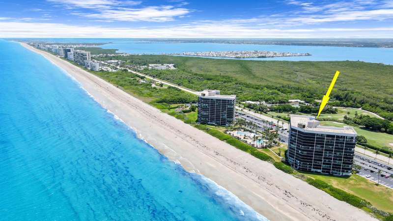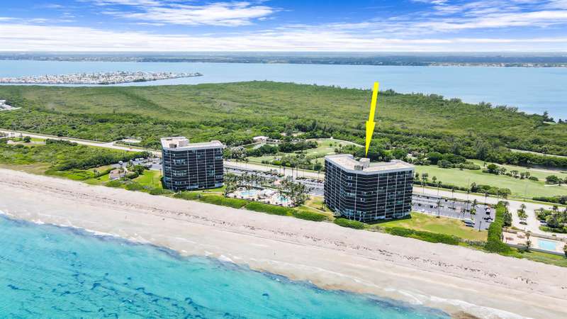 DIRECT OCEAN VIEWS! Come see these 2 bedrooms, 2-bathroom direct oceanfront condo. This 10th floor condo has expansive views of the Atlantic Ocean from the living room, primary bedroom, and covered balcony. The kitchen features impressive quartz countertops and stainless steel appliances. Accordion shutters on all windows for storm protection. The guest bedroom & kitchen nook have spectacular views of the Indian River to the west. Island Dunes is one of the most luxurious buildings on the island - with direct beach access, 2 heated swimming pools, hot tub, sauna, fitness center, 9-hole golf course, 6 tennis courts & 6 pickle ball courts, updated lobby, updated elevators, 24 hr. manned security, social room, A/C storage locker, and additional storage for bikes & paddleboards or kayaks. No