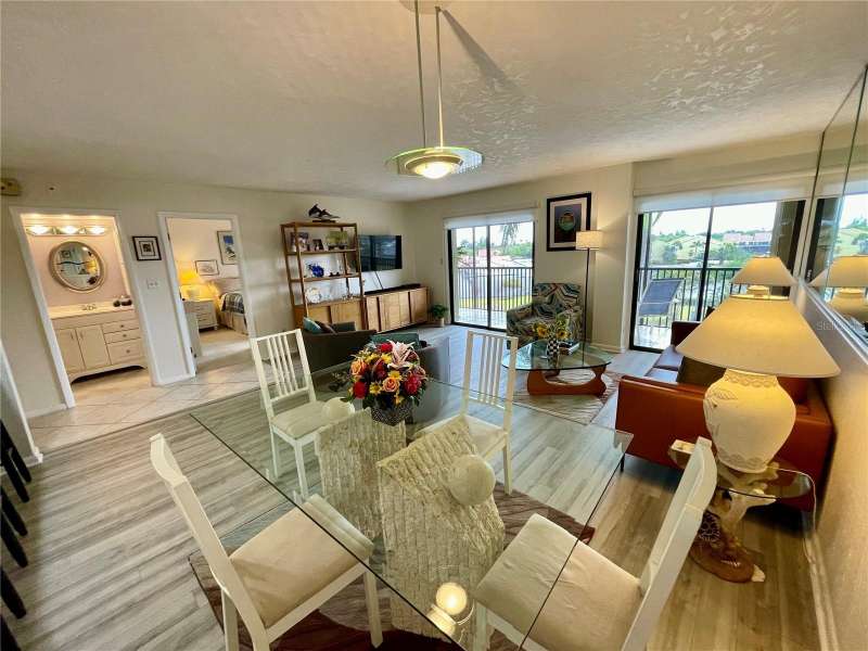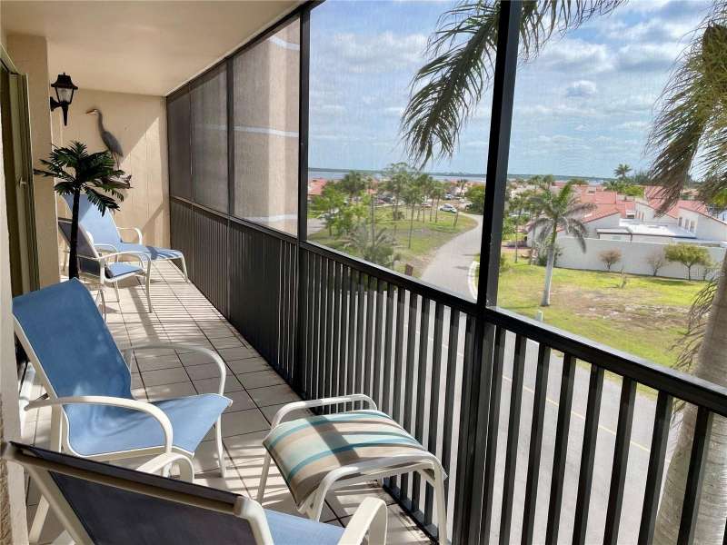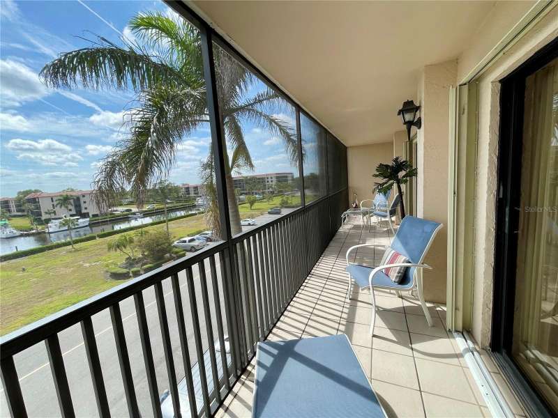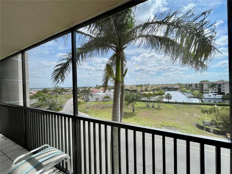 Under contract-accepting backup offers. Stunning 3rd floor, 1037sf, 1 bed, 1, 1/2 bath overlooking the Marina at Emerald Pointe with a flex room, and a gated waterfront community on the Peace River. Every unit has access to a slip in the marina at no additional charge; it's included in your HOA fee. The slip size accommodates all size boats. This is a very active community with 3 pools, 4 Har-Tru tennis courts, another tennis court converted to 2 pickleball courts, a "senior games" area, bike riding, fishing, a walking path, it's golf cart-friendly, has an active social committee with a chef doing breakfast, lunch, dinners and parties in the Yacht Club for many occasions, and so many more amenities. Come see this beautifully updated unit with amazing views in a friendly community and fall in love! The LARGE Great Room/Casual Dining area has new LVP flooring and 2 sets of sliders leading to the spacious lanai that overlooks the community marina and the Peace River. The Kitchen overlooks the Great Room and Casual Dining space past the breakfast bar. It has been updated with wood cabinets, tile counter tops, white appliances, a tray ceiling with up lighting and a fan. The laundry area is in the back of the kitchen. The comfortable Primary bedroom also has sliders out to the lanai with an amazing view. There is a full wall closet in the bedroom along with an additional walk-in closet that shares space with a 1/2 bathroom. The utility closet is at the back wall of the walk-in closet. There is also access to the main bathroom from the Primary bedroom. The full bathroom was updated with a walk-in shower and taller vanity. The Flex room is currently used as a 2nd bedroom/office with a pocket door for privacy. Sitting on the screened lanai, you can enjoy the palm tree out front with birds that have nested, watch the sun rising in the mornings and activity in the harbor. It's a peaceful way to start your day! There is 1 under building parking space with a storage space in the same area. Additional parking is near the front of the building. An additional storage closet just outside of the unit on the 3rd floor. Come see and make it yours! You are close to I75 & Tamiami Trail to travel to beaches and other wonderful neighboring areas. Quaint downtown Punta Gorda is just a mile down the street and offers many boutique shops, local restaurants, a Farmer's Market, craft shows, many festivals, free bike use, Harbor walk paths, parks, etc... Some furnishing are available on a separate contract. FYI...HOA fee dropped 6-1-25 from $780 to $709 monthly.