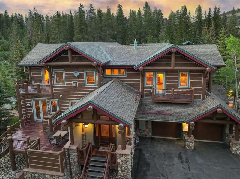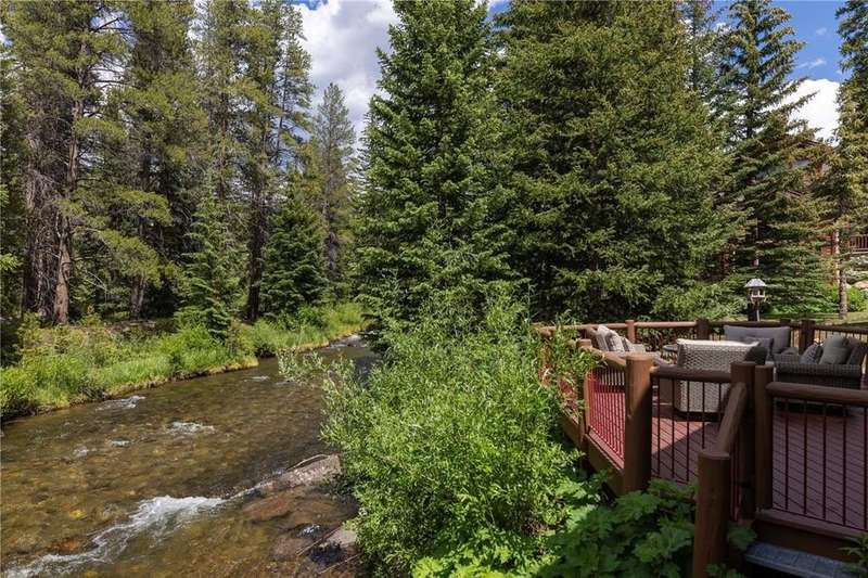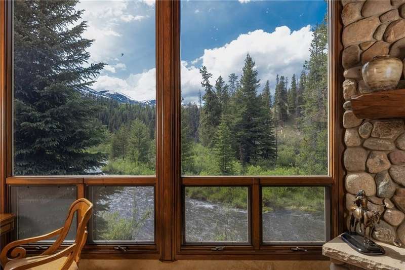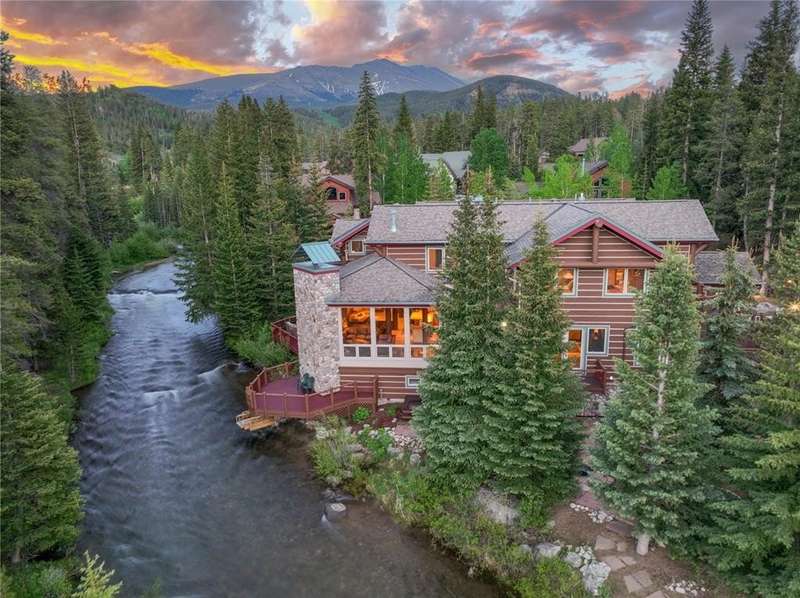 Irreplaceable family estate on the Blue River, rebuilt from the ground up in 2002, with ski area views and less than one mile from the vibrancy of downtown Breckenridge. Once in a life time opportunity to own an exquisite property for entertaining family and friends of all ages. Featuring nearly one acre with privacy, mature landscaping, over 300 feet of prime river frontage, a putting green, bocce court and stunning riverside decks. Forested open space on the other side of the river complete this magical setting that is not found anywhere in Summit County. Over 8,000 square feet of living features a gourmet kitchen, great room, and dining area that flow together to create an exceptional space for gathering and entertaining. Two separate family suites with kitchens, private decks, 9 bedrooms all with en-suite baths, elevator, even a care taker unit with river views, ensures there is room, accessibility, and privacy for all. A media room and operational model train room with historic mining motif and décor is an absolute show stopper. Views of the river and mountains are seen from the kitchen, dining room, great room, primary suite and several additional bedrooms. Escape to your ultimate Breckenridge dream home and get ready for a truly remarkable experience.
