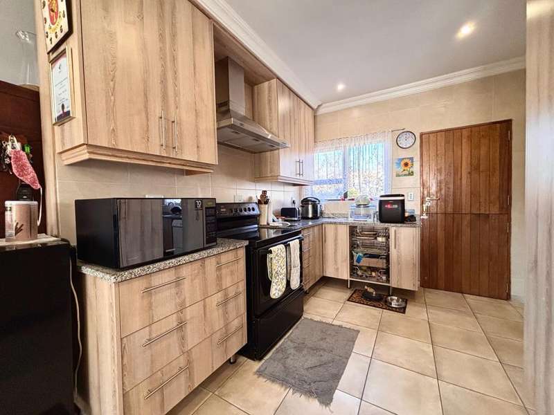 This beautiful 3-bedroom family home is located in the peaceful Bospoort Vallei area of Bela Bela. The house features two bathrooms, one of which is en-suite to the main bedroom, offering both comfort and convenience. The open-plan design combines the dining and living room areas, creating a spacious and welcoming environment perfect for family gatherings and entertaining guests. The modern kitchen is well-equipped and stylishly finished, ideal for home cooking and daily living. The living room includes an air conditioner for year-round comfort, while all the bedrooms are fitted with built-in cupboards, providing ample storage space. The home also features a lovely patio area, perfect for relaxing outdoors or enjoying weekend braais with family and friends. Outside, the property boasts a well-maintained garden with an irrigation system, making it easy to keep the outdoor space green and inviting. A water tank is also installed, ensuring a reliable backup water supply. For added sustainability and energy efficiency, the home is fitted with 12 solar panels connected to an inverter system, significantly reducing electricity costs and ensuring peace of mind during power outages. This property offers a secure, comfortable, and eco-friendly lifestyle, making it an ideal family home in a sought-after location.
