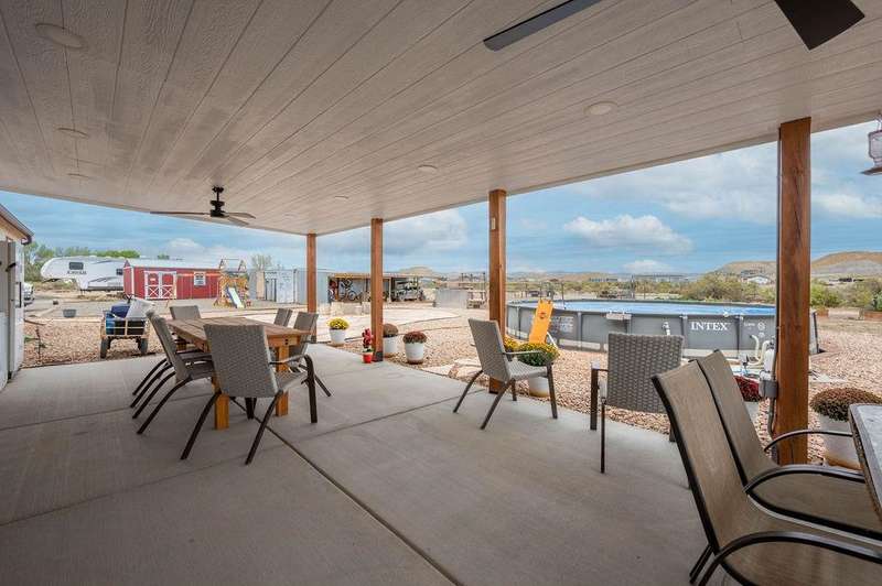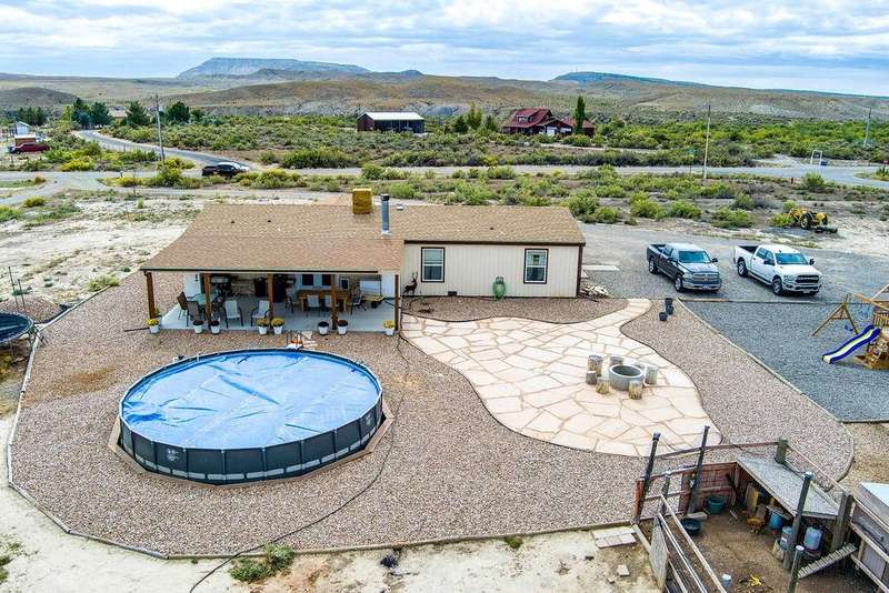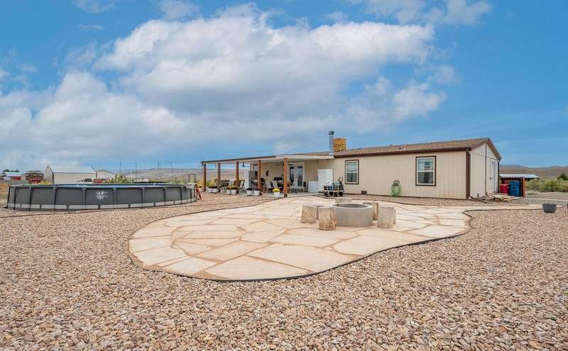 Looking for the perfect 5-acre hobby farm to raise chickens, livestock, or simply enjoy wide open space? This beautifully updated property has it all! The home has been thoughtfully remodeled with new windows, interior doors, a modernized kitchen with stylish tile work, backsplash, built-in microwave, and updated lighting. Other recent improvements include new blinds, a French patio door, landscaping, a covered patio, and a walk-in closet in the primary bedroom. Step outside to enjoy a 24” x 52” above-ground pool, cozy fire pit, and a small, insulated shop with electricity, perfect for projects or storage. The property also includes raised garden planters, a chicken coop, and plenty of space to expand or customize to fit your vision. With no HOA, you have the freedom to truly make this place your own! There’s also RV parking with an RV dump and electrical hookup, making it ideal for travelers or guests. Whether you’re starting your homestead, growing a garden, or just craving privacy and space, this property is ready for you. Schedule a showing today and see all it has to offer!
