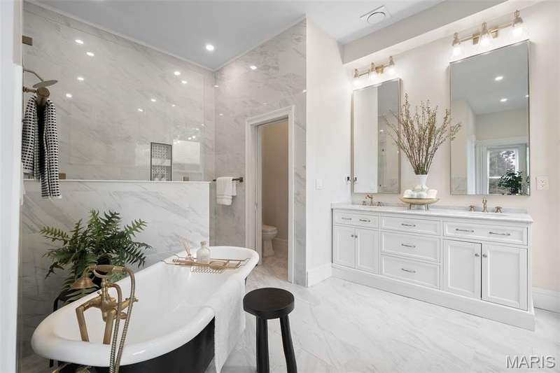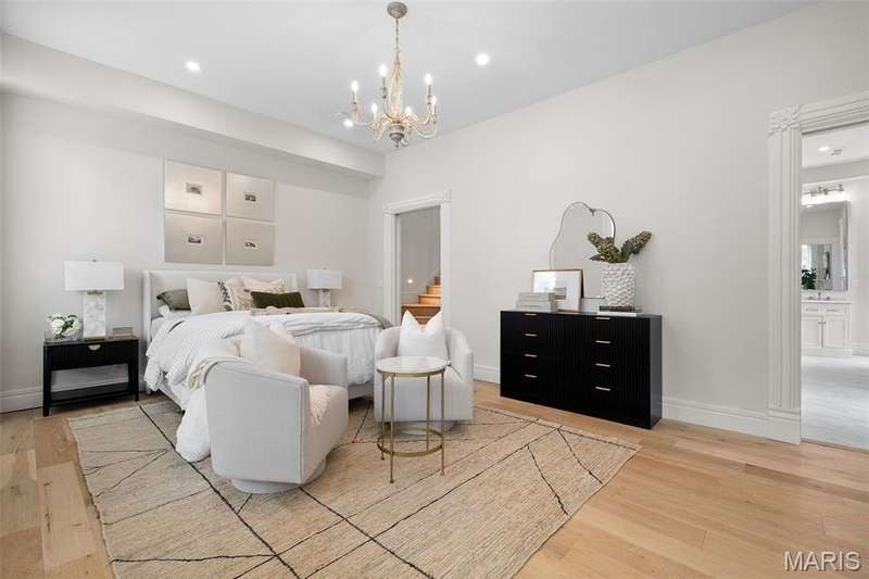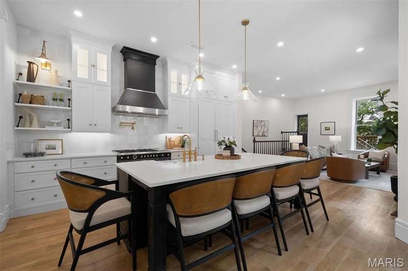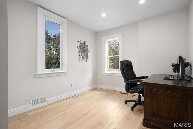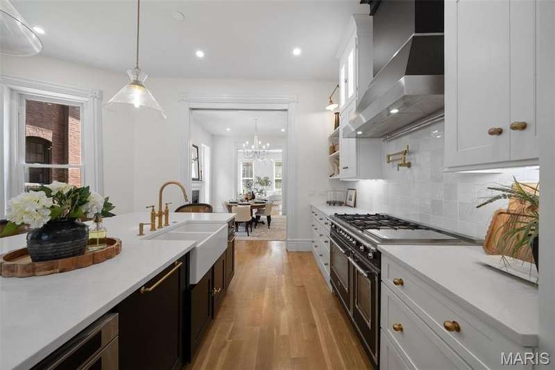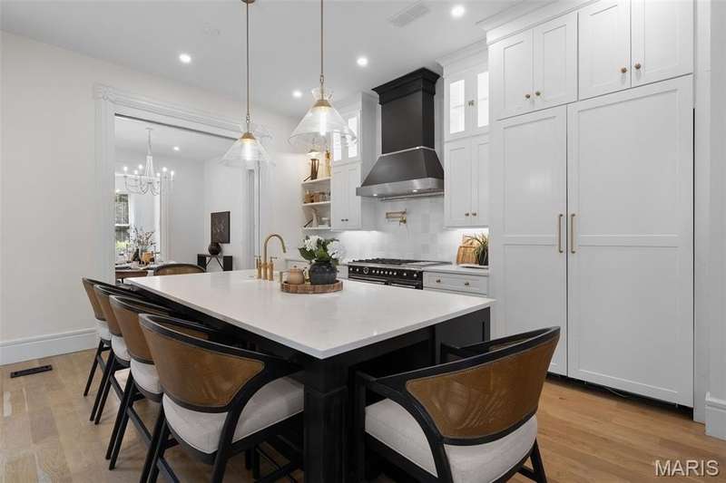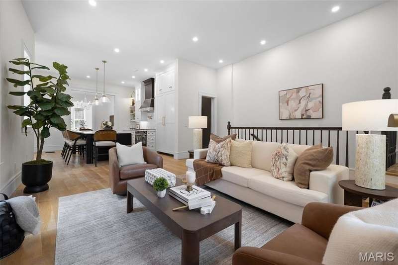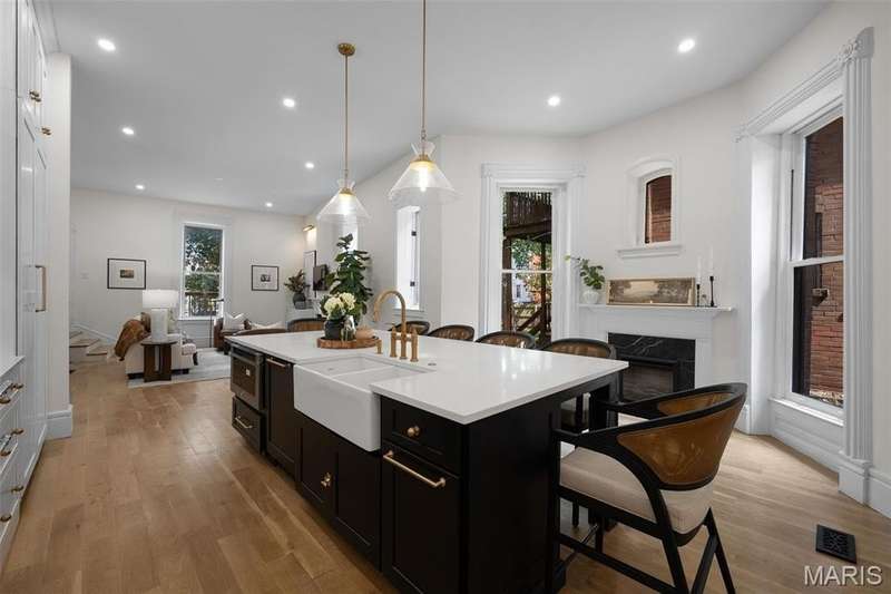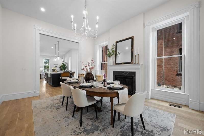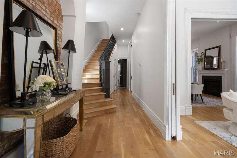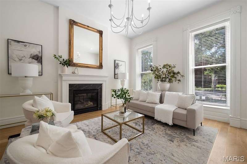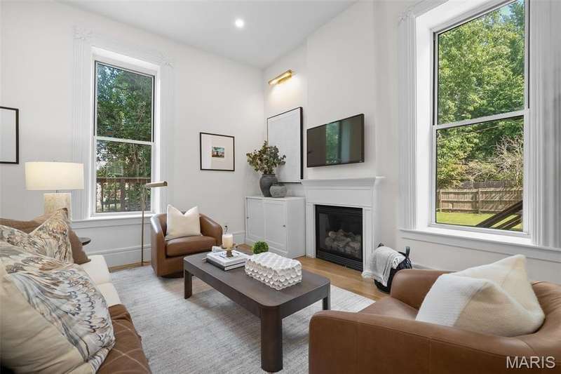 Step into this stunning Lafayette Square gem, offering four levels of finished living space on a double lot just steps from the historic Lafayette Park. Blending original character with refined updates, the main level features 5" white oak hardwood floors and a classic Victorian layout that seamlessly connects the elegant living room, and the show stopping chef’s kitchen, complete with a fireplace, high-end appliances, quartz surfaces, and a stylish butler’s pantry with tile accents. Enjoy your mornings in the cozy family room, also adorned with its own fireplace. As you make your way upstairs, you'll find a private retreat featuring a luxury primary suite with a fireplace and spa-like bath with its own fireplace, three additional bedrooms, a full bath, laundry, and updated HVAC systems for zoned heating and cooling. The third level offers two more bedrooms and a full bath as well. Did I mention the beautiful white oak engineered flooring on both the second and third levels? The finished lower level expands your lifestyle with a spacious rec room, sleeping quarters, a full bath, a second laundry area, and convenient walk-up access to the outside. You'll love entertaining or simply relaxing on the deck overlooking the sprawling double lot, complete with a private 2-car parking space behind an electric gate. This home is a true gem in one of St. Louis’ most coveted neighborhoods, where vibrant dining, shopping, and the serene beauty of Lafayette Park are just outside your door.