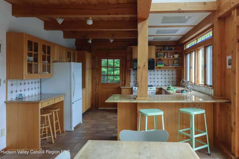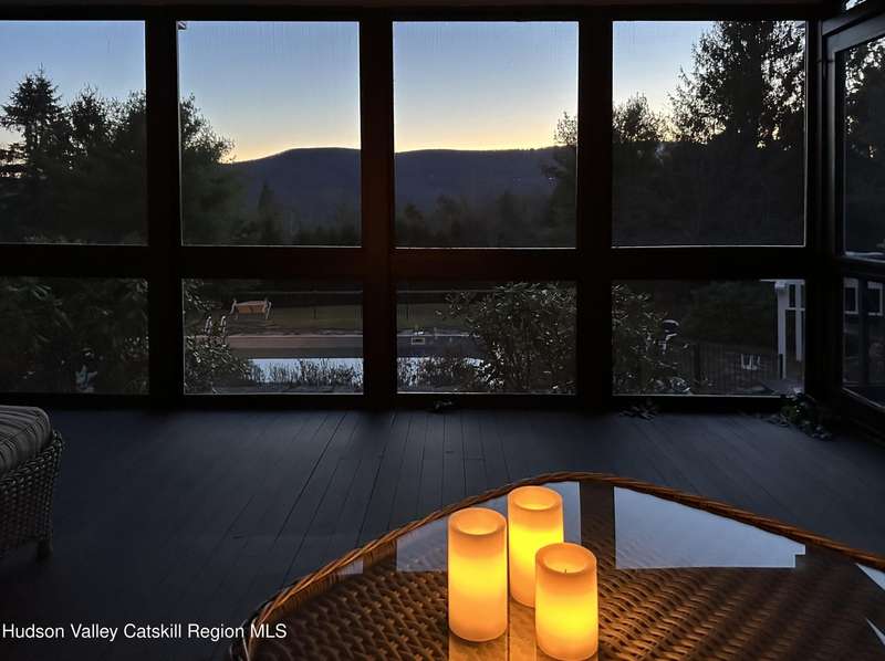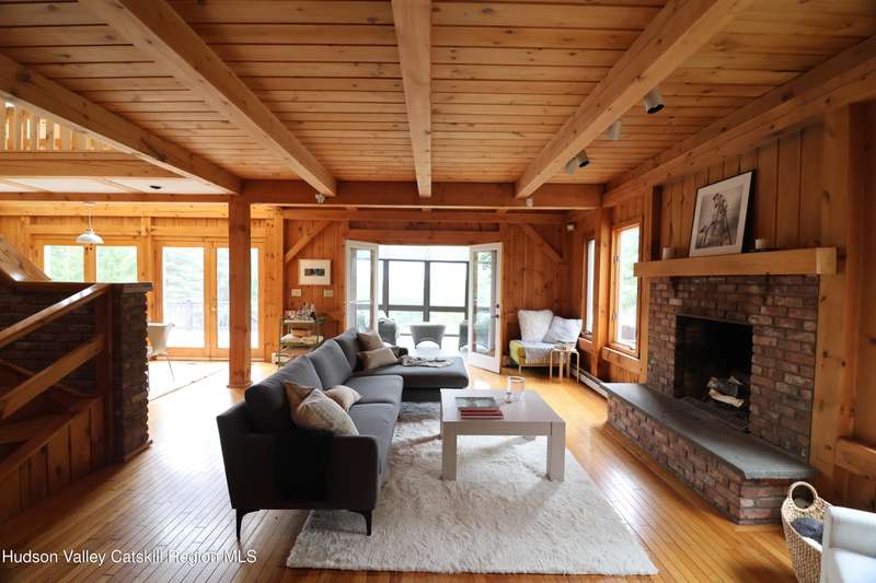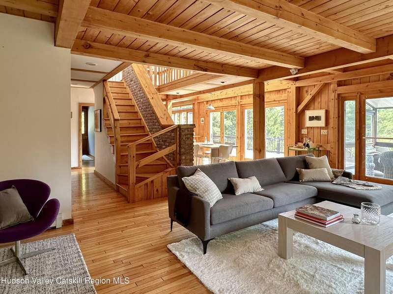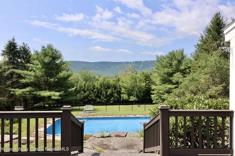 This cozy post and beam home in the Catskills is privately sited off a quiet country road on 14 private and serene acres. Enjoy breathtaking year-round mountain views, your own rolling meadows, woods to explore, and an in-ground swimming pool. This home has expansive decking, a screened-in porch, two fireplaces, and a soaking tub. Located in the heart of the Catskills, surrounded by several charming villages in Ulster and Delaware Counties, this home provides access to world class hiking, fishing, skiing, and fine dining. Inside, there is an inviting open floor plan featuring a spacious living room with a fireplace, an exquisite dining area with two sets of French doors which lead to an expansive deck with striking mountain and pool views. Another set of French doors connects the living room to a delightful screened porch ideal for dining or chatting with friends while gazing at the mountains. The chef's kitchen (with ample counter space) has a door leading to the built-in grill and is ideal for hosting family and friends. There is also a first floor guest room adjacent to a half bath.On the upper level there is a primary bedroom with vaulted ceilings, a wood burning fireplace, an ensuite bathroom, and a spa-like soaking tub. This upstairs area fosters a perfect atmosphere for unwinding after a day on the nearby slopes of Belleayre Ski Center, which is only five minutes away. There are also two additional guest bedrooms, each with lofts and a full bath, which offer ample space for visitors.This property is composed of four parcels spanning two counties, with potential for expansion. Explore the outdoors with your own garden and trails right at your doorstep. Or explore the vibrant villages of Phoenicia and Margaretville (each just 15 minutes away) where one can indulge in local dining, shopping, and outdoor adventures. This home provides access to skiing, fly fishing, hiking, biking, rail trails, and shopping in the nearby villages of Margaretville and Phoenicia, where you can also find spas and fine dining. 30 minutes to Woodstock, Andies, Bovina, Wyndam and Hunter. All this and more only two hours to the GWB.