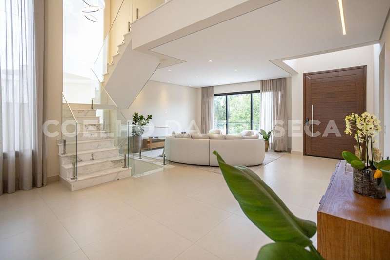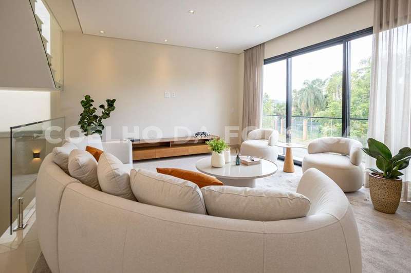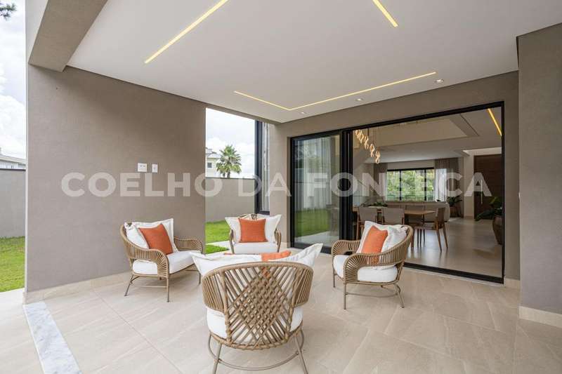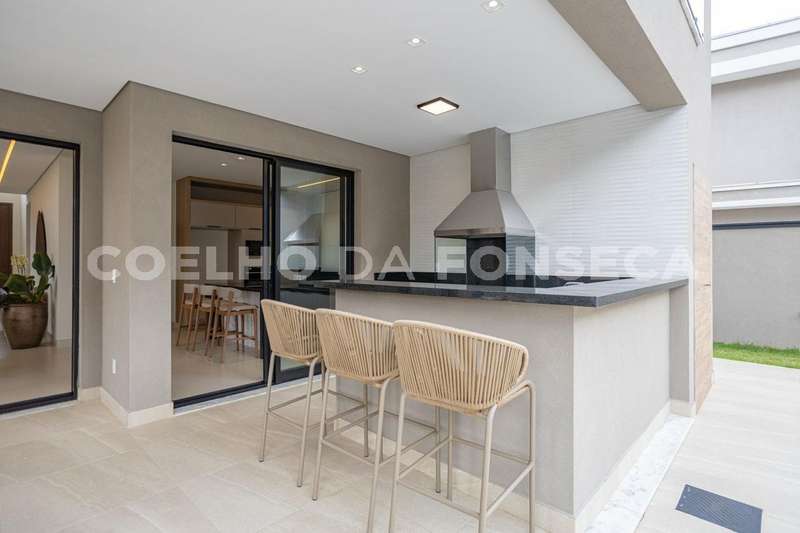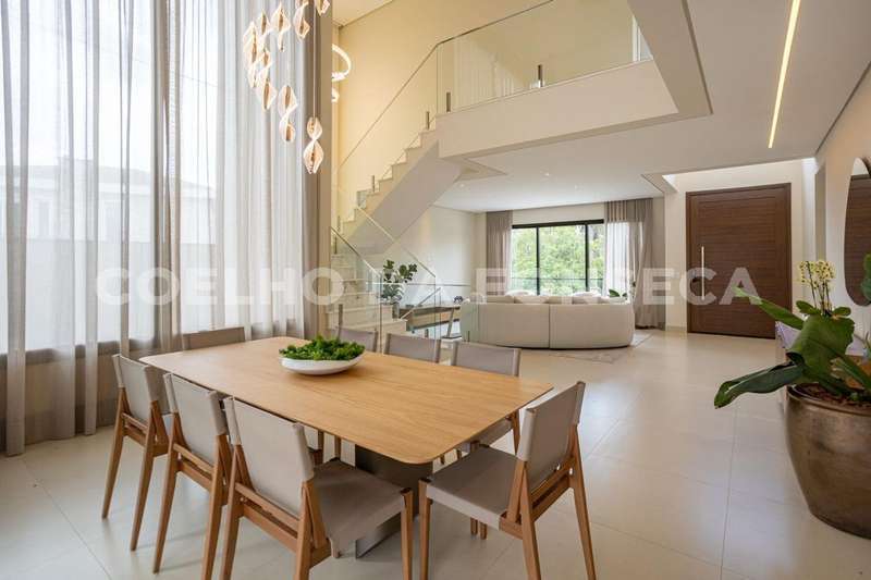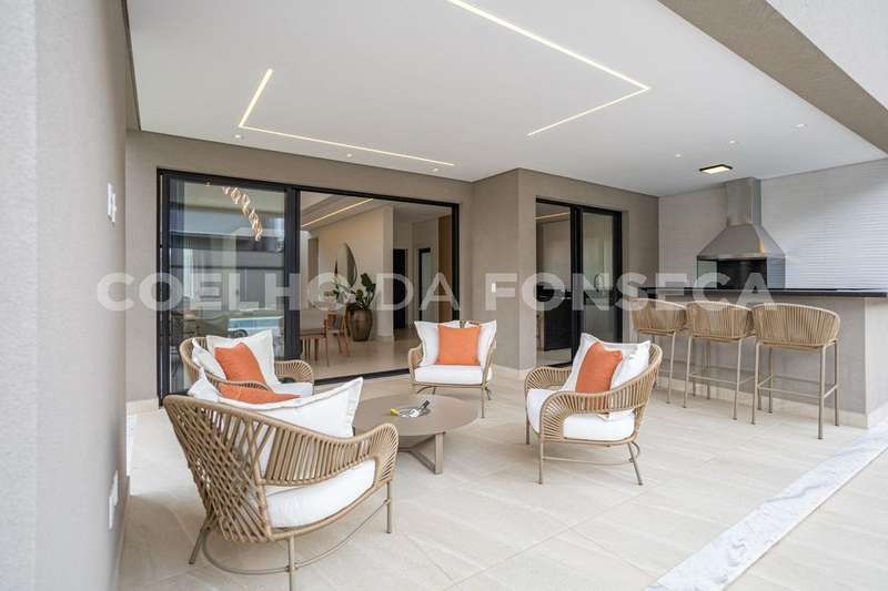Escritório.Acabamentos de primeira linha, revestimentos e pisos em porcelanato.Garagem para 4 veículos, sendo 2 cobertas, ponto para recarga de veículos elétricos. Área de serviço, banheiro. Aquecedor de passagem a gás para chuveiros e torneiras. Infraestrutura para: aquecimento à (gás) da piscina, ar condicionado e fotovoltaica, Pressurizador. Ótima localização no condomínio Burle Marx.