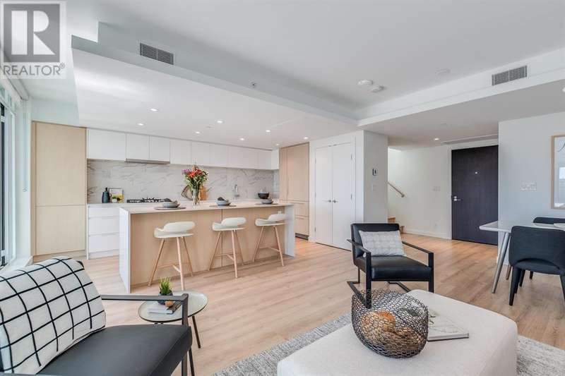 Don´t miss this exclusive South-facing City Home at Apex, Thoughtfully designed with an inviting open-concept layout, this home offers 2 spacious bedrooms, 3 modern bathrooms. air conditioning, main-level patio with gas BBQ hookup right off the gourmet kitchen area. The chef-inspired kitchen features premium finishes including, A 5-burner gas cooktop, Quartz countertop, High-end stainless steel appliances. As a resident, you'll have full access to Denna Club´s luxury amenities, including an Indoor pool, steam room, sauna, hot tub, Fully equipped fitness centre, 24-hour concierge, a Guest suit, Party room with catering kitchen, and Resident lounge, 1 parking stall with EV charging, Private bike storage, Oversized storage locker. (id:58403)