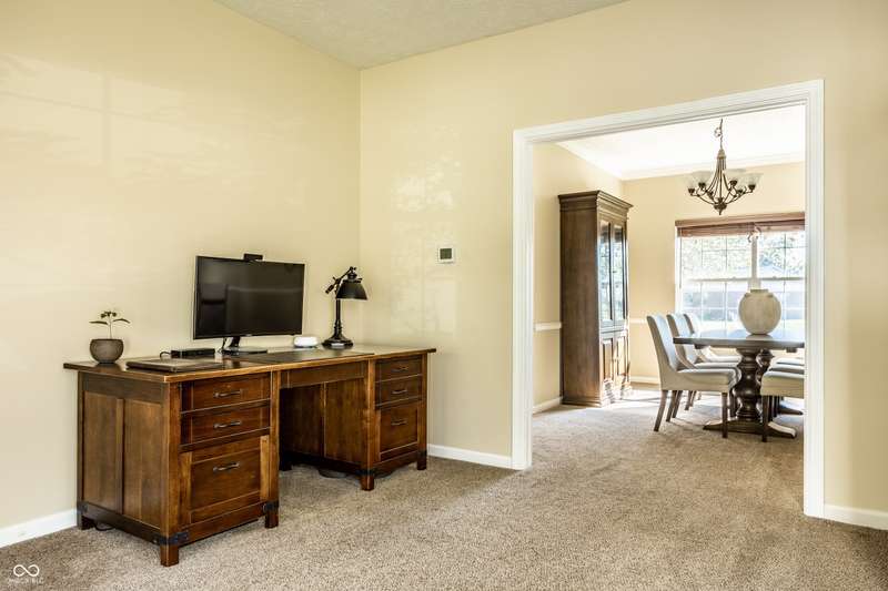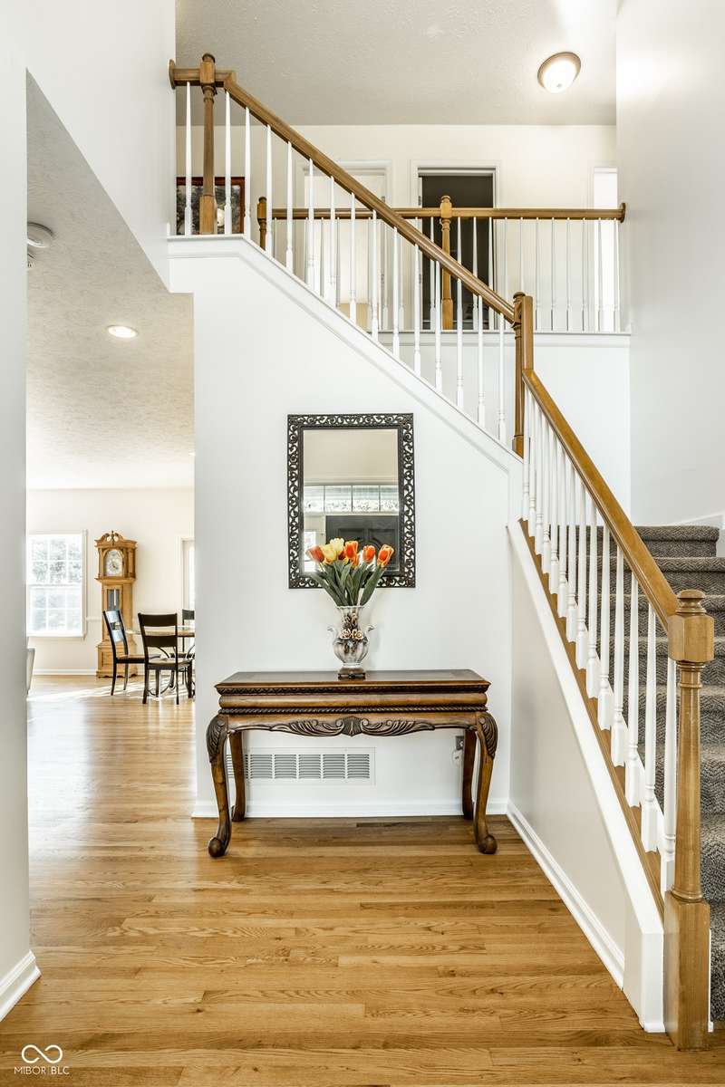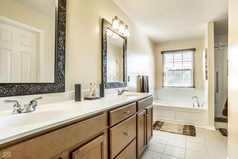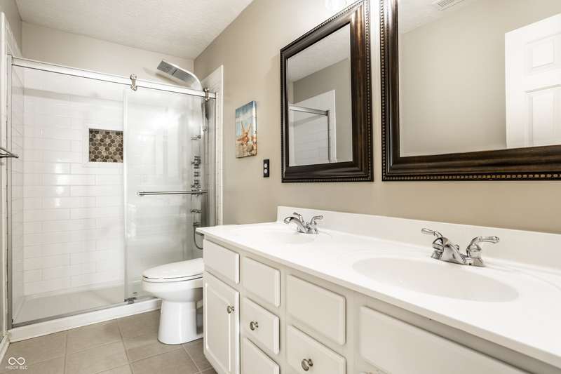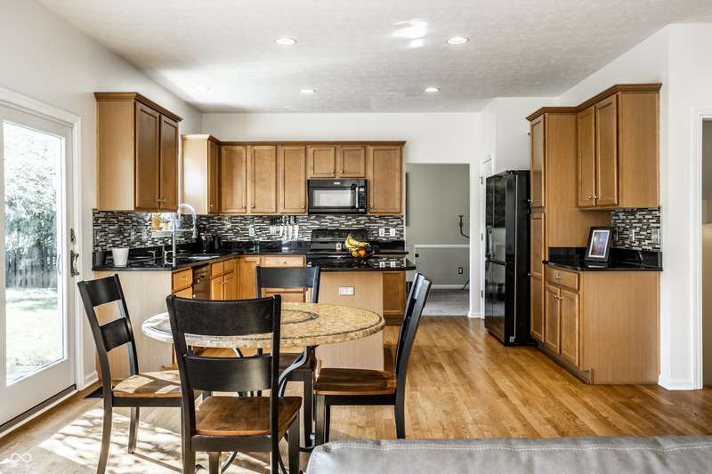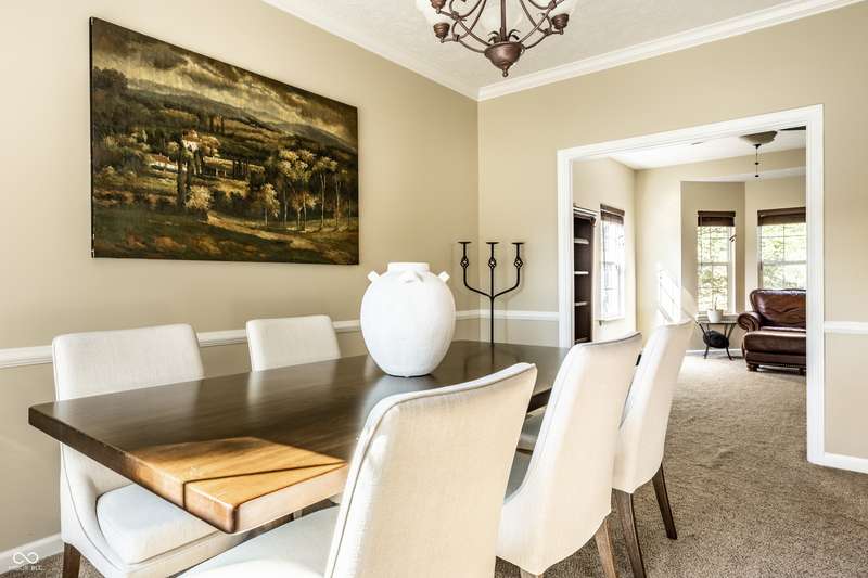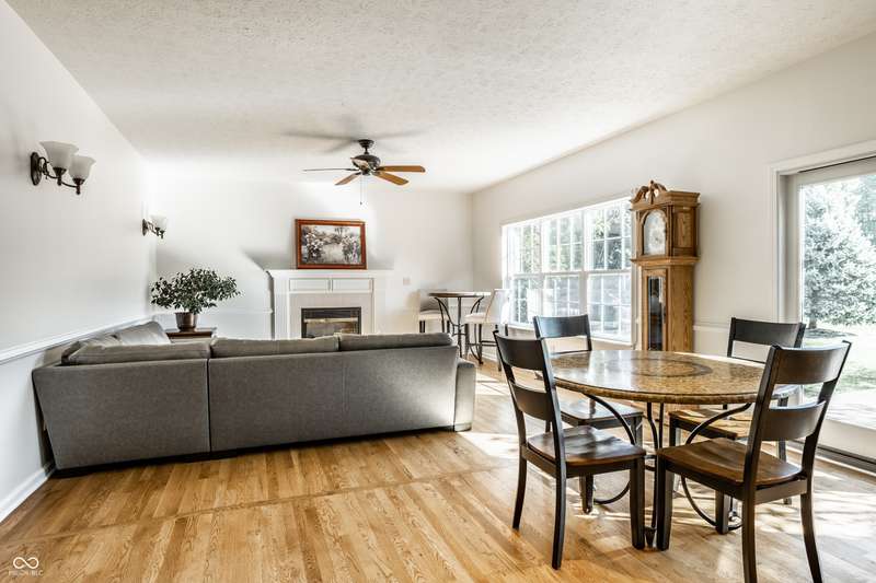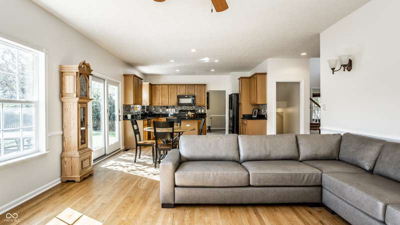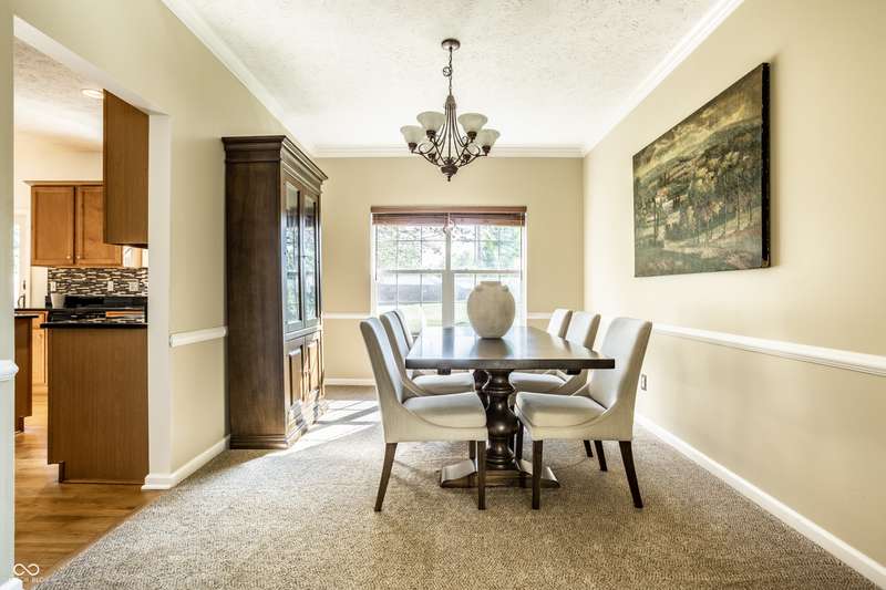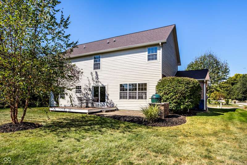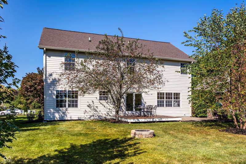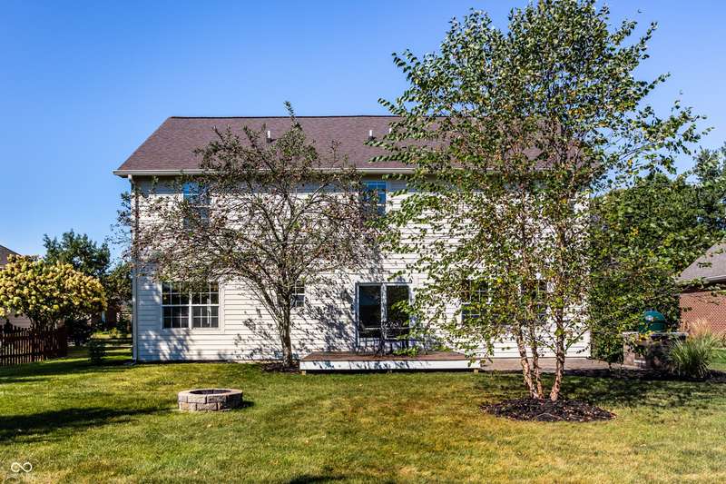 Welcome to this beautifully updated brick home that blends comfort, style, and updates! A 2 story entry, opening to freshly painted light-neutral interior and hardwood floors! The main level offers a formal dining room that connects to a bright living room with bay window! The eat-in kitchen is a chef's delight with a center island, maple cabinets, granite countertops, tile backsplash, and recessed lighting, opening seamlessly to the spacious family room with a cozy gas fireplace! The master suite is a true retreat with a vaulted ceiling, spa-like bath featuring a garden tub, new designer tile rain fall shower and a large walk-in closet! All bedrooms feature attractive hardwood laminate flooring, and the updated full baths adds modern style! The finished basement includes recessed lighting, daylight windows, and is plumbed for a full bath! Spacious 3 car garage with extra storage! Enjoy your private backyard oasis with mature trees, deck, and firepit! Community amenities include pool, clubhouse, and basketball court! Just a short walk away, Potter's Bridge Park offers walking paths, canoe launch, fishing, picnic areas, playground, and Hamilton County's only remaining covered bridge-connecting you to the White River Greenway Trail System! Convenient to shopping, dining, easy interstate access and award winning Noblesville Schools! This is the one you have been waiting for! Don't miss the opportunity to make this exceptional home yours!