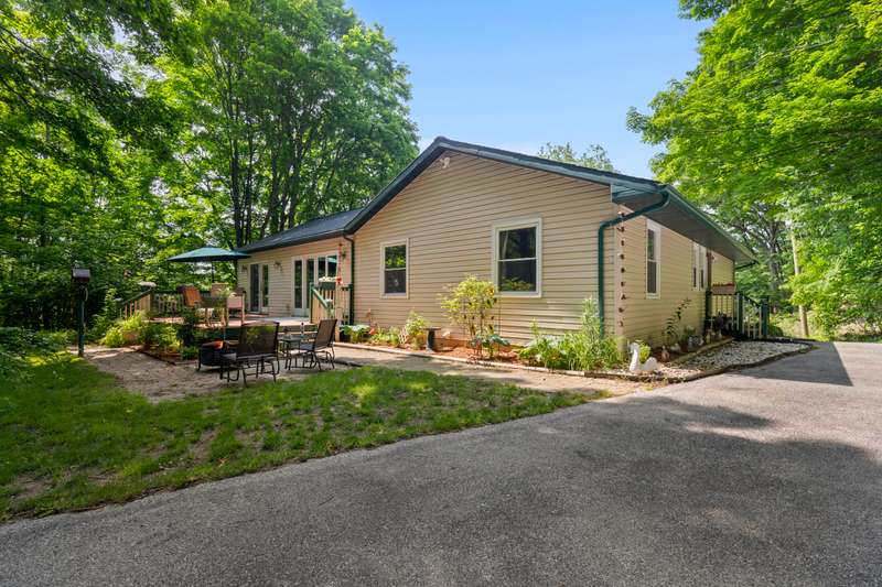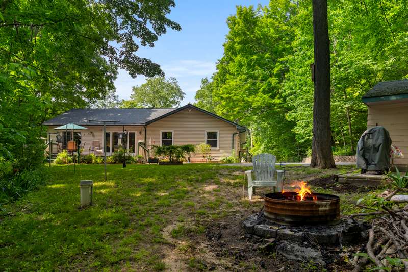 Tucked into the rolling hills just outside the charming coastal town of Frankfort, this four-bedroom, two-bath hillside retreat offers the ideal mix of privacy, space, and accessibility. Perfectly located along scenic M-115 between Beulah and Frankfort, the property spans over 10 acres and puts you minutes from Crystal Lake, Lake Michigan, the Betsie Valley Trail, Crystal Mountain, and Sleeping Bear Dunes National Lakeshore. Hop on your bike and in just 1.5 miles, you'll be at the iconic Betsie Valley Trail--perfect for walking, riding, or cross-country skiing year-round. Inside, over 2,200 square feet of living space includes a bright living room that opens to a spacious deck overlooking peaceful wooded views--an ideal place for morning coffee or evening stargazing. Outdoors, gather around the fire pit, explore wooded trails, and enjoy generous storage with both an attached one-car garage and a 12x20 outbuilding for all your up-north gear and toys. Whether you're dreaming of a quiet year-round residence or a four-season Northern Michigan basecamp, this property offers the best of both worlds natural beauty and everyday convenience just minutes from Frankfort's vibrant downtown, sandy beaches, and welcoming community.