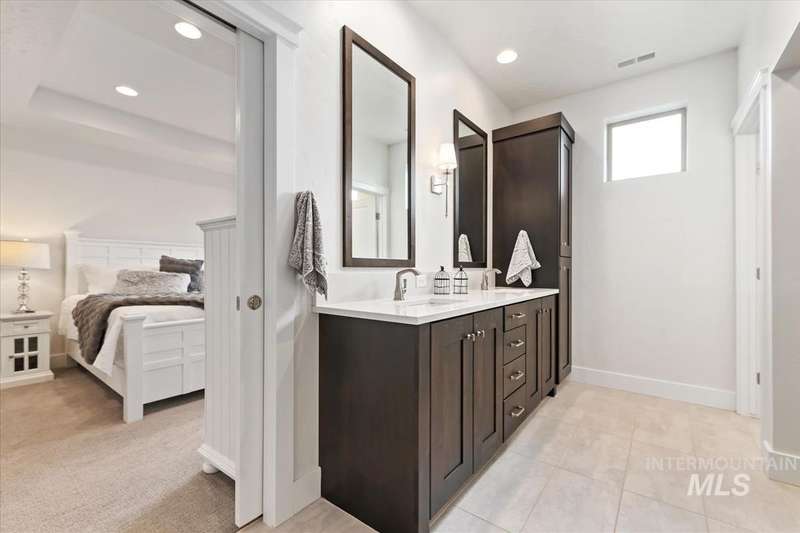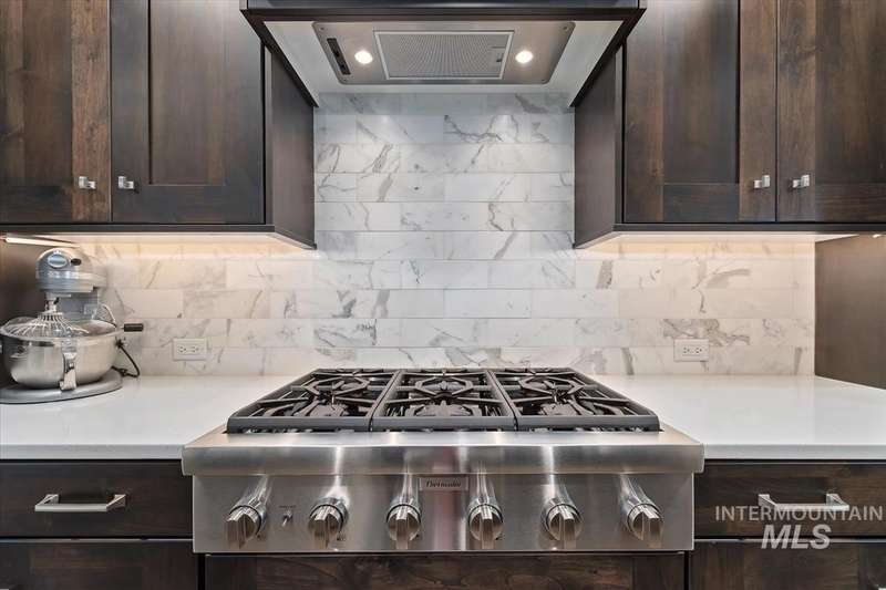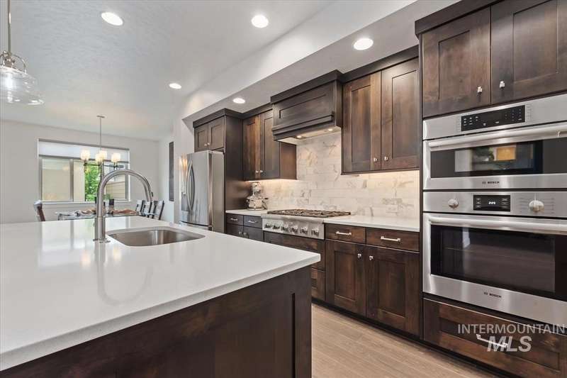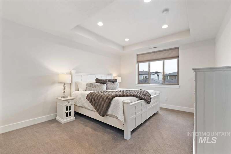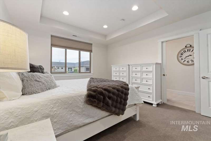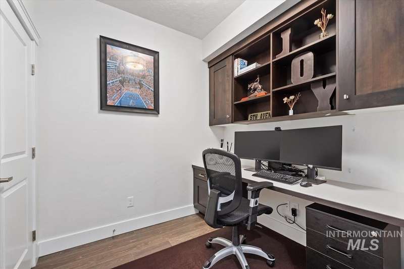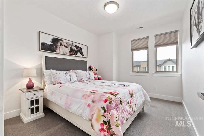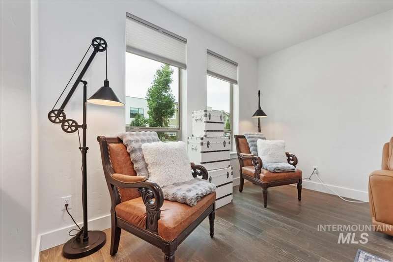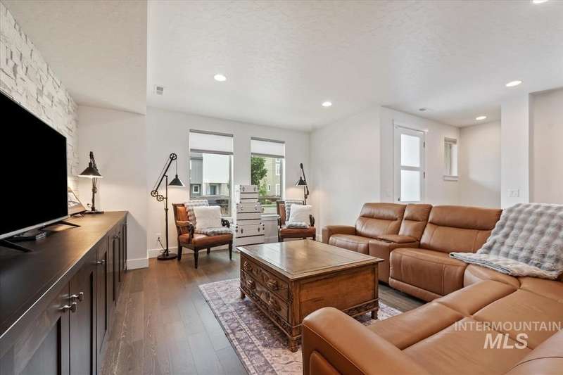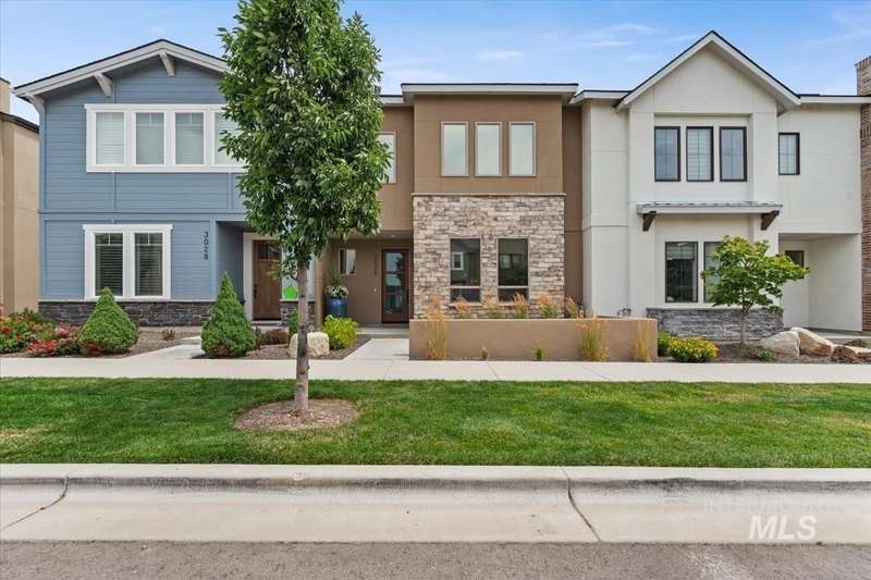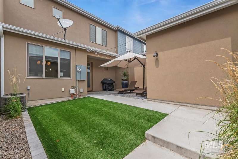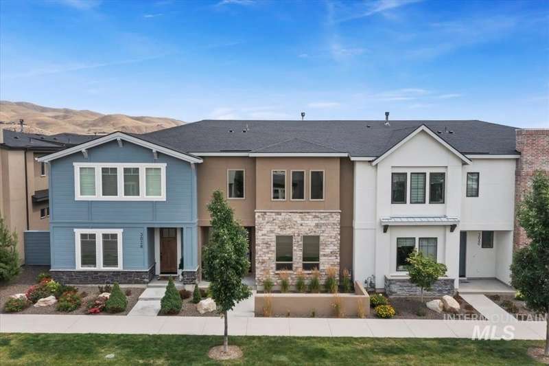 The BLVD at Harris Ranch—**WITH THE POTENTIAL TO BUY FULLY FURNISHED!** Urban townhome living without compromise. This turnkey home is thoughtfully upgraded with high-end finishes throughout, including quartz countertops, stainless Thermador range, Bosch dishwasher, sleek range hood, built-in entertainment bar, and a stunning stone accent wall with custom cabinetry. Light and bright interior showcases oversized picture windows that flood the space with natural light, complemented by a wall-to-wall built-in cabinet system and a stylish built-in tech center/office with a sliding barn door. Step outside to your private courtyard oasis complete with low-maintenance astroturf, or relax on your front patio. The finished garage has an additional 10x10 shop space that offers extra storage or workspace. HOA maintains yard (excluding private courtyard). Enjoy access to the community park and TWO community pools, making this low-maintenance lifestyle even more appealing.