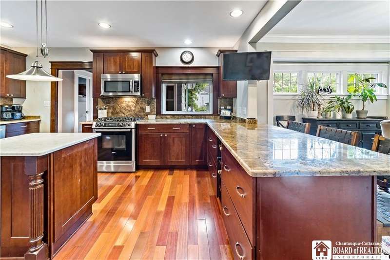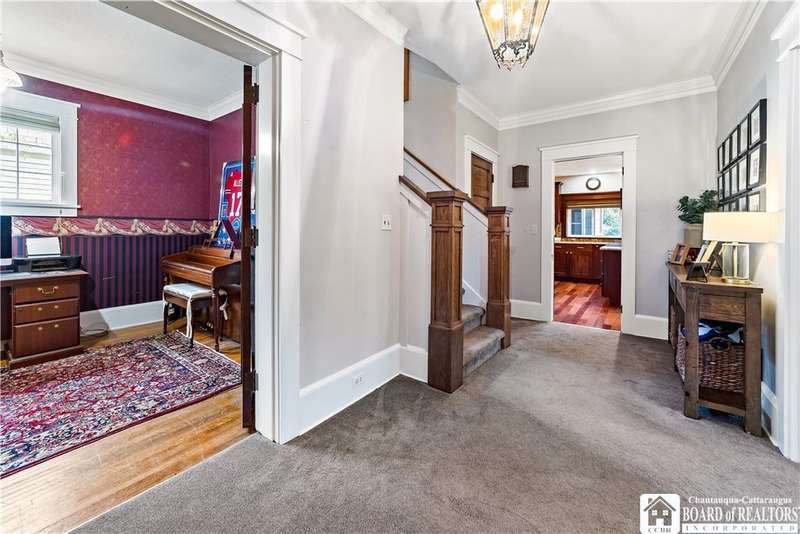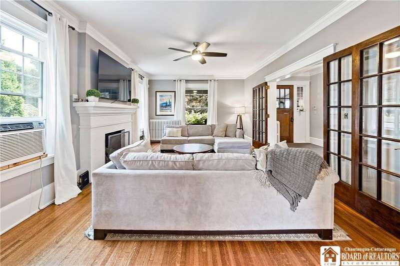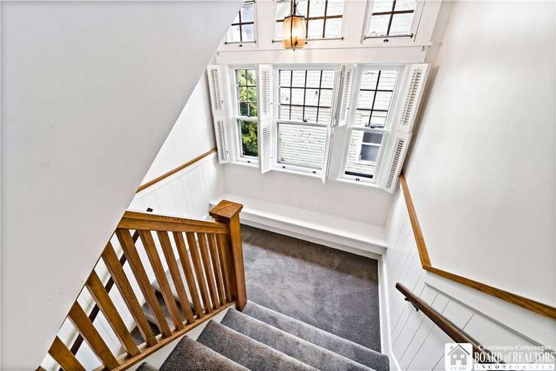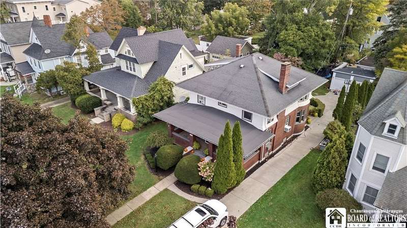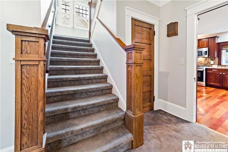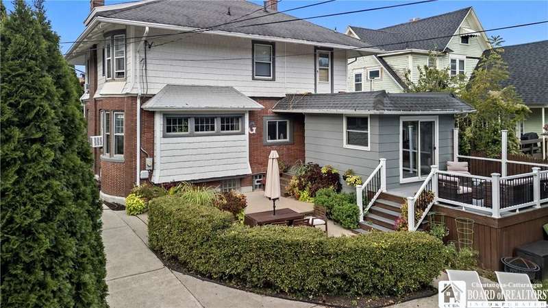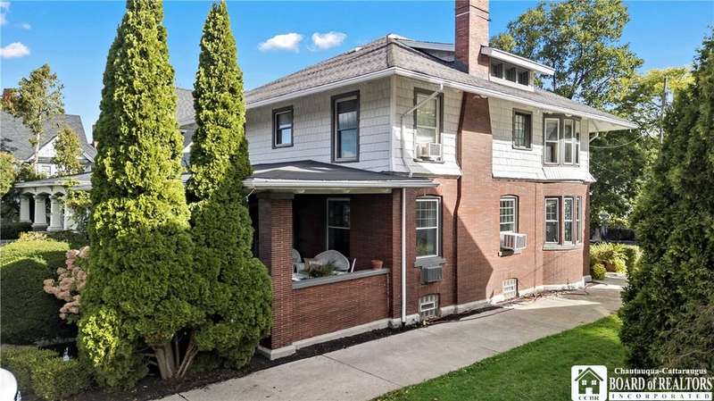 This iconic 1902 Craftsman has been lovingly maintained by the same family for generations, and now it's ready to welcome its next chapter. If you've been waiting for your chance to own a piece of local history on one of Dunkirk's most admired row of homes, this is it!Step inside and fall in love with the classic elegance paired perfectly with warm, inviting craftsmanship. With original woodwork and tall ceilings, this home is a rare find! The custom cherry wood and granite kitchen is complete with an island and open dining space that's ideal for hosting and entertaining. The spacious light-filled living room has original glass-paned French doors and a fireplace feature. The study off the foyer also features original glass-paned French doors. Upstairs, a spacious landing connects four sizable bedrooms?each with its own charm, including bay windows, a walk-in closet, and a lovely fireplace feature. The newly remodeled full bath offers a deep soaking alcove tub and timeless finishes.At the front of the house you'll find a large covered brick porch tucked behind lush landscaping that provides plenty of privacy from the main road. At the back of the house, you'll find a sunny bonus room with sliding doors that open to a multi-level outdoor living space: an elevated deck, a large patio, and a backyard that flows seamlessly into a wide driveway with tons of parking and room for outdoor activities.Need more space? The full basement offers loads of storage and a newly finished bonus room. The walk-up craftsman attic adds even more storage potential- or a creative project waiting to happen! All of this just five blocks from Lake Erie and the Dunkirk Marina & Pier. Come see what makes this historic gem truly special!