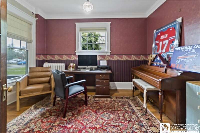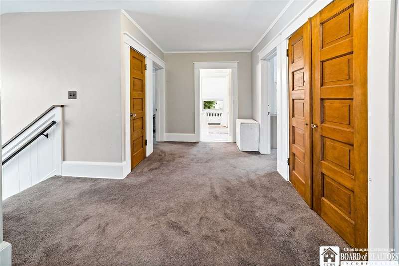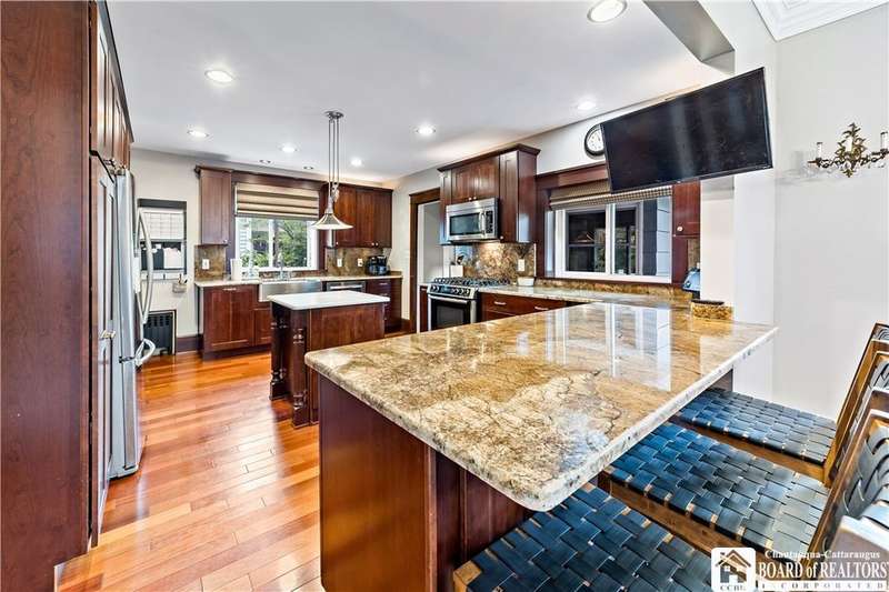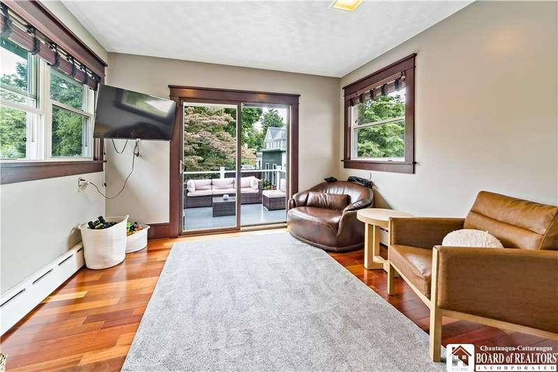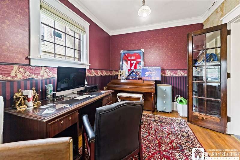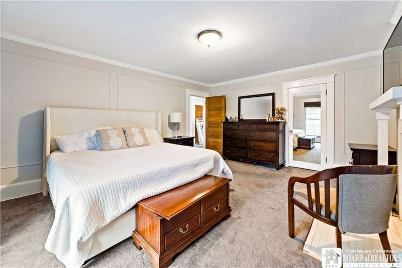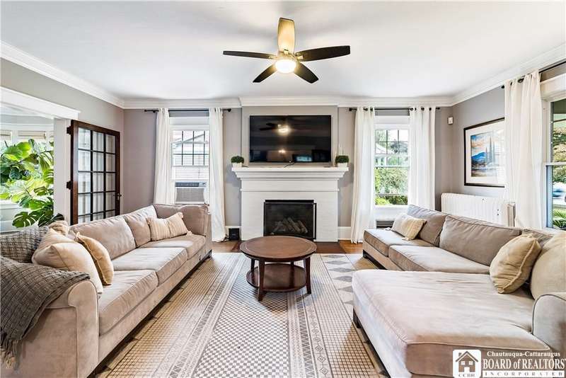 This iconic 1902 Craftsman has been lovingly maintained by the same family for generations, and now it's ready to welcome its next chapter. If you've been waiting for your chance to own a piece of local history on one of Dunkirk's most admired row of homes, this is it!Step inside and fall in love with the classic elegance paired perfectly with warm, inviting craftsmanship. With original woodwork and tall ceilings, this home is a rare find! The custom cherry wood and granite kitchen is complete with an island and open dining space that's ideal for hosting and entertaining. The spacious light-filled living room has original glass-paned French doors and a fireplace feature. The study off the foyer also features original glass-paned French doors. Upstairs, a spacious landing connects four sizable bedrooms?each with its own charm, including bay windows, a walk-in closet, and a lovely fireplace feature. The newly remodeled full bath offers a deep soaking alcove tub and timeless finishes.At the front of the house you'll find a large covered brick porch tucked behind lush landscaping that provides plenty of privacy from the main road. At the back of the house, you'll find a sunny bonus room with sliding doors that open to a multi-level outdoor living space: an elevated deck, a large patio, and a backyard that flows seamlessly into a wide driveway with tons of parking and room for outdoor activities.Need more space? The full basement offers loads of storage and a newly finished bonus room. The walk-up craftsman attic adds even more storage potential- or a creative project waiting to happen! All of this just five blocks from Lake Erie and the Dunkirk Marina & Pier. Come see what makes this historic gem truly special!