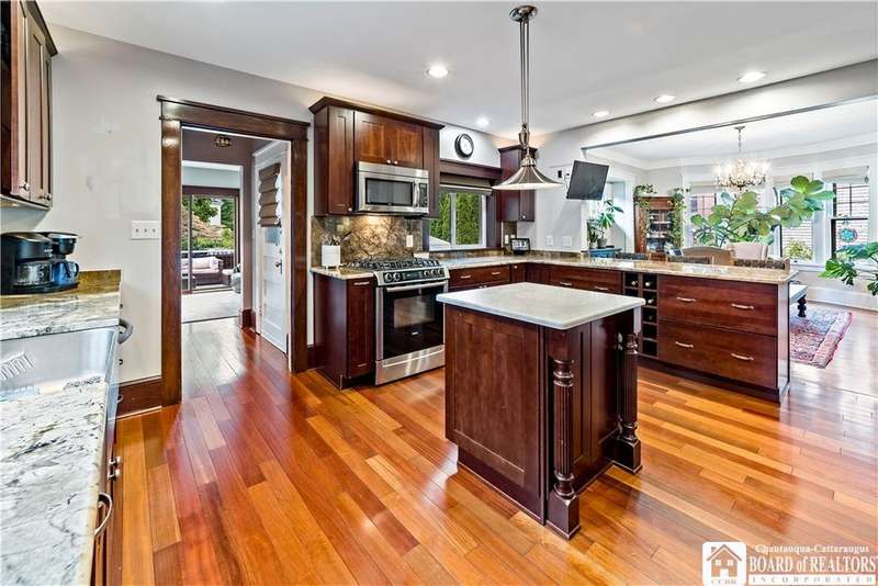 526 Central Ave ? where history, heart, and home come together! This iconic 1902 Craftsman has been lovingly maintained by the same family for generations, and now it's ready to welcome its next chapter. If you've been waiting for your chance to own a piece of local history on one of Dunkirk's most admired row of homes, this is it!Step inside and fall in love with the classic elegance paired perfectly with warm, inviting craftsmanship. With original woodwork and tall ceilings, this home is a rare find! The custom cherry wood and granite kitchen is complete with an island and open dining space that's ideal for hosting and entertaining. The spacious light-filled living room has original glass-paned French doors and a fireplace feature. The study off the foyer also features original glass-paned French doors. Upstairs, a spacious landing connects four sizable bedrooms?each with its own charm, including bay windows, a walk-in closet, and a lovely fireplace feature. The newly remodeled full bath offers a deep soaking alcove tub and timeless finishes.At the front of the house you'll find a large covered brick porch tucked behind lush landscaping that provides plenty of privacy from the main road. At the back of the house, you'll find a sunny bonus room with sliding doors that open to a multi-level outdoor living space: an elevated deck, a large patio, and a backyard that flows seamlessly into a wide driveway with tons of parking and room for outdoor activities.Need more space? The full basement offers loads of storage and a newly finished bonus room. The walk-up craftsman attic adds even more storage potential- or a creative project waiting to happen! All of this just five blocks from Lake Erie and the Dunkirk Marina & Pier. Come see what makes this historic gem truly special!