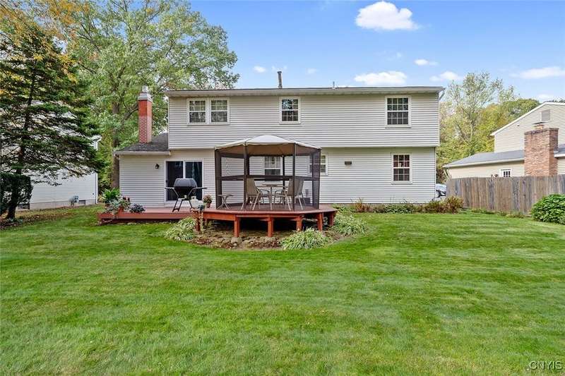 This well-maintained Colonial offers just under 2,000 square feet of well-designed living space with great bones and plenty of potential. The owners have taken great care and loved this home for 35 years and now it's time to pass the torch. Featuring 4 bedrooms and 2.5 baths, this home is ready for your personal touches to make it truly your own. The spacious great room includes a cozy gas insert fireplace flanked with built-in shelving. A sliding door opens to a deck and an octagonal screenhouse?perfect for relaxing or entertaining. A large eat-in kitchen provides ample space for everyday dining, while the formal dining room and living room offer additional options for gatherings and special occasions. Upstairs, there are four bedrooms including a generous primary suite with a walk-in closet and private en suite bathroom. A full, dry basement offers excellent storage or future expansion possibilities, and the attached 2-car garage adds everyday convenience. Updates include windows in 2018, gas insert fp in 2020 and front sidewalk pavers in 2021. In addition the Sellers are offering a 1 year home warranty for peace of mind for the new buyers. With solid construction, great flow, and classic Colonial charm, this home is a fantastic opportunity to add your style and updates over time. Delayed Negotiations until Sunday 9/28 at 5pm.