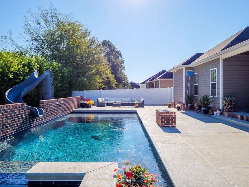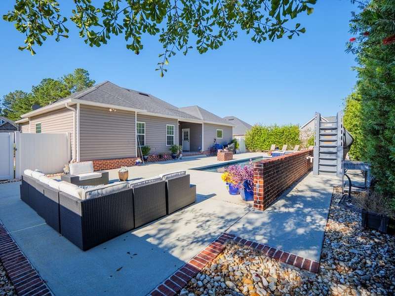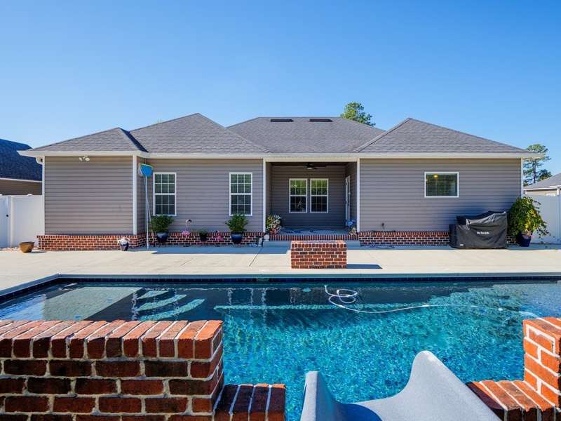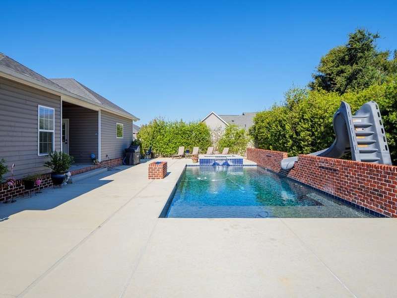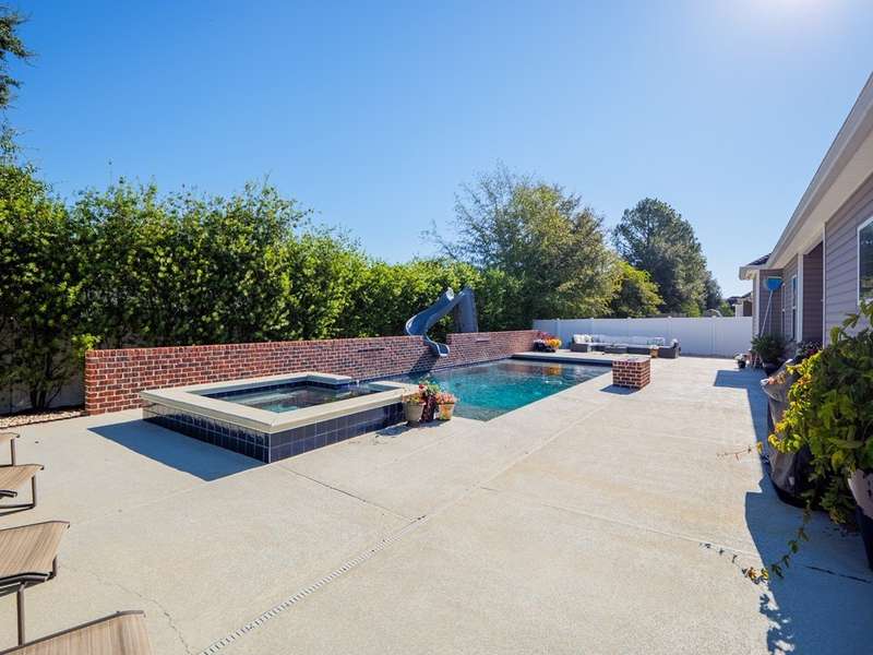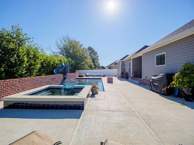 Welcome to this stunning 4-bedroom, 3-bath home with POOL! Perfectly located within 5 minutes of Moody Air Force Base and North Valdosta! This property offers the perfect blend of comfort, convenience, and outdoor living.Step inside to an open-concept floor plan with split bedrooms for added privacy. The kitchen features granite countertops, ample cabinet space, and a spacious layout that flows seamlessly into the dining and living areas—ideal for entertaining or everyday life. The primary suite is a retreat of its own, boasting a large walk-in closet, dual vanity, and a luxurious walk-in shower. Each additional bedroom is generously sized with beautiful finishes throughout the home. Step outside to your private backyard oasis! Enjoy the saltwater pool complete with hot tub, tanning ledge, water features, and a slide—perfect for fun and relaxation. Gather with friends around the fire pit and unwind under the stars. This home is well-maintained, move-in ready, and showcases tasteful colors throughout. Conveniently located close to shopping, dining, and schools! This home truly checks all of your boxes!