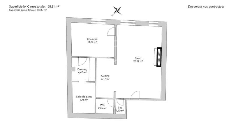 In a highly sought-after neighborhood, on the second floor of an 18th-century building, charming 58.68sqm (Carrez law) southeast-facing apartment. The perfect layout includes a living room with open-plan fitted kitchen, bedroom, bathroom, large dressing room and separate toilet. In the heart of the Monnaie district, in absolute calm, this property is in very good condition.