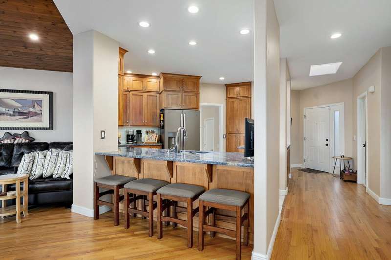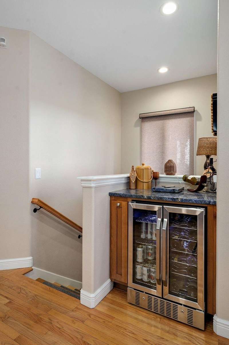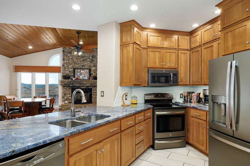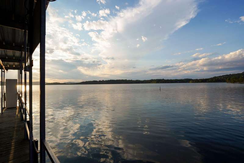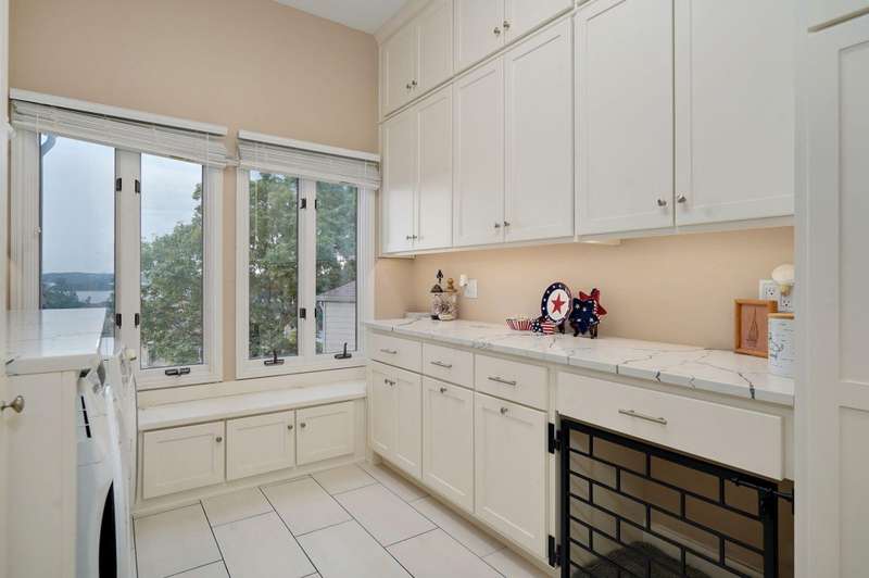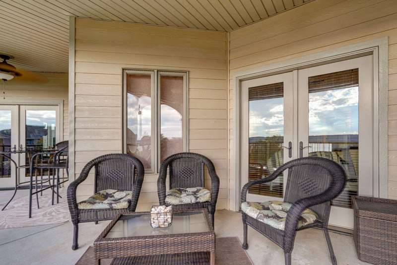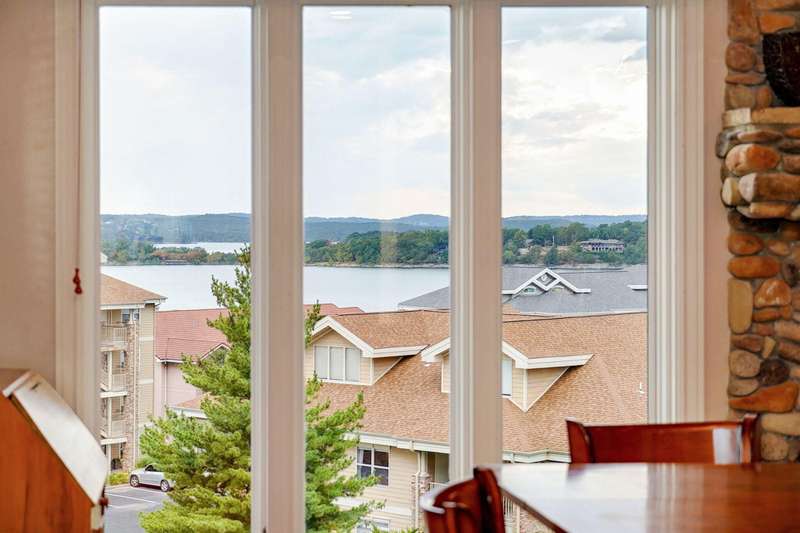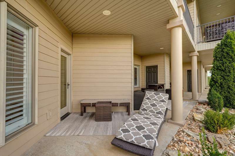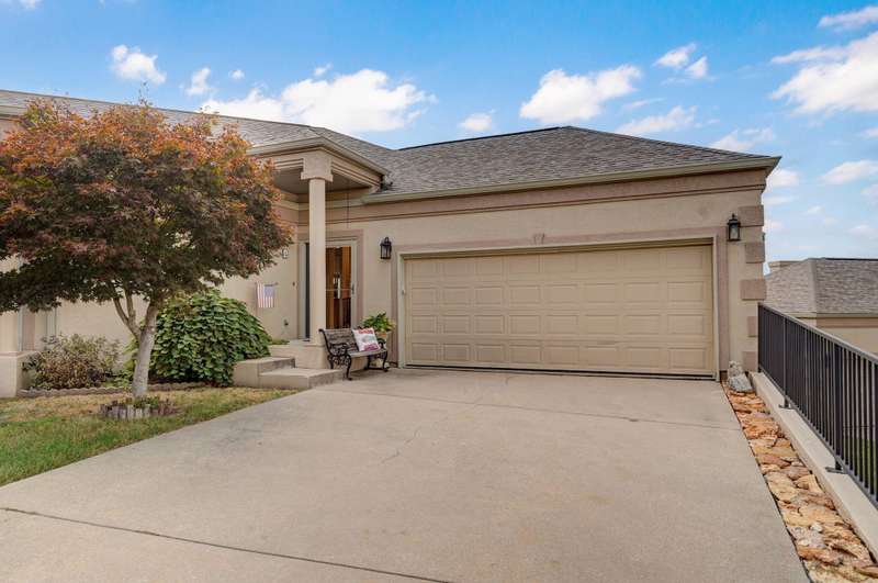 Highly sought-after end-unit in Emerald Pointe Villas with fabulous views of Table Rock Lake! This beautifully remodeled 3-bedroom, 2.5-bath villa is a one of a kind unit with two fireplaces and a custom laundry room. Villa comes with a Yamaha electric golf cart, all appliances including washer and dryer, refrigerator, and beverage fridge, as well as a sleeper sofa, dining table/chairs and kitchen barstools. For an additional price, there is a 10 x 28 boat slip and a 35 x14 garage storage unit available.The main-level features an open living concept with tall ceilings and natural light throughout. The living room features a floor to ceiling rock fireplace with an exit to the top covered deck. The kitchen boasts custom cabinetry with pull outs, stainless steel appliances with Blue Bahia Granite countertops. The laundry room is a one of a kind feature within this Villas with custom cabinets, quartz countertops, with additional storage and pantry space. The primary suite features a reconfigured bathroom with soaking tub, walk-in shower, and walk-in closet and a private door onto the deck to enjoy those morning views.The lower level offers a covered patio, two additional bedrooms, one of which is currently being used as a den with a custom built fireplace. The remodeled bathroom has granite countertops and a walk in shower. The attached garage features a newer garage door opener and tracks, a utility sink with custom shelving and lighting. Other features include ceramic tile flooring in kitchen, baths, laundry, and ash wood in the basement. New lighting, plumbing, new HVAC, water heater and water softener, new interior and exterior doors, high-end custom window coverings and balcony sun shades on rollers. Amenities include Clubhouse, tennis/pickleball/basketball court, fitness center, pool and a marina offering a dry storage facility, a courtesy dock with access to Table Rock and all exterior maintenance is done for you!