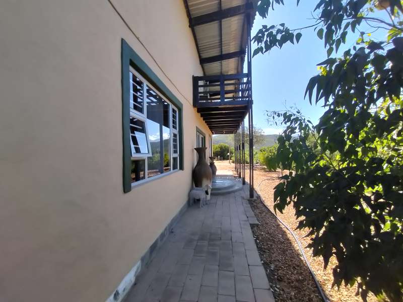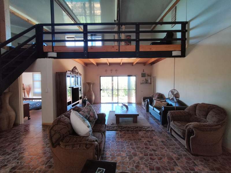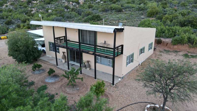Escape to the serene beauty of the Klein Karoo with this exceptional 51-hectare lifestyle farm, located just outside the charming town of Calitzdorp. Surrounded by vast natural landscape teeming with indigenous succulent plants, this off-grid haven offers the perfect blend of sustainability, comfort, and breathtaking natural beauty. The main residence is thoughtfully powered by a robust solar system—12 panels feeding a 7kW inverter to power the home, and an additional 4 panels with a separate 5kW inverter dedicated to water pumps. Of the three boreholes on the property, one provides fresh water directly to the house, while the other two serve as additional water sources. Step inside to discover a warm and spacious home featuring 3 bedrooms, including a main en-suite. The open plan living, dining, and kitchen area is designed for both relaxation and entertaining, with abundant natural light. A cozy braai/entertainment room adds a true Karoo touch—perfect for hosting friends and family. Upstairs, a versatile loft and open study area lead out to a balcony with sweeping views of the surrounding landscape—ideal for sunrise mornings or quiet evenings. Additional features include: • Double garage/workshop with ample space for projects or storage • Single carport in front, plus a double carport at the back (fits up to 4 vehicles) • Fully sustainable water system • Remote tranquillity just minutes from town Whether you’re seeking a peaceful retreat, a self-sufficient lifestyle, or a unique space to call home, this Klein Karoo gem offers it all.