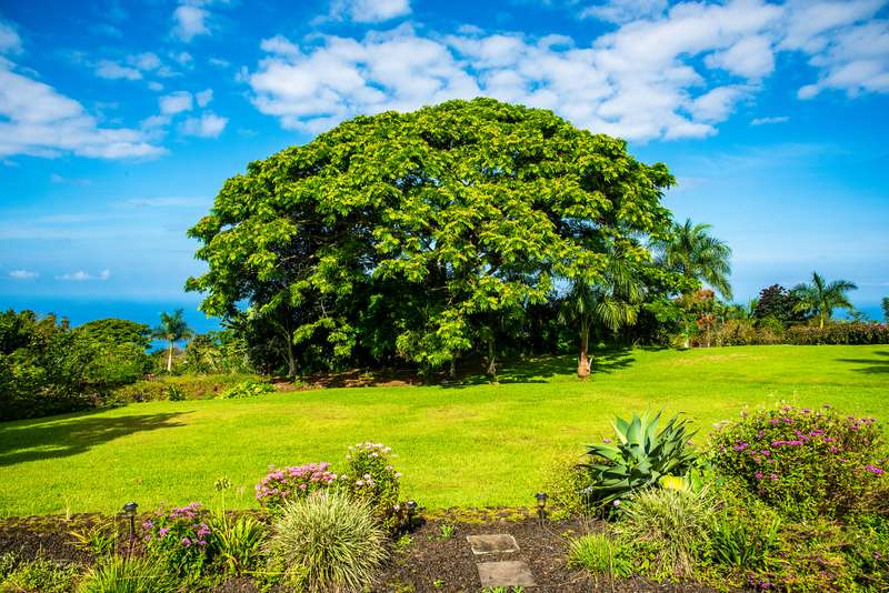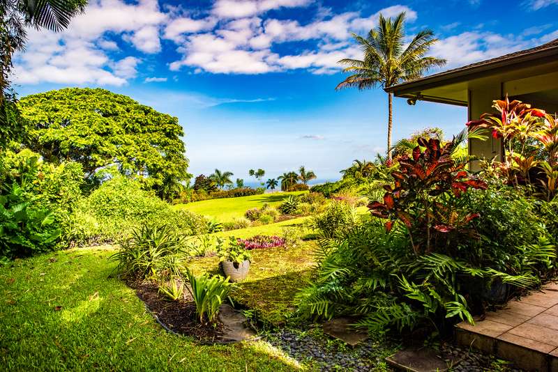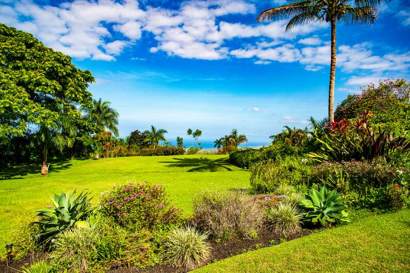 Serene Custom home on acreage with ocean views, parklike grounds, just 1 mile to Holualoa Village!