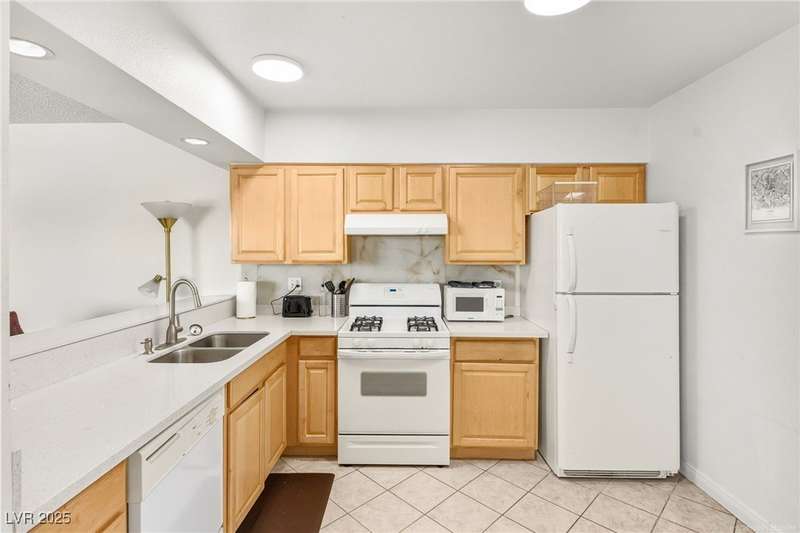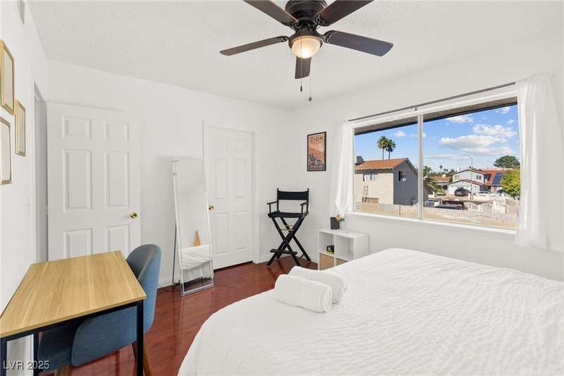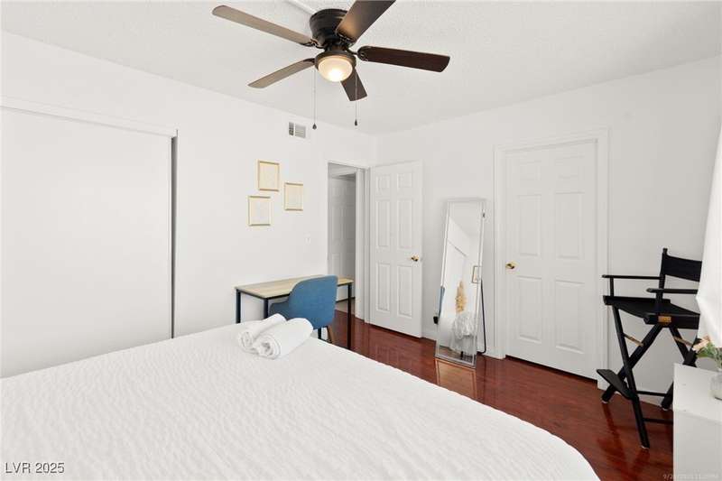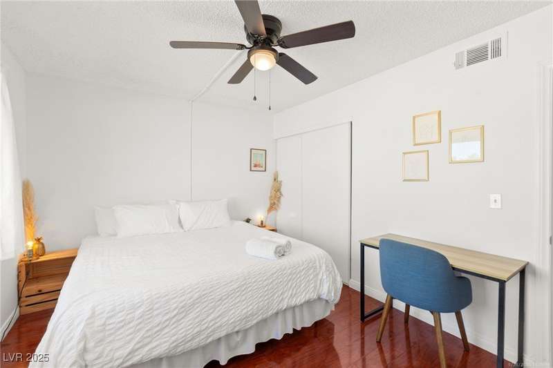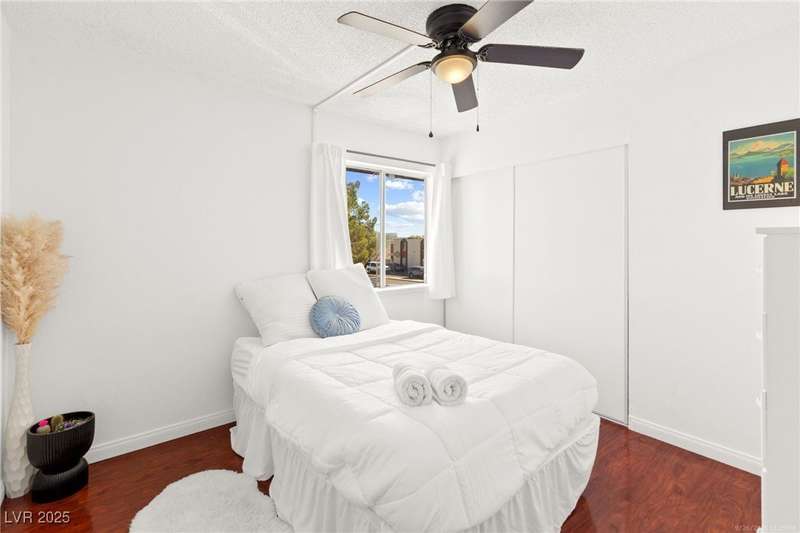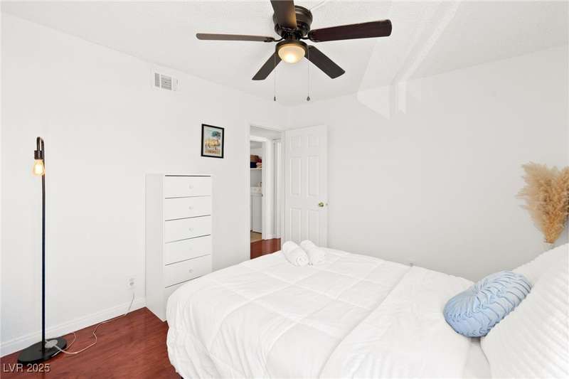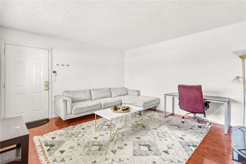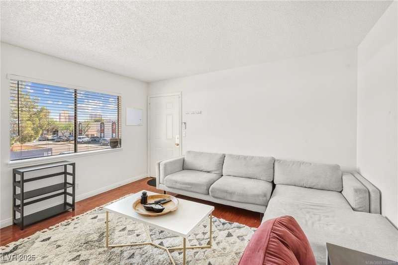 Prime Investment Opportunity! This condo is currently operating as a highly successful mid-term rental, consistently generating approximately $1,800–$2,200 per month. A fantastic income-producing property in a desirable location. This charming 2-bedroom, 1-bathroom condo offers a smart and functional layout with living and dining areas conveniently adjacent to the kitchen. The kitchen features a breakfast bar, quartz countertops, and tile flooring, while stylish plank flooring flows throughout the other living spaces. Ceiling fans add extra comfort year-round. Situated just minutes from the Las Vegas Strip, I-15, major shopping, dining, and entertainment, this condo places you right in the heart of convenience. Whether you're an investor seeking strong returns or a buyer looking for a perfectly located home, this property checks all the boxes.