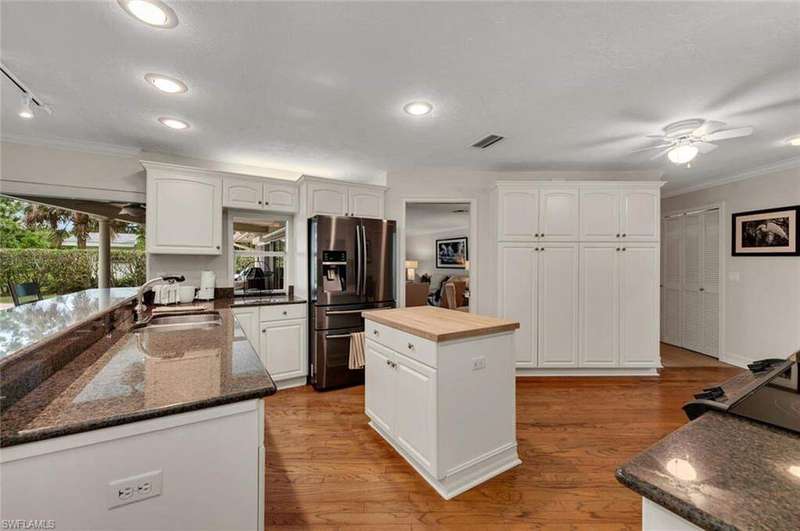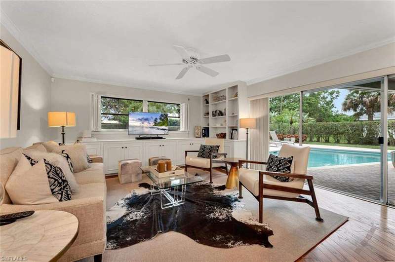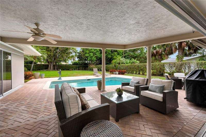 Spectacular find! Beautifully updated & meticulously maintained 4-bedroom 3-bath one level home. Located in the SAFE FEMA "X" zone. Very Large .42 Acre lot on Crayton Road. Just south of Mooringline Dr. Old growth trees and native plants encompass your private retreat. Hidden private respite in the heart of Naples. Over 2400 sq ft of light & bright, comfortable, quiet, living. Updated kitchen, spacious living room, family room, den, 3 guest bedrooms, 3 full baths, with spacious master suite. Tranquil covered outdoor pool, deck, and entertainment area with stunning park-like yard. Refresh in nature's beauty. Plenty of room for your pets to roam. Harvest your mature Mango & Lemon trees. One of the few properties in The Moorings with no overhead power lines. Centrally located with short stroll to Moorings Beach Park for stunning sunsets, a dip in the Gulf, or picnic lunch. Minutes from Old Naples, Venetian Village, Waterside shops, Mercato or Artis-Naples. Dreams do come true - Bring your best offer!