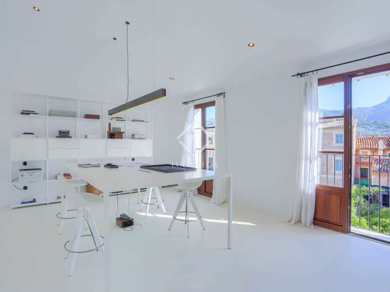 In the heart of Sóller in the most beautiful street, surrounded by the dramatic Tramuntana mountains and bathed in Mediterranean light, a townhouse has emerged that tells a new story of Mallorcan living. Completed in 2023, this residence does not imitate the past — it reinterprets it. Here, tradition and modernity coexist in perfect harmony, creating a home that feels timeless yet unmistakably contemporary. Cross the entrance and a sense of calm immediately takes over. White walls, polished microcement floors, and sculptural staircases create a sanctuary where light flows unbroken from room to room. Every surface reflects a philosophy of minimalism with soul — refined, functional, and quietly elegant. The architecture invites you to slow down, to notice the way the evening sun plays with the reflection, or how the handcrafted iron doors cast shadows that change with the day. This is not just a house — it is an experience of design and atmosphere. At its center lies the Espacio Cocinart kitchen, bold in contrast with its black ceramic worktops and state-of-the-art SMEG appliances. It is a space conceived not only for cooking, but for gathering — a backdrop for conversation, laughter, and shared meals. The dining table, crafted by Riva1920, becomes the stage for long summer evenings with friends. In the living area, a Blasco sofa and Divani table create a perfect corner for reflection with a wooden fireplace. Lighting by Contain Studio softly defines each space, while the tactile warmth of Palmer carpentry and Vallone bathrooms elevate daily routines into rituals. Every element has been chosen with intention — Gervasoni beds for restful nights, Nordlux fixtures for ambient comfort. This home is curated, not decorated. Step outside and the story continues. Here, beneath orange, lemon, and avocado trees, the pace of life slows to the rhythm of nature. A turquoise-green pool glimmers in the sun, inviting morning swims or late-afternoon dips. As the day ends, the mountains catch the last golden light, reflecting it across the water and back into the house — a daily theatre of color and stillness. While every detail feels complete, the design looks forward. The top floor has been thoughtfully prepared for an additional kitchen and bathroom, offering the flexibility to create an independent guest apartment or studio. This adaptability ensures the home grows with your needs, whether as a family retreat, a seasonal escape, or a lifestyle investment. The house benefits from Daikin aerotermia system for energy-efficient and sustainable climate control through your mobile phone. This townhouse is more than walls and finishes — It captures Sóller’s essence: a town where history breathes through cobbled streets, yet innovation finds its voice in contemporary architecture. It is for those who value serenity without isolation, design without compromise, and nature without leaving the comforts of home. A rare opportunity in Sóller’s property market. Schedule your private viewing today and begin your own chapter in this story of Mediterranean living.