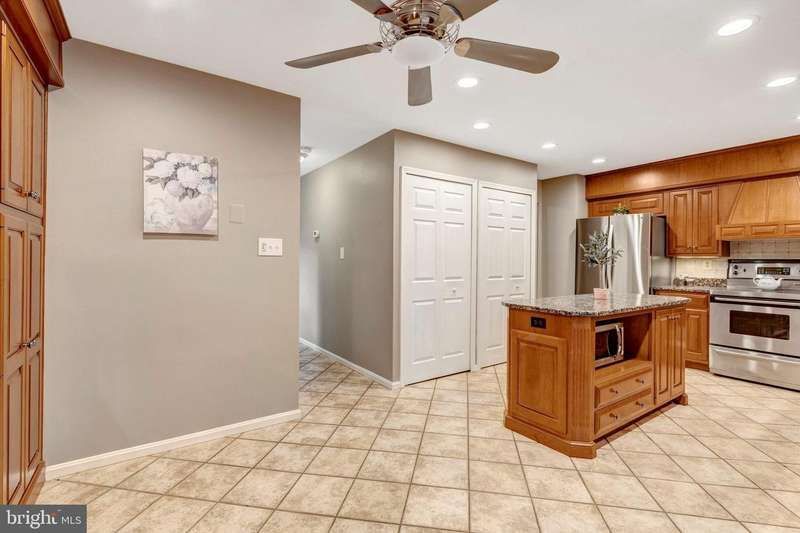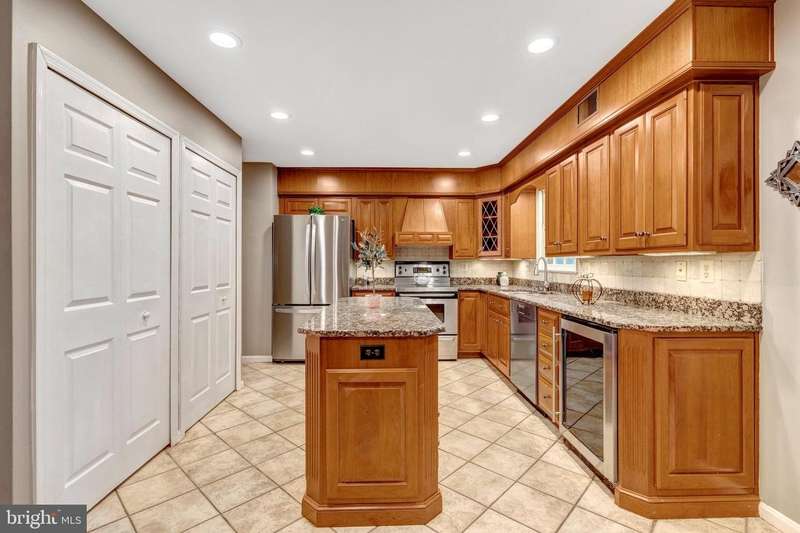 Fantastic location! End-unit townhome with over 2,200 sq ft of finished space. The fenced rear yard features a custom-designed paver patio with a serene setting backing to trees. Inside, you'll find high-quality upgrades like hardwood flooring on the main and upper levels, a kitchen with a spacious island, granite countertops, stainless steel appliances, a wine cooler, built-in cabinets in the dining area, a large pantry, under-cabinet lighting, and more. The upper level includes a primary bedroom with a dressing area and a spacious upgraded bath with a walk-in shower and double showerheads, along with two additional bedrooms and a hall bath. The lower level offers a large family room with a wood-burning fireplace, a bonus room, a full bath, and a generous storage/laundry/utility room with built-in cabinets and a granite countertop. Freshly painted and move-in ready, this home is conveniently located near Burke Station VRE, shopping, and dining.