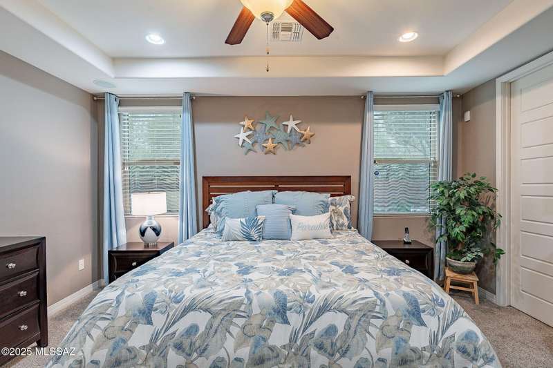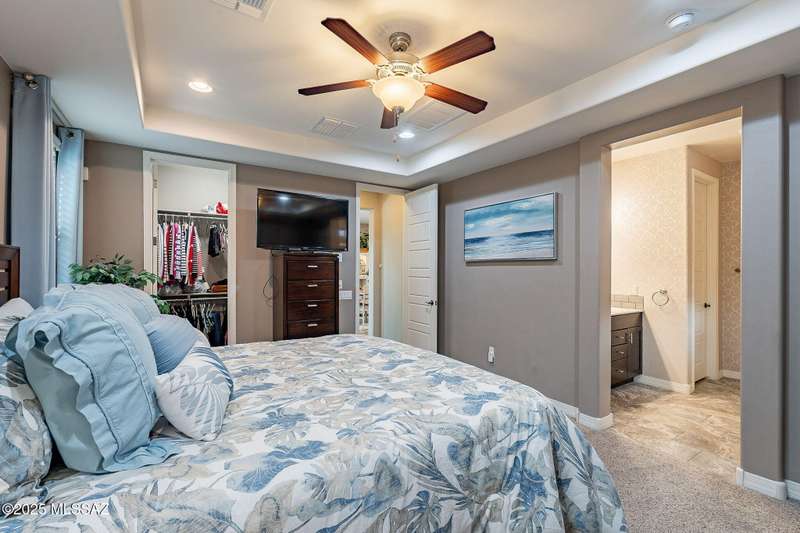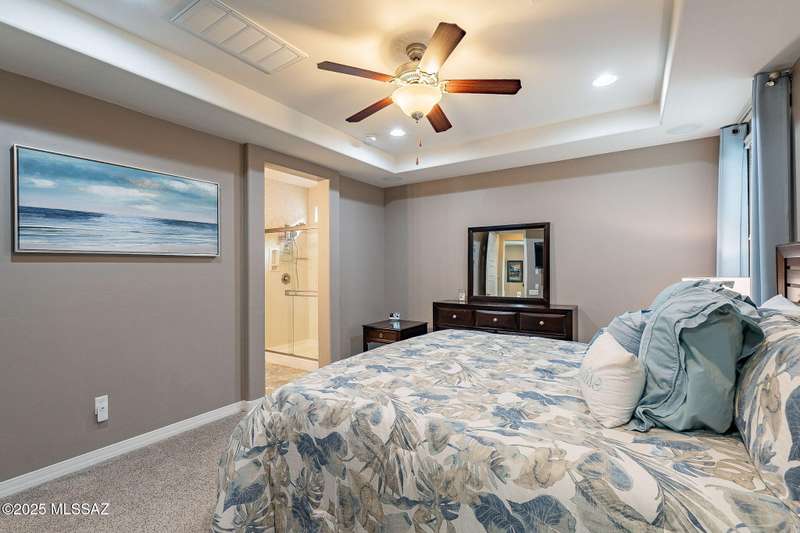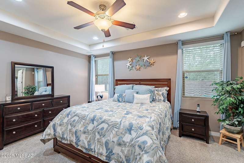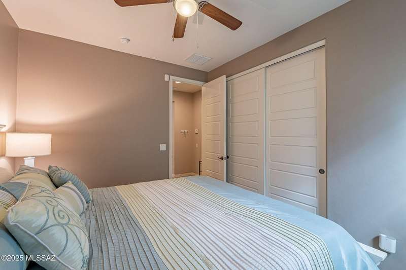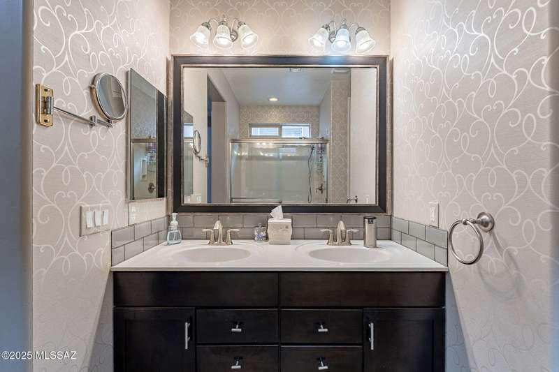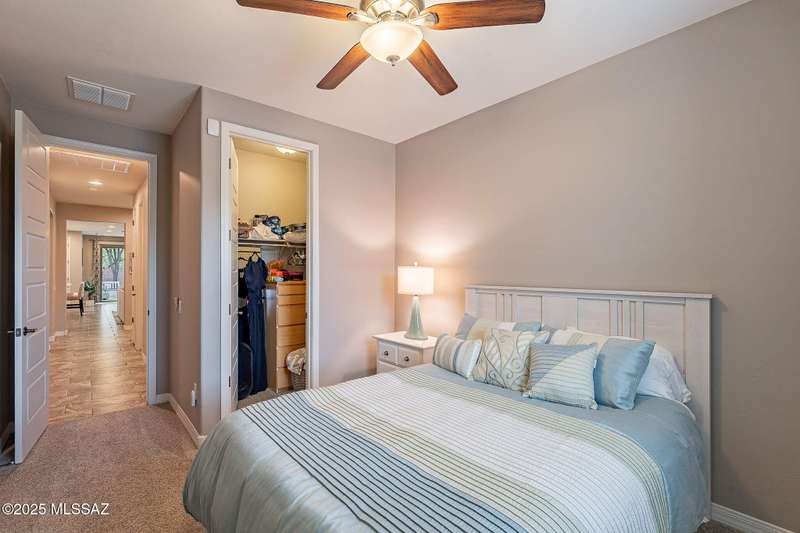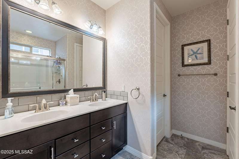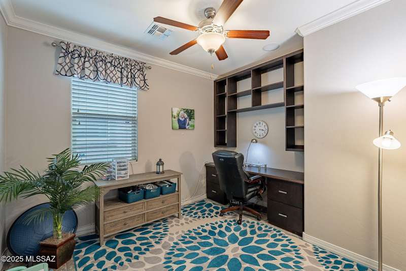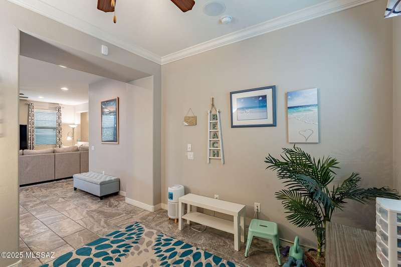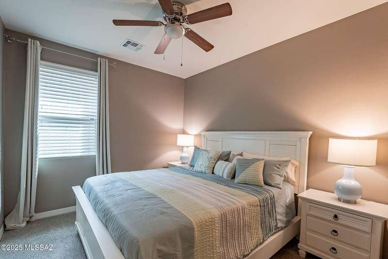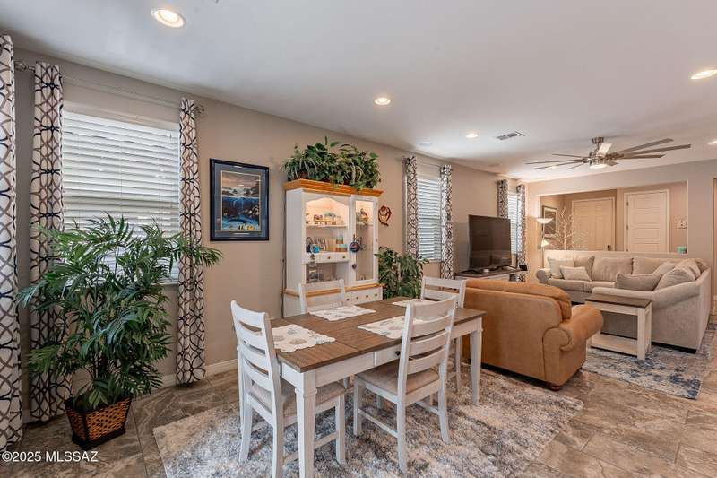 Highly upgraded property that looks like a model home in the fabulous master planned community of Rancho Sahuarita. The thoughtfully designed floorplan feels larger than the square footage! Owned 4 kilowatt solar system gives the added benefit of lower electric bills. Split bedroom plan features 3 bedrooms plus a large open den; gourmet kitchen with stainless steel appliances, gas stove top, double ovens, custom backsplash, 42'' cabinets w/ soft close drawers & pull out shelves. Large kitchen island with seating. Surround sound with volume control wall switches inside and outside. Laundry room with cabinets and washer & dryer on pedestals. Water softener, under sink water filter, upgraded flooring, and ceiling fans. Security door, alarm system and ring doorbell give you peace of mind!